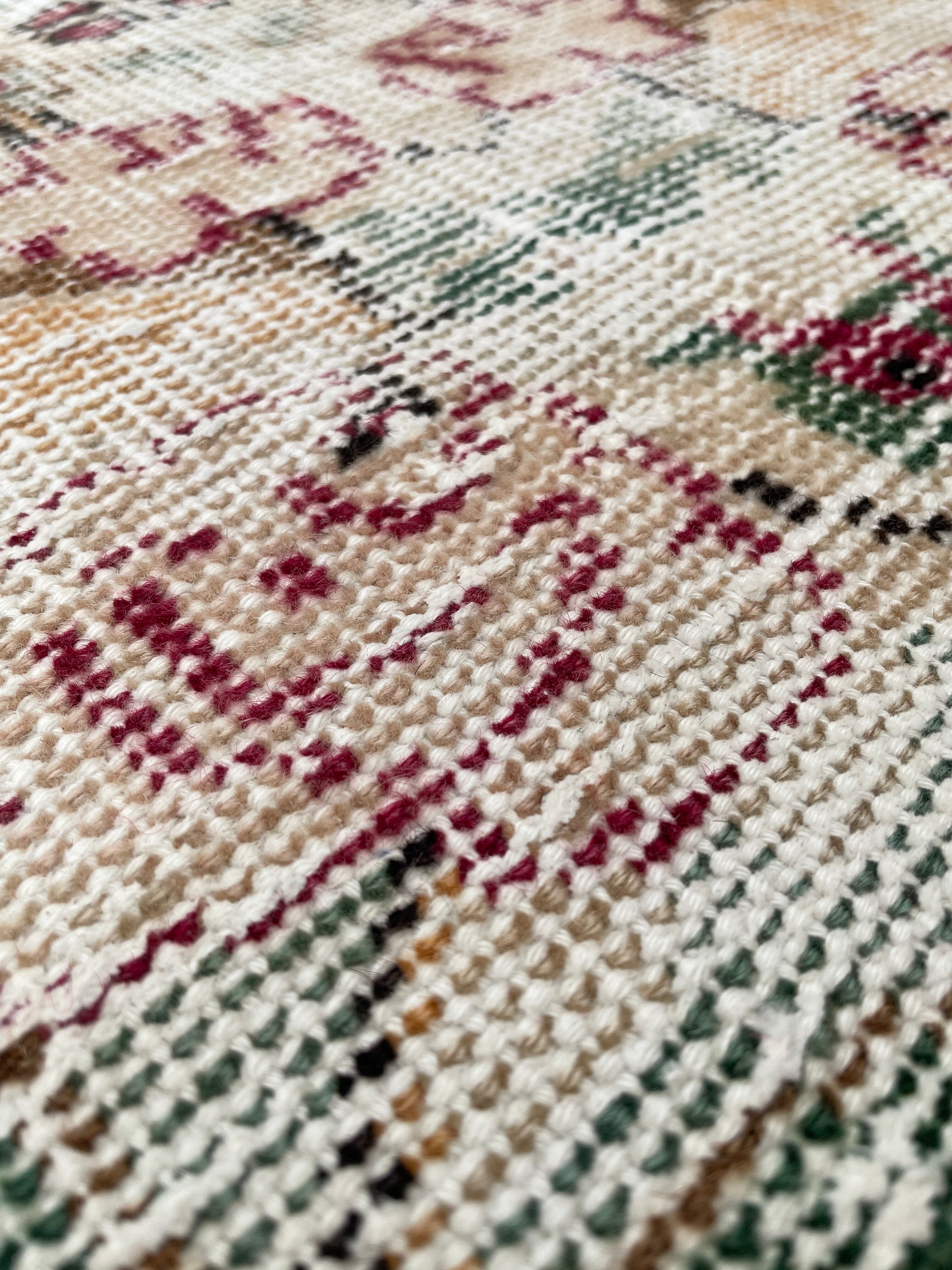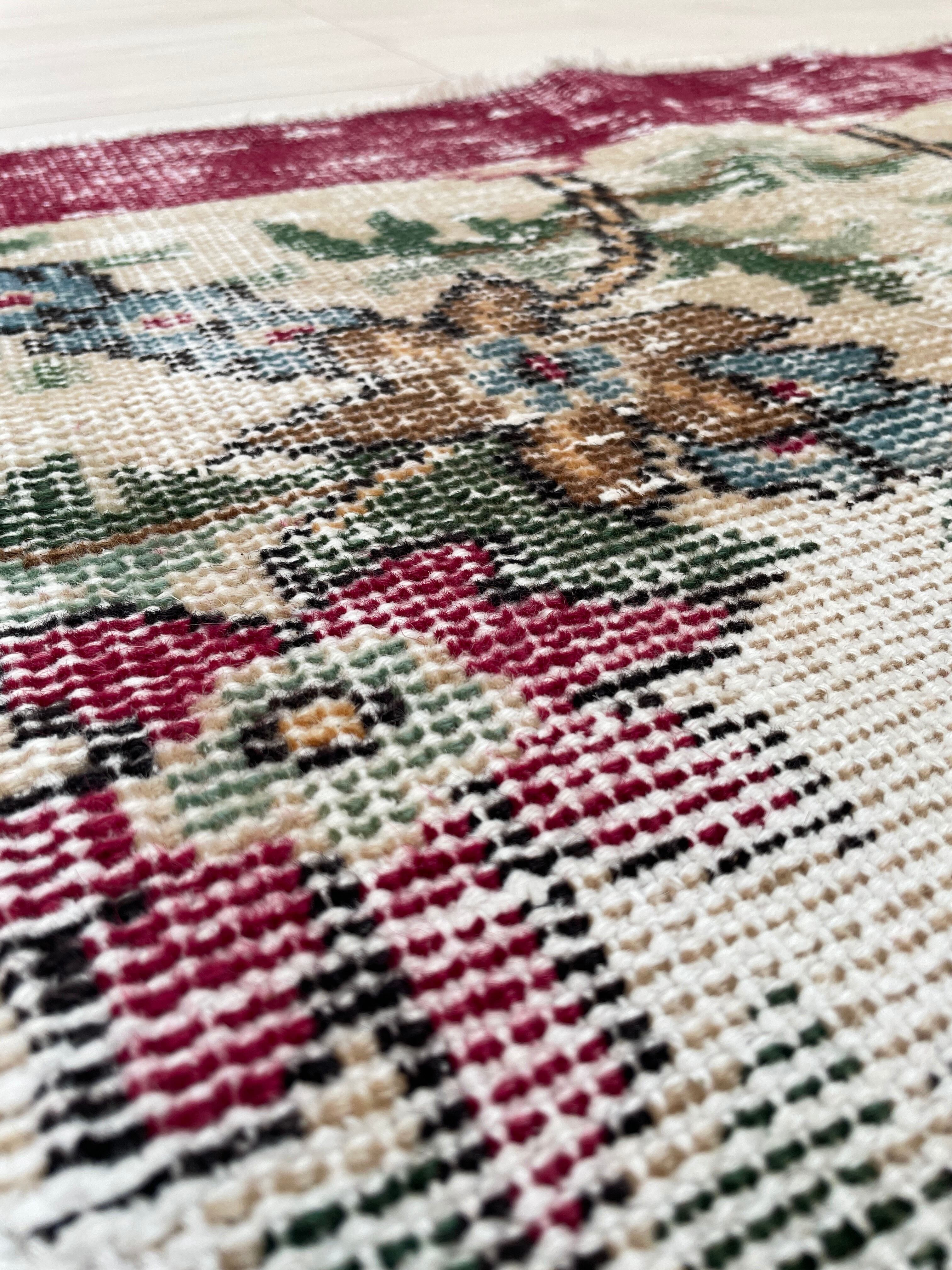 ヴィンテージラグは、糸のほつれ、抜け、毛羽立ち、シミなど見られる場合がございます。ヴィンテージ品ならではの雰囲気としてお楽しみいただけますと幸いです。