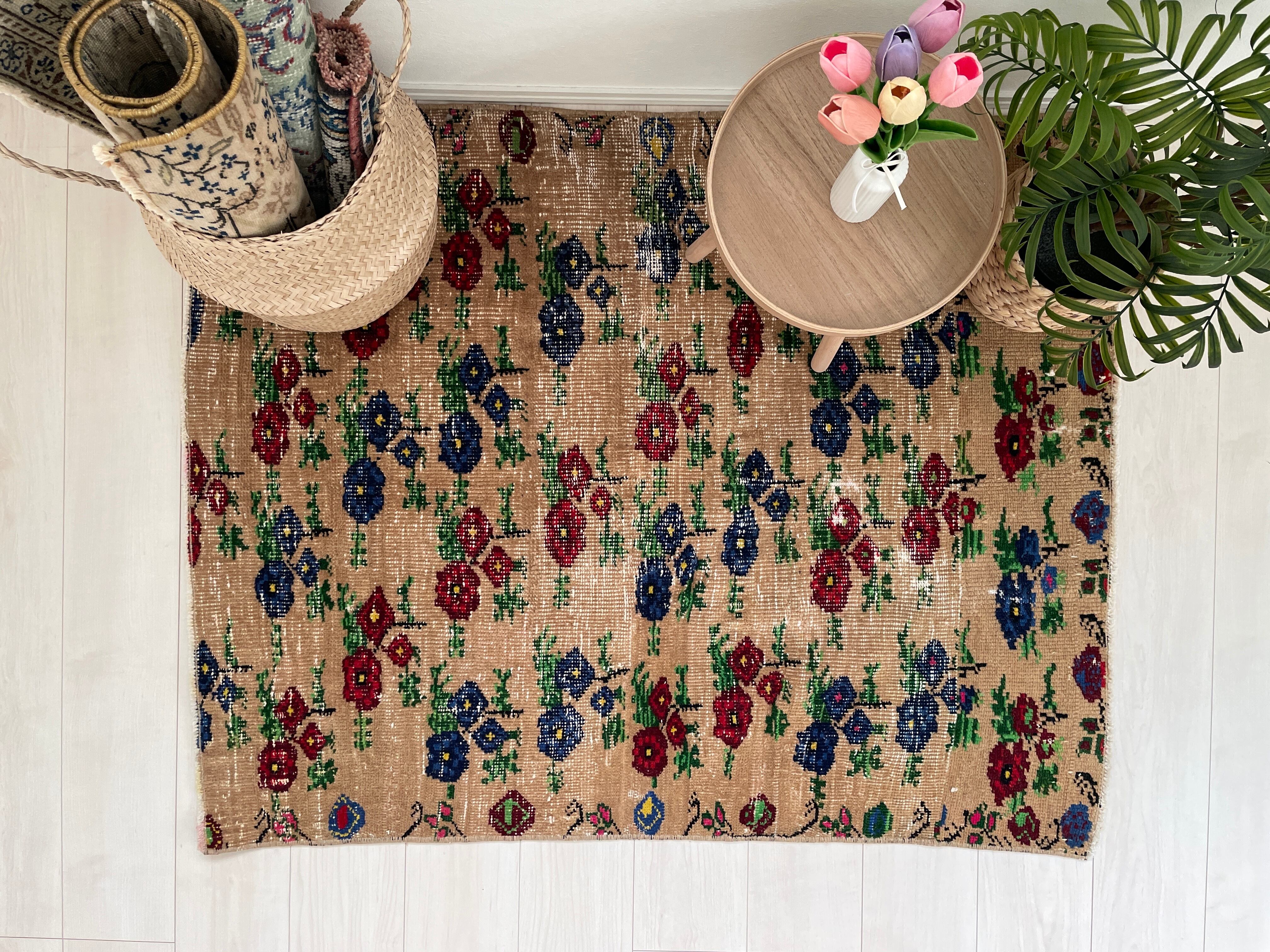 まるでお花畑のようなヴィンテージラグ。