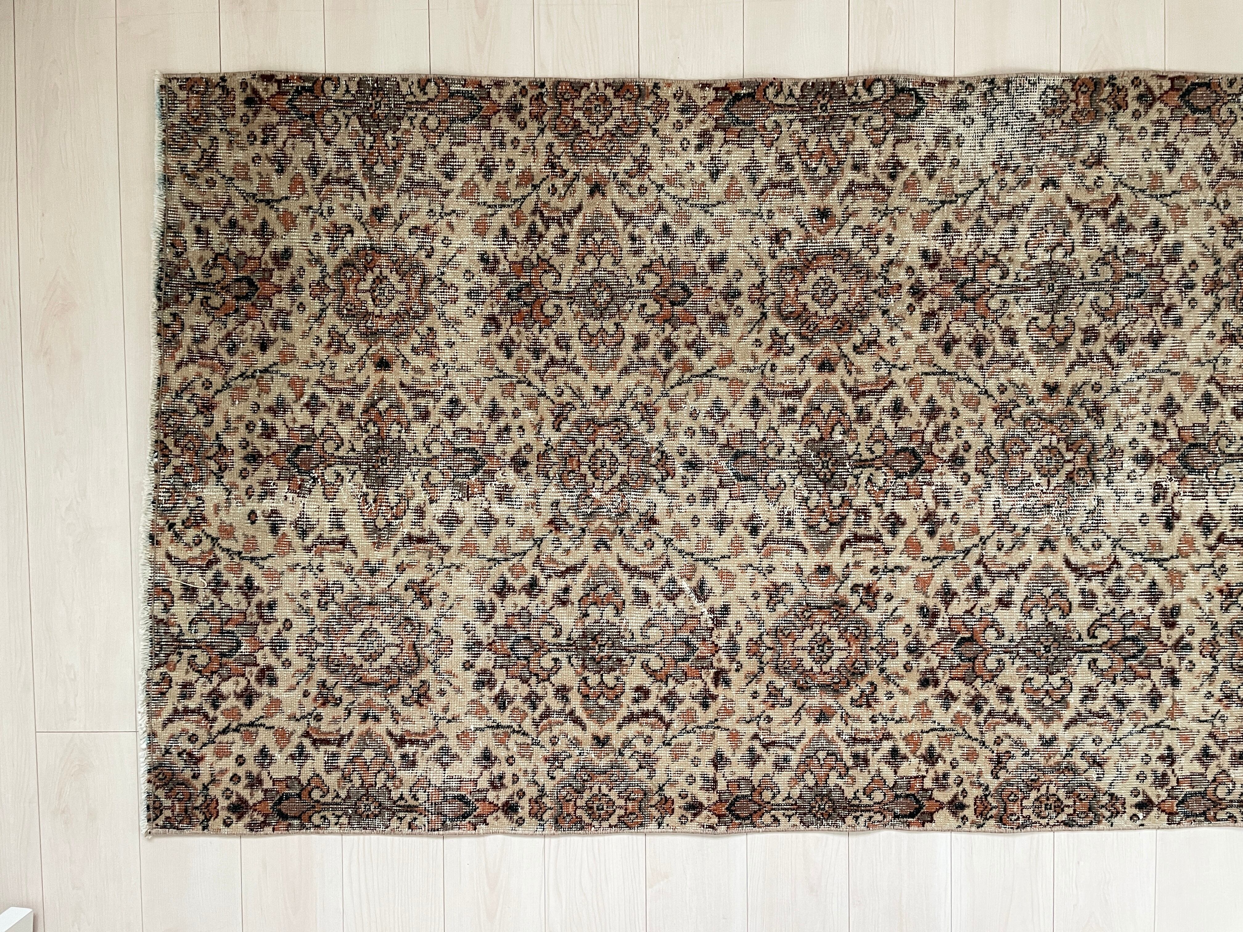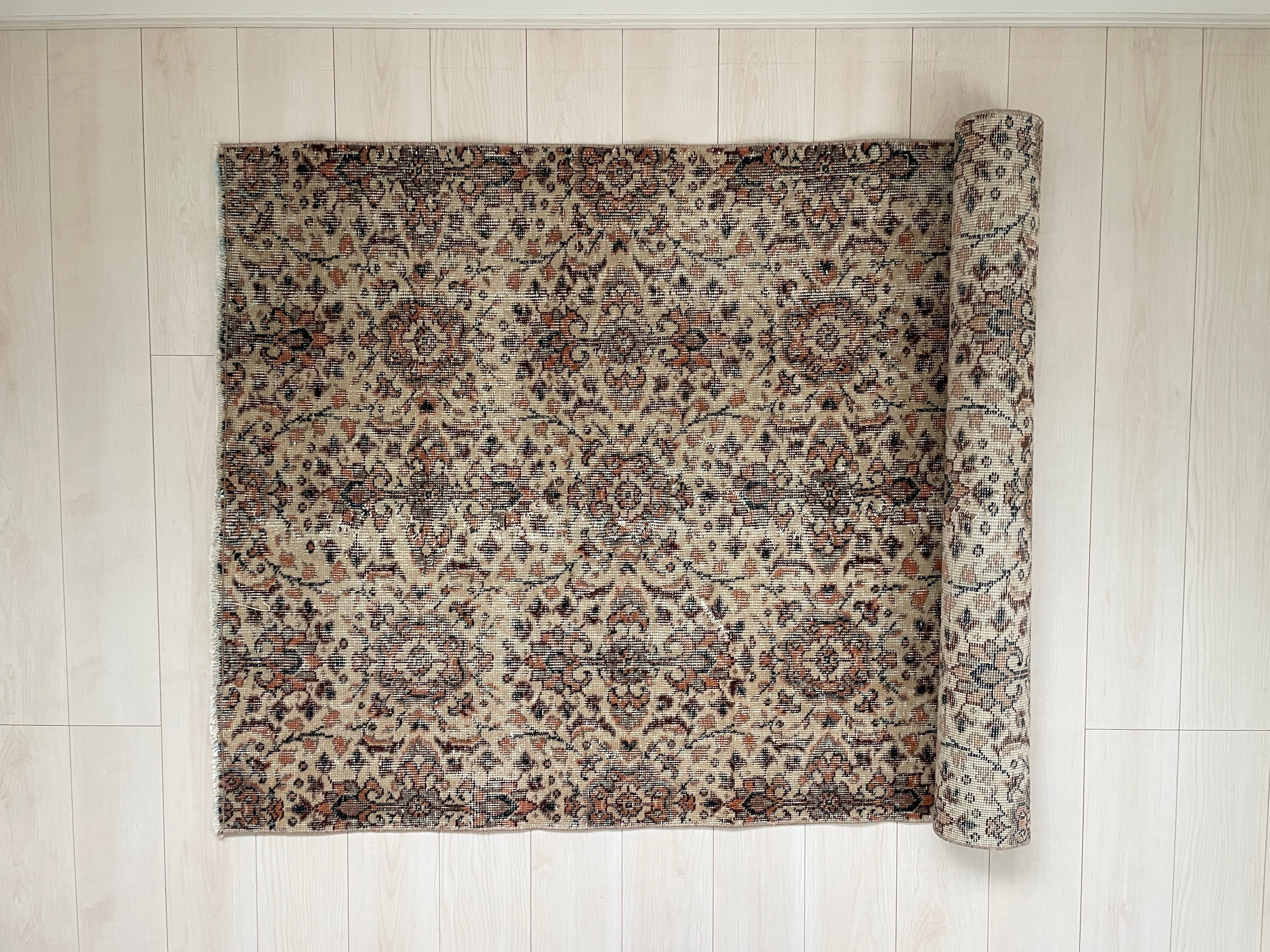 オレンジとベージュのコントラストがとても優しく、空間を癒してくれそうなヴィンテージラグです。