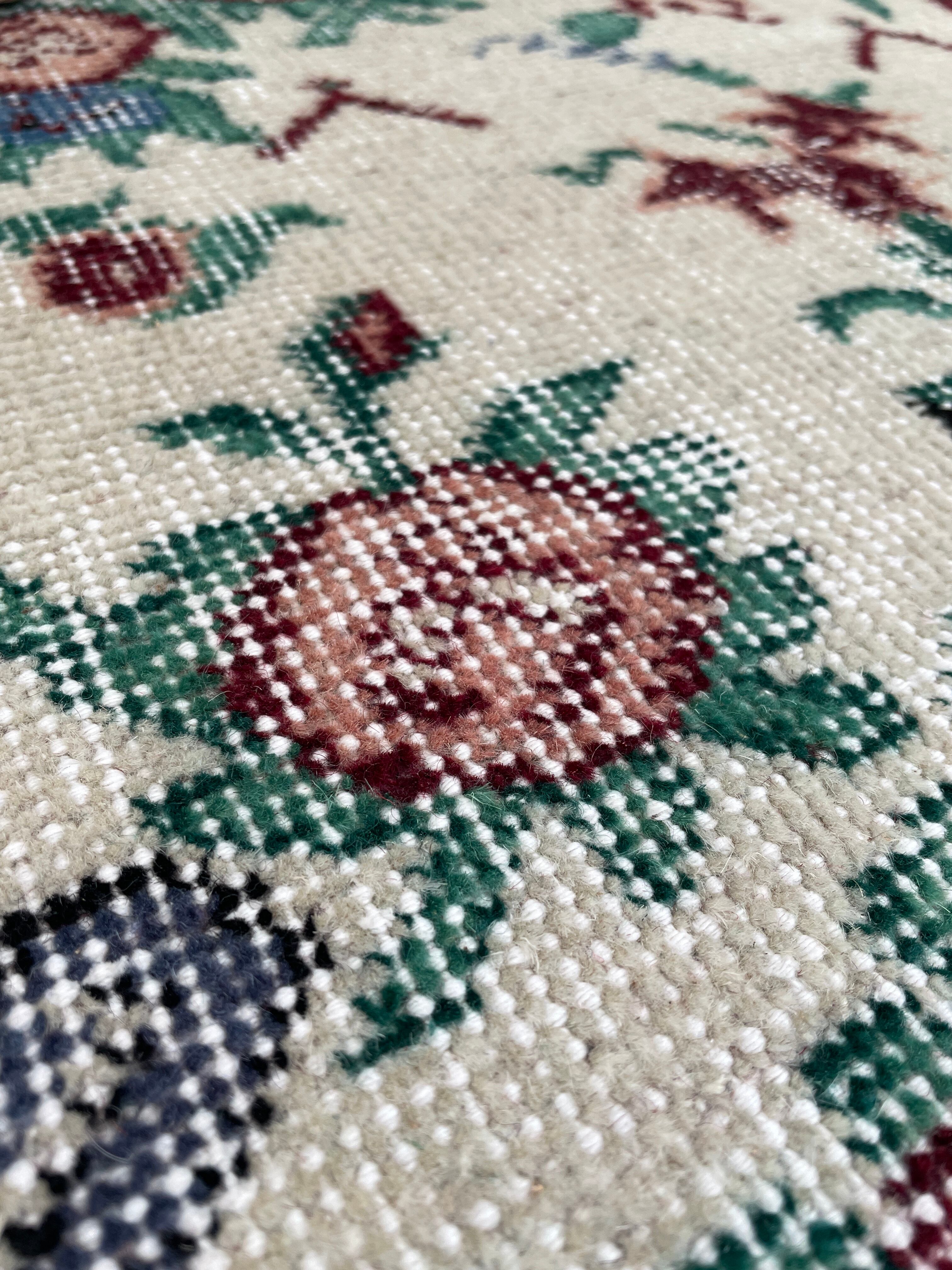 まるでブーケのような華やかなデザインに癒されるヴィンテージラグ。