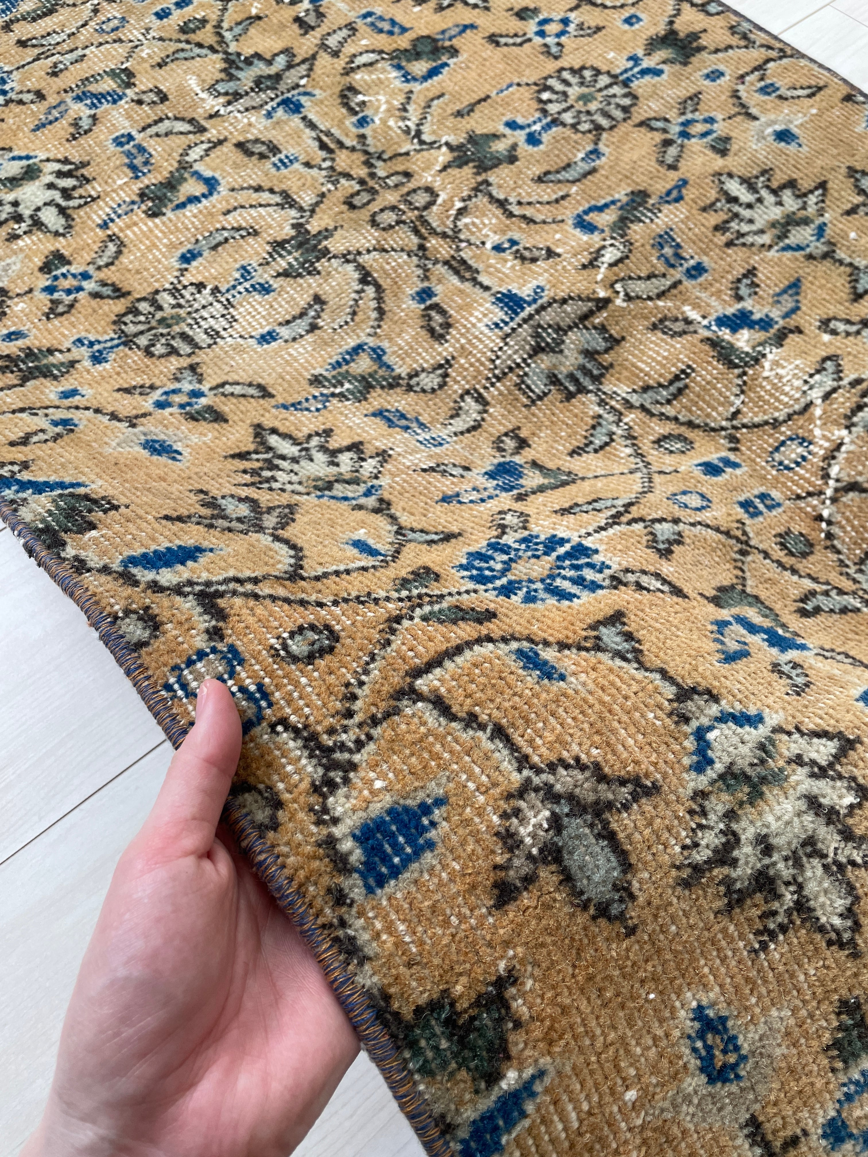 お花が咲いたようなお花柄ヴィンテージラグなので、敷いてあるだけでもインテリアになりますよ。
