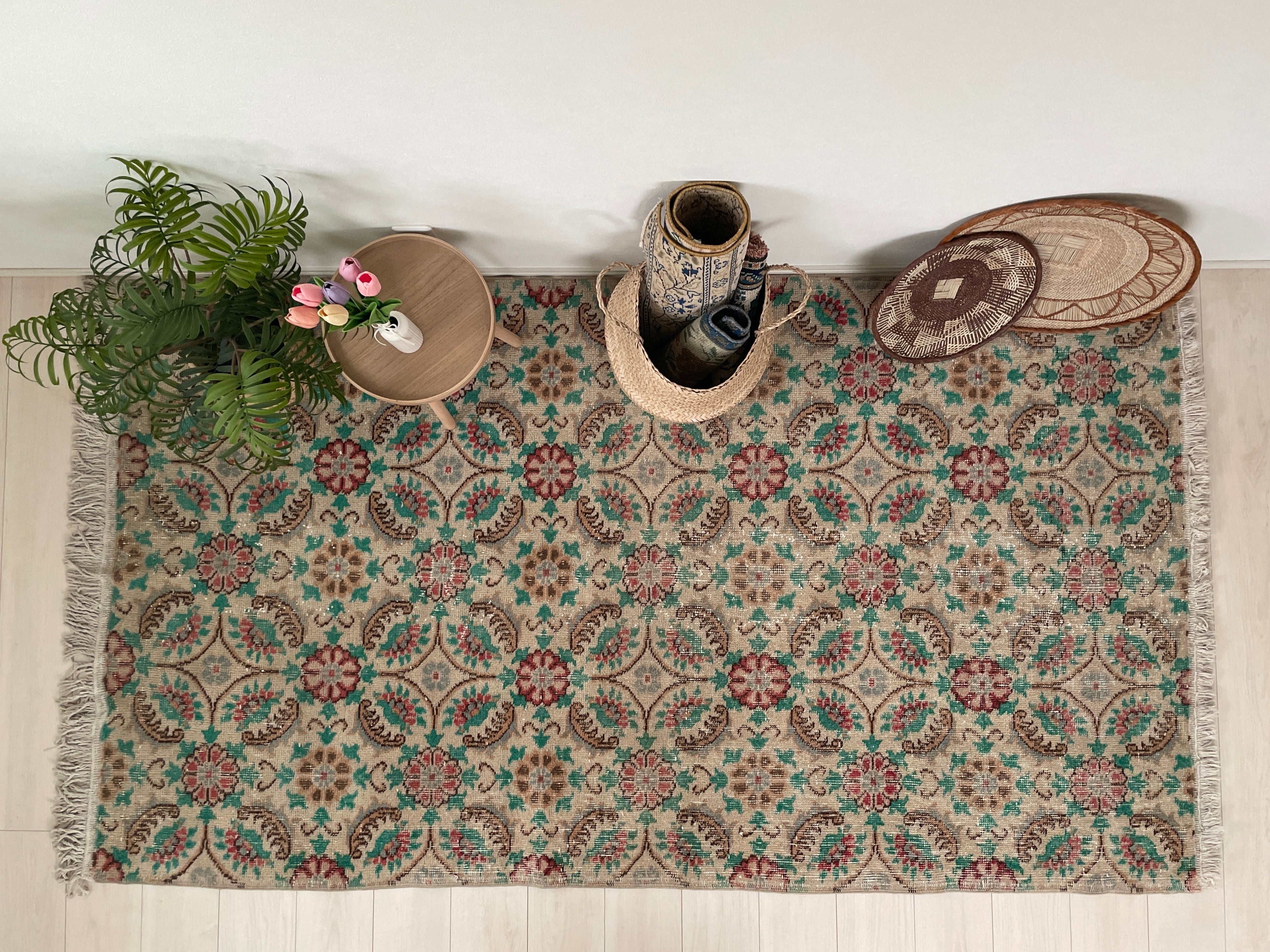【約123.5cm×約228cm】70's vintage rug -"vintage garden"-
