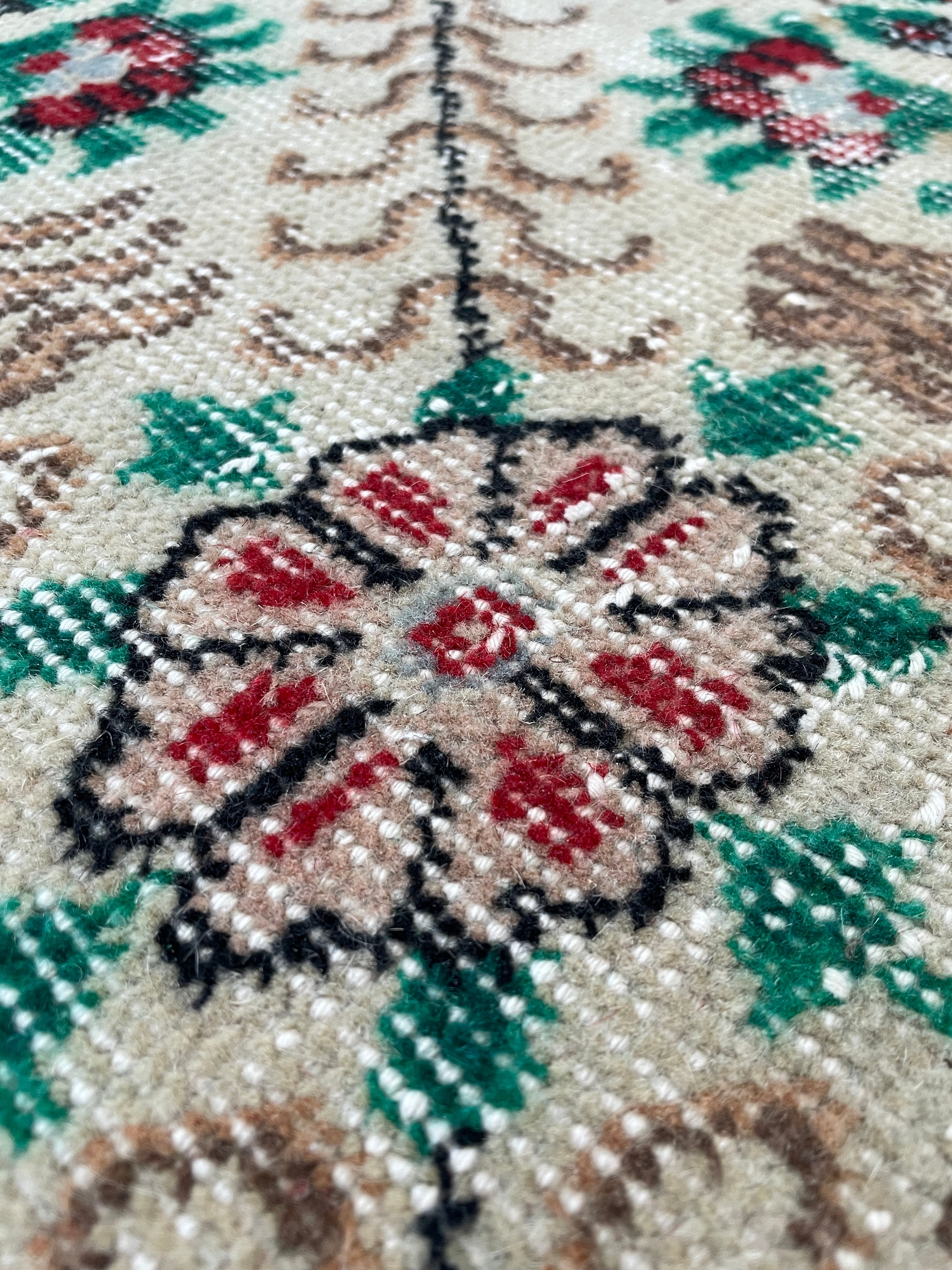 華やかなお花たちが綺麗に残ったヴィンテージラグ。