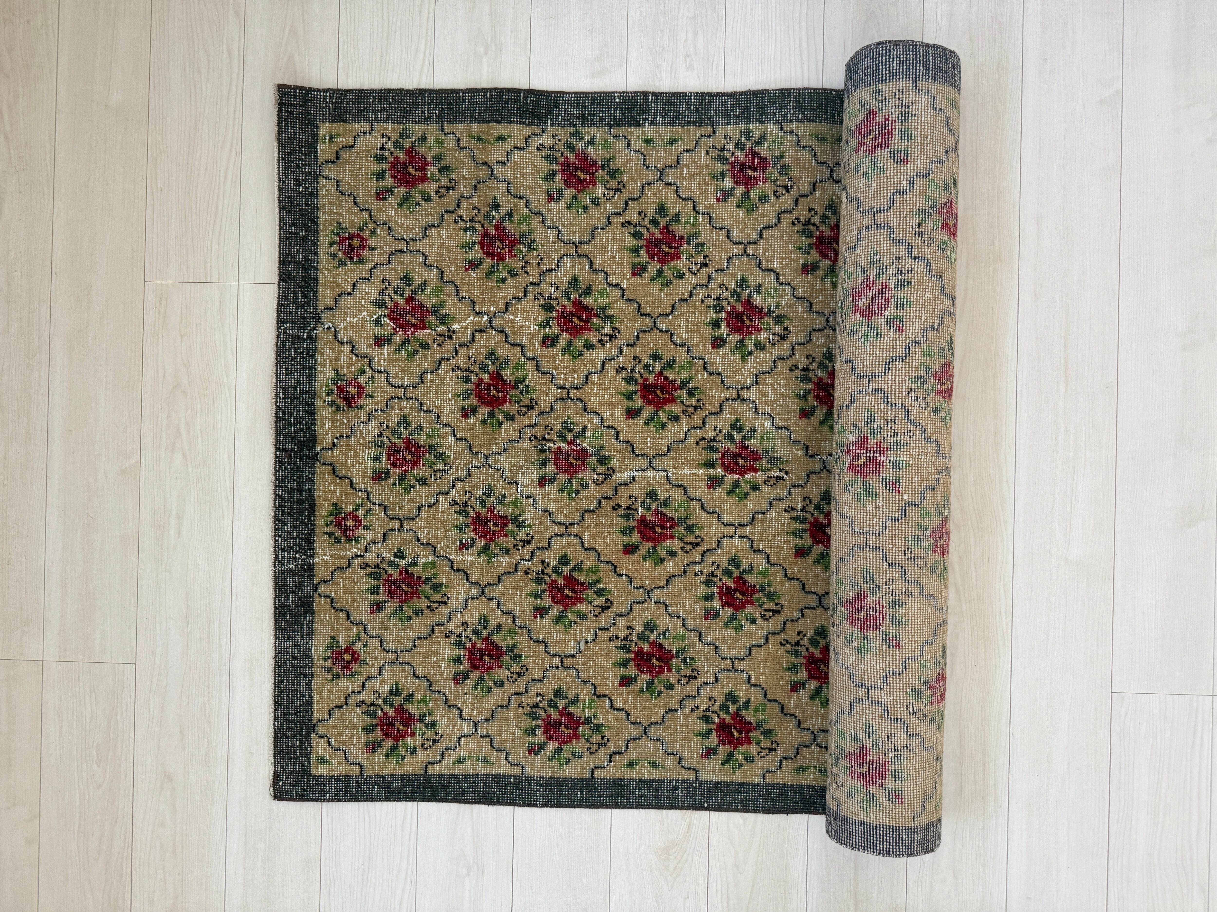 ヴィンテージラグは、糸のほつれ、抜け、毛羽立ち、シミなど見られる場合がございます。ヴィンテージ品ならではの雰囲気としてお楽しみいただけますと幸いです。