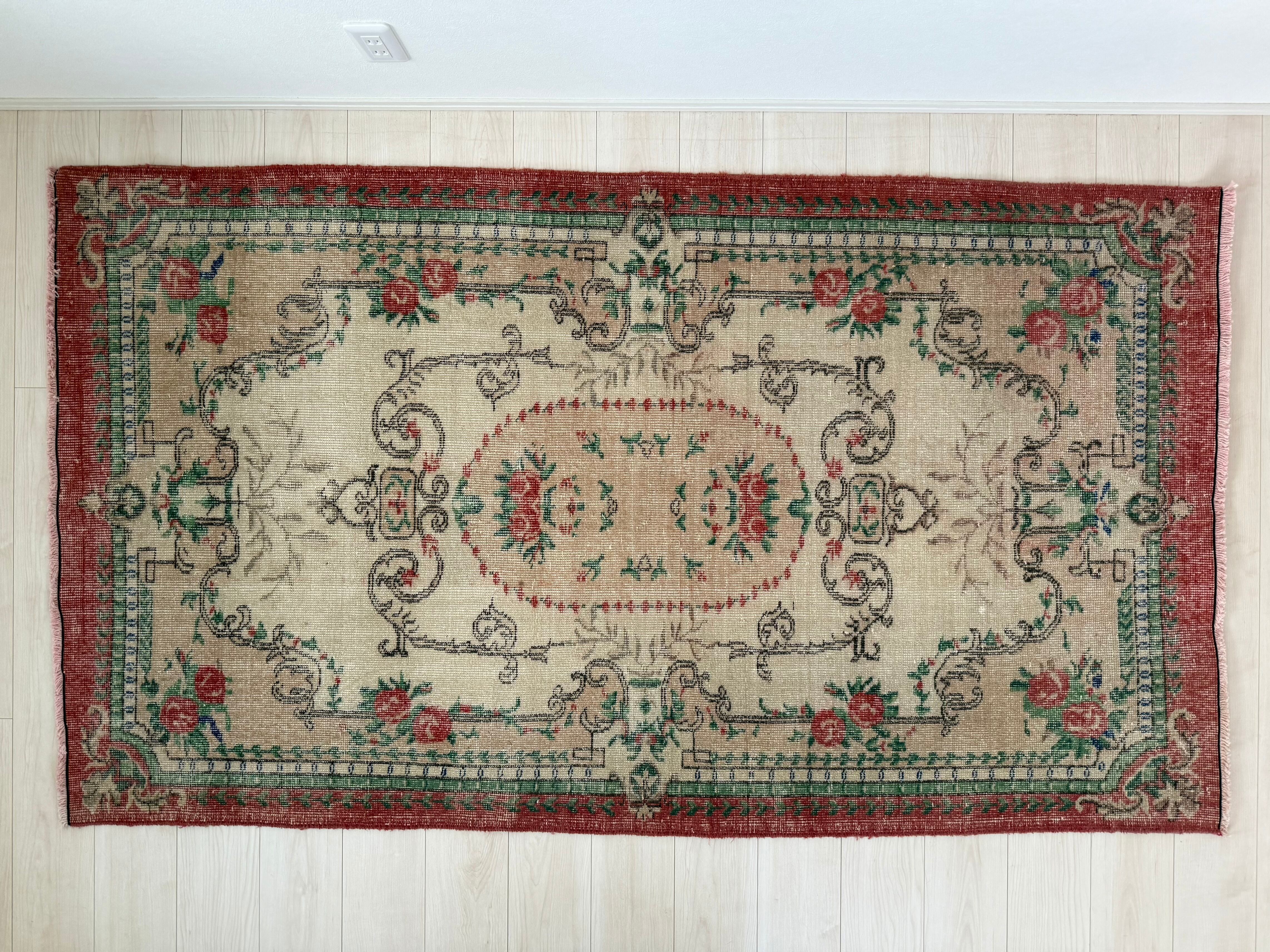 ヴィンテージラグは、糸のほつれ、抜け、毛羽立ち、シミなど見られる場合がございます。ヴィンテージ品ならではの雰囲気としてお楽しみいただけますと幸いです。