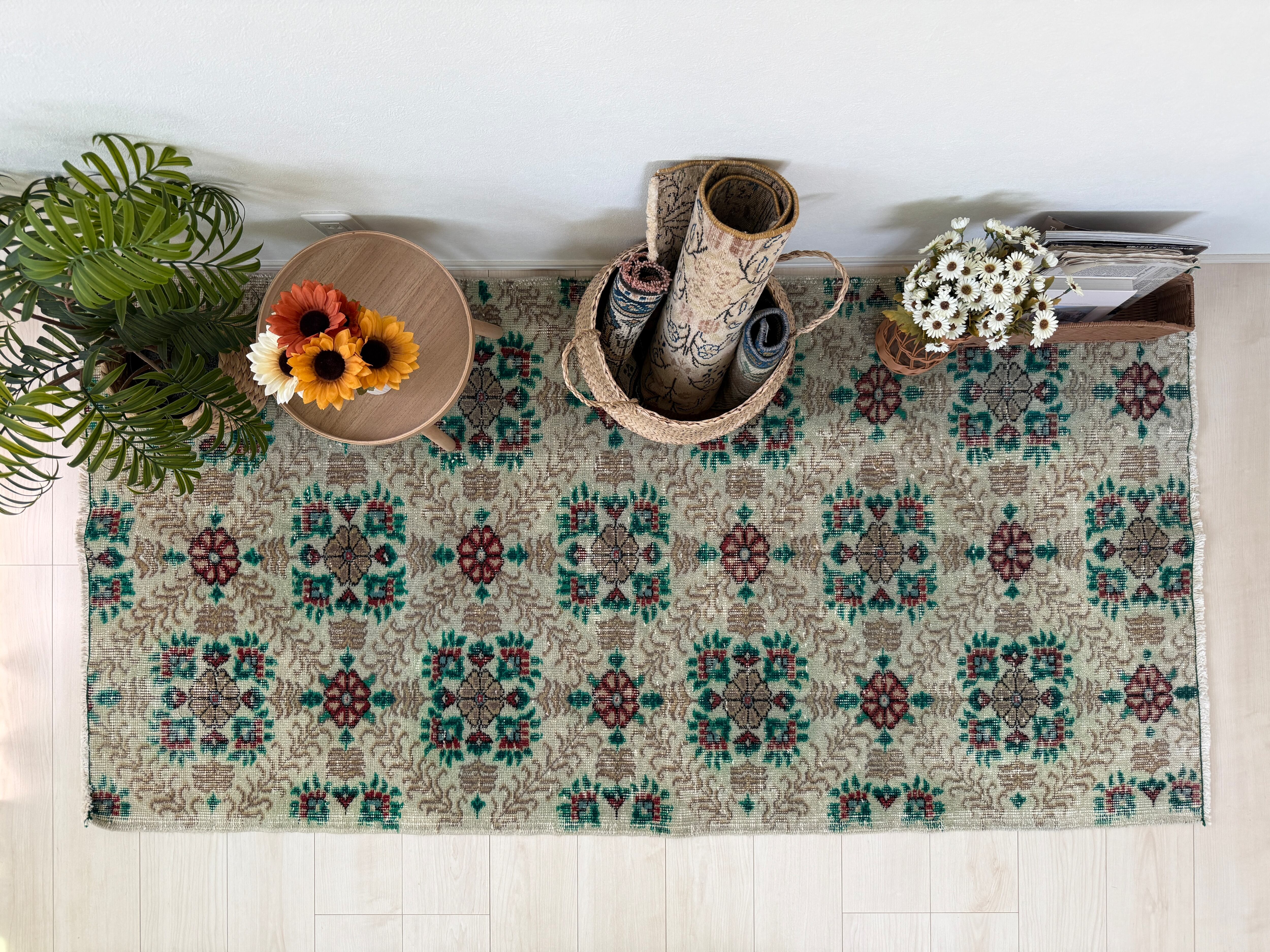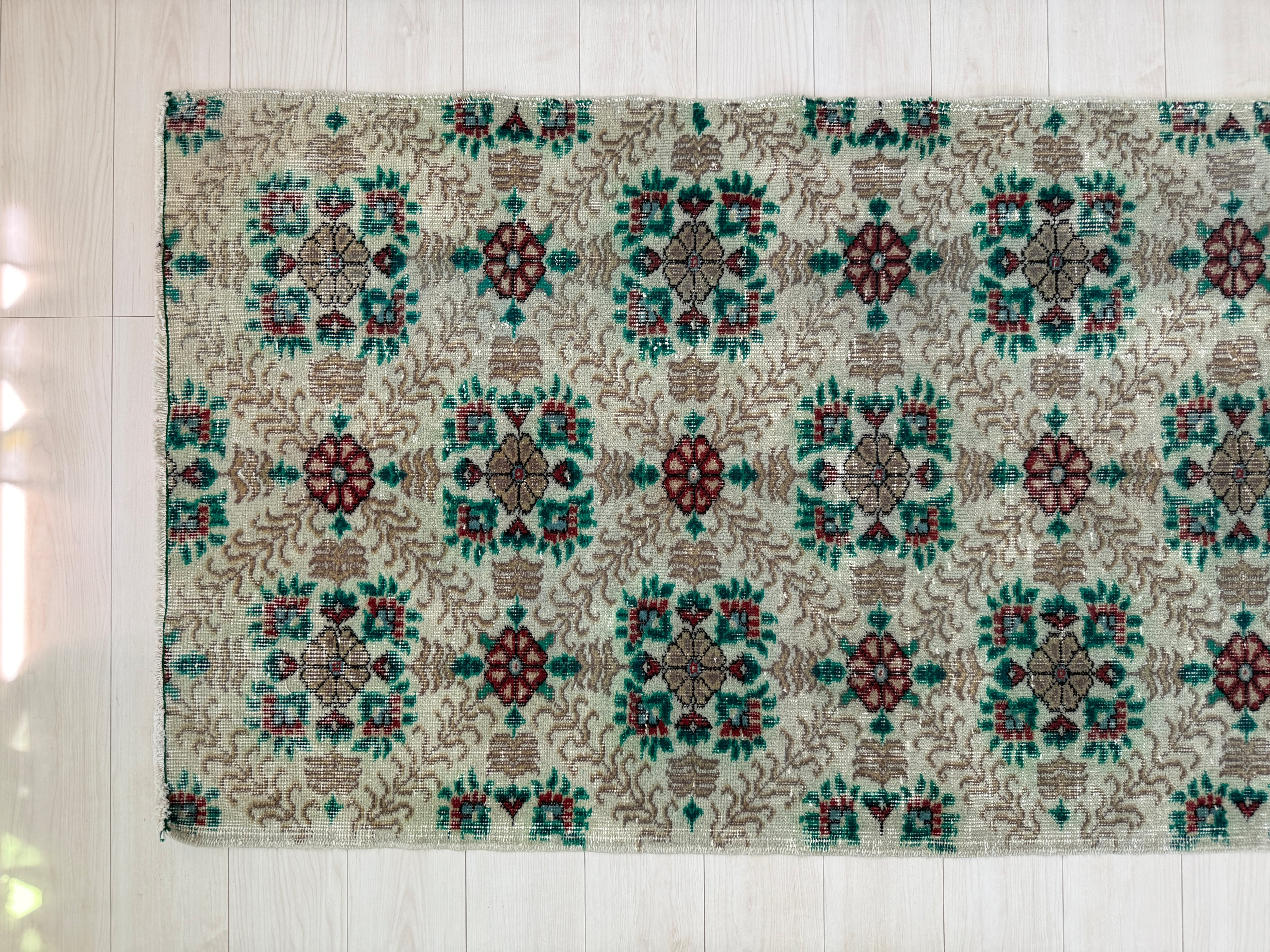 色味もデザインもくっきり残る希少なヴィンテージラグ。