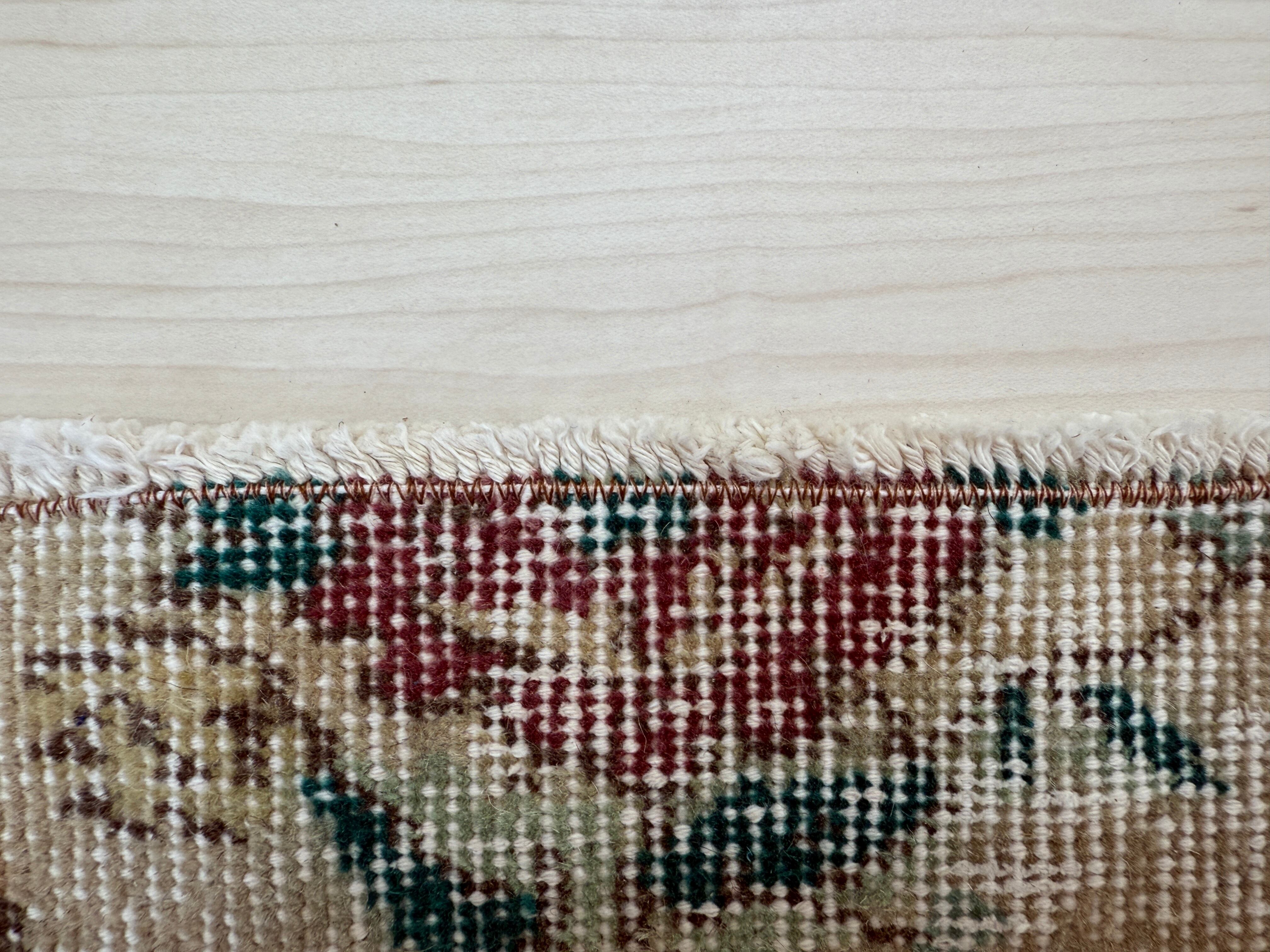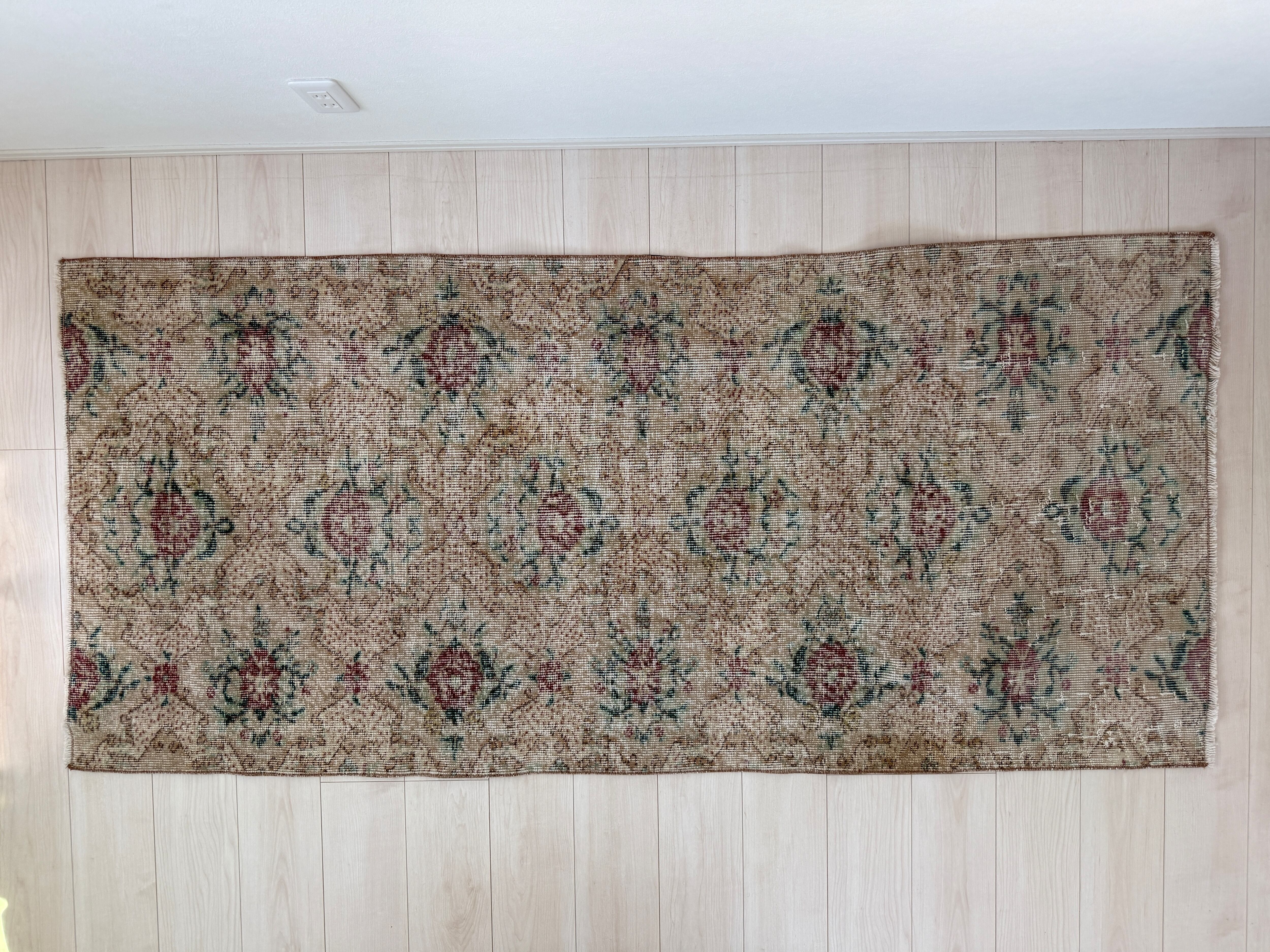1輪ずつ咲き誇るお花が美しく、どこか哀愁ただようヴィンテージラグ。