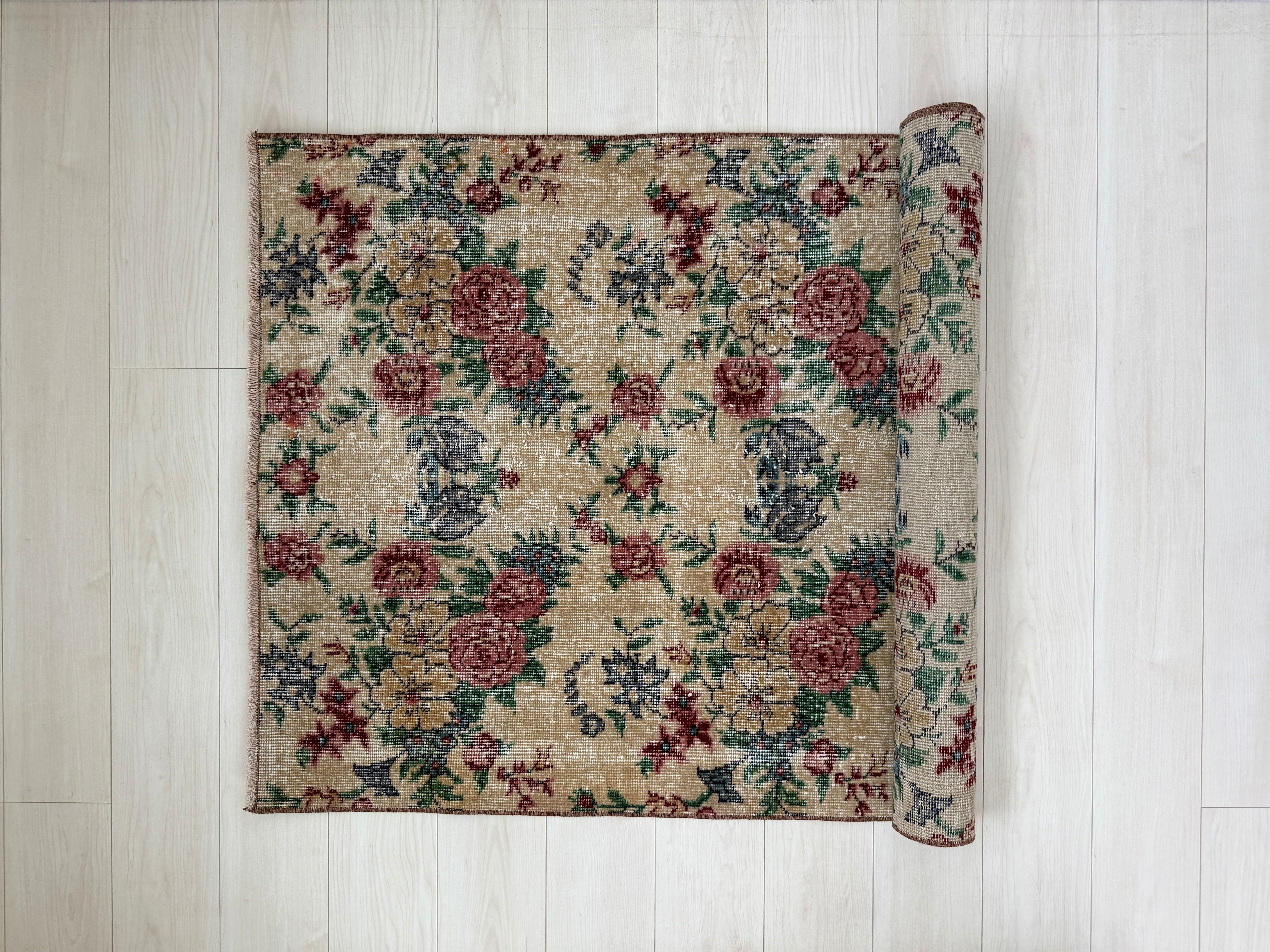 まるでブーケが集まったような華やかなヴィンテージラグ。
