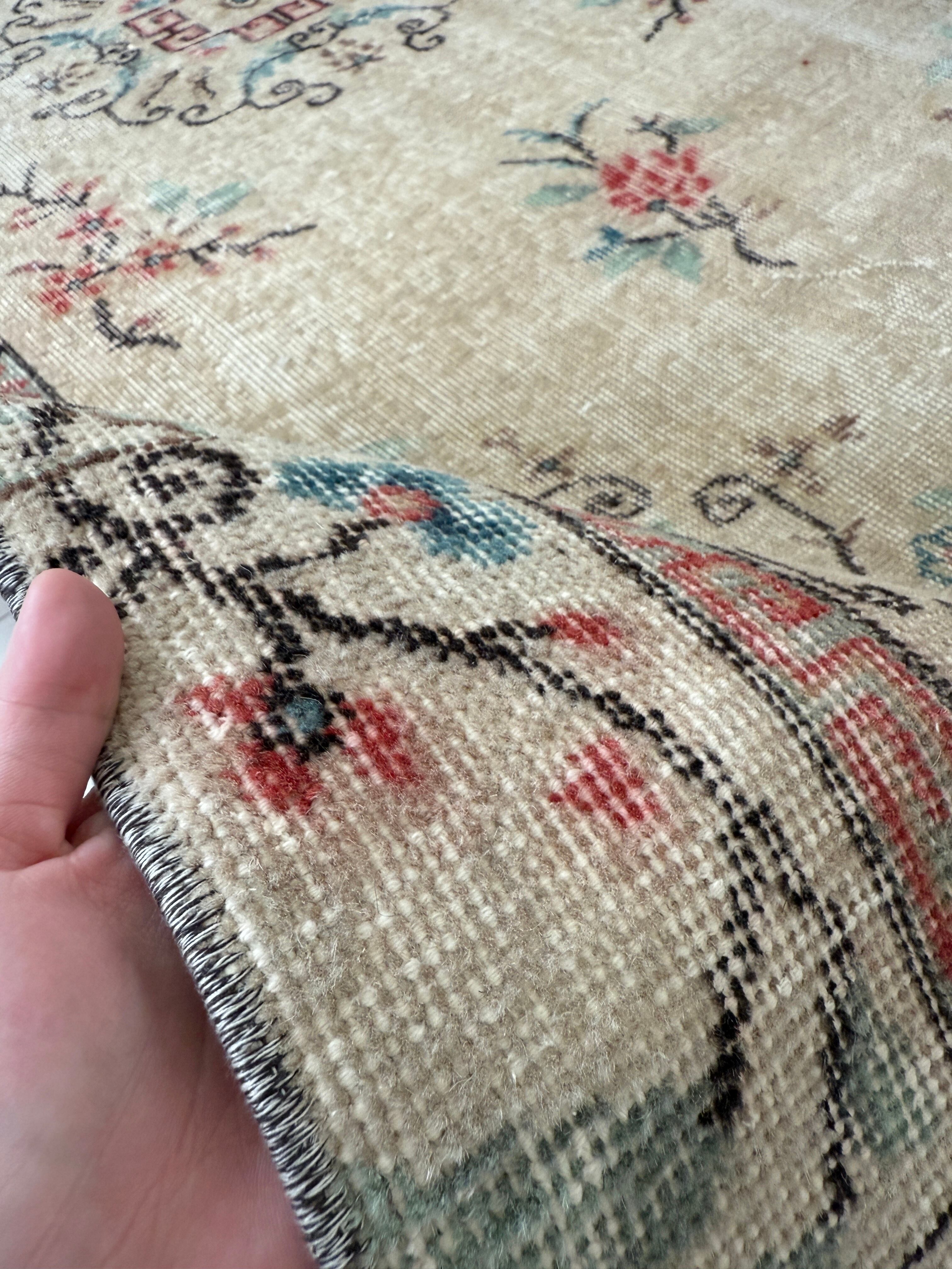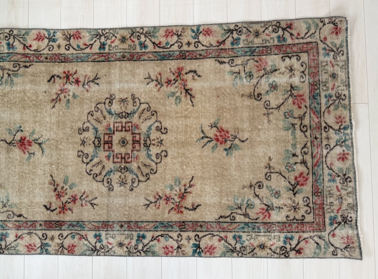 まるで絵画のような美しいデザインのヴィンテージラグ。