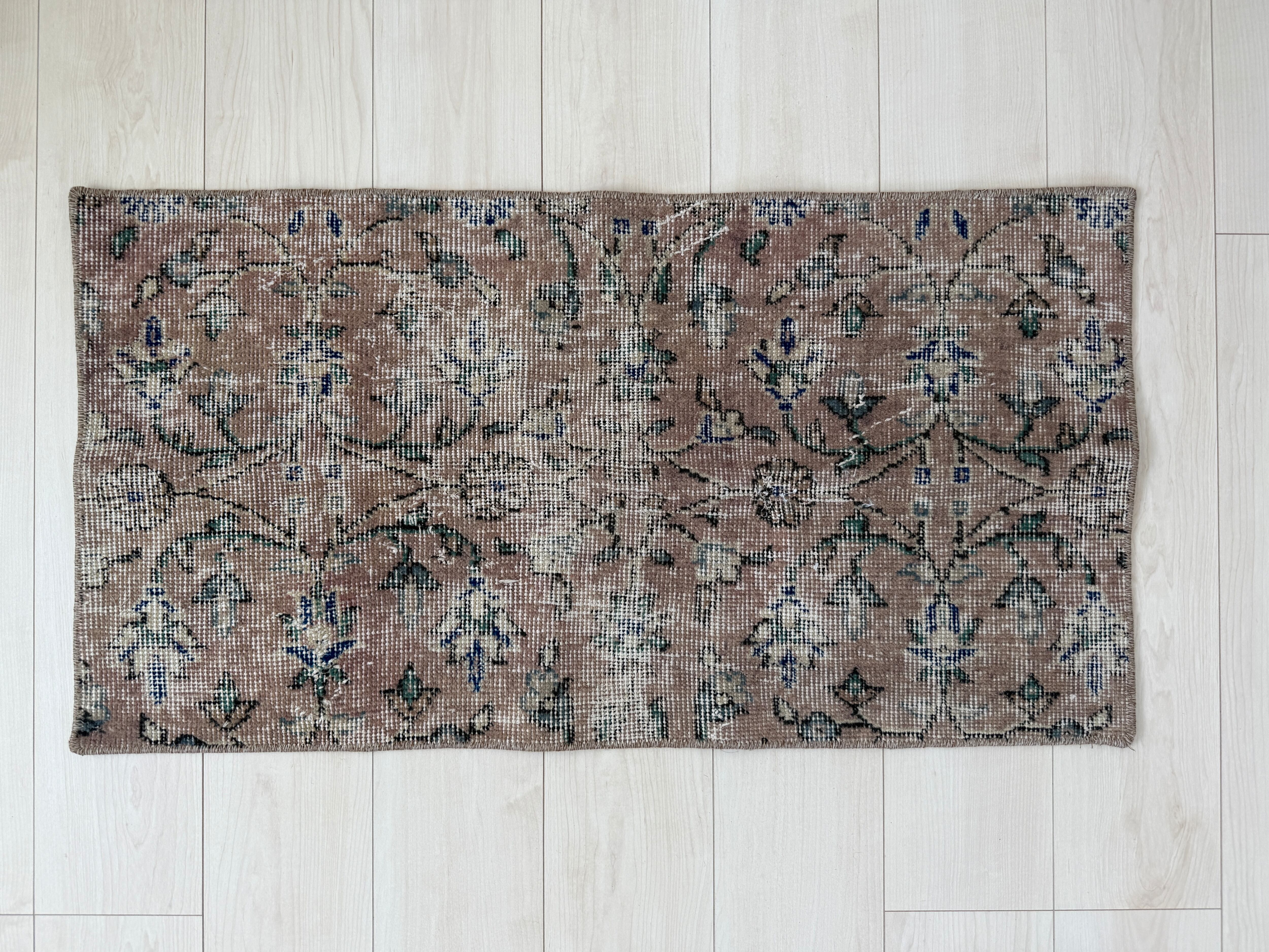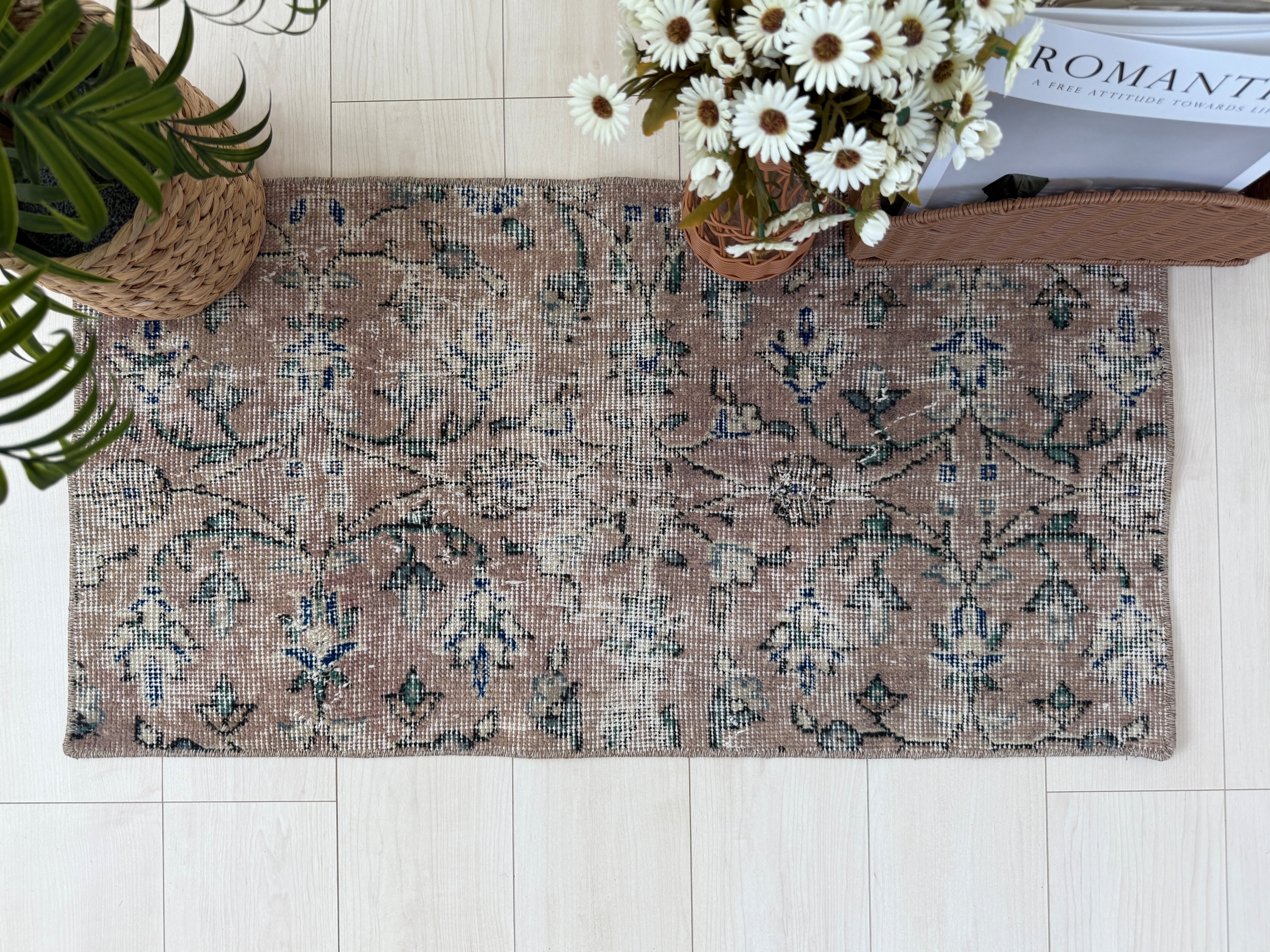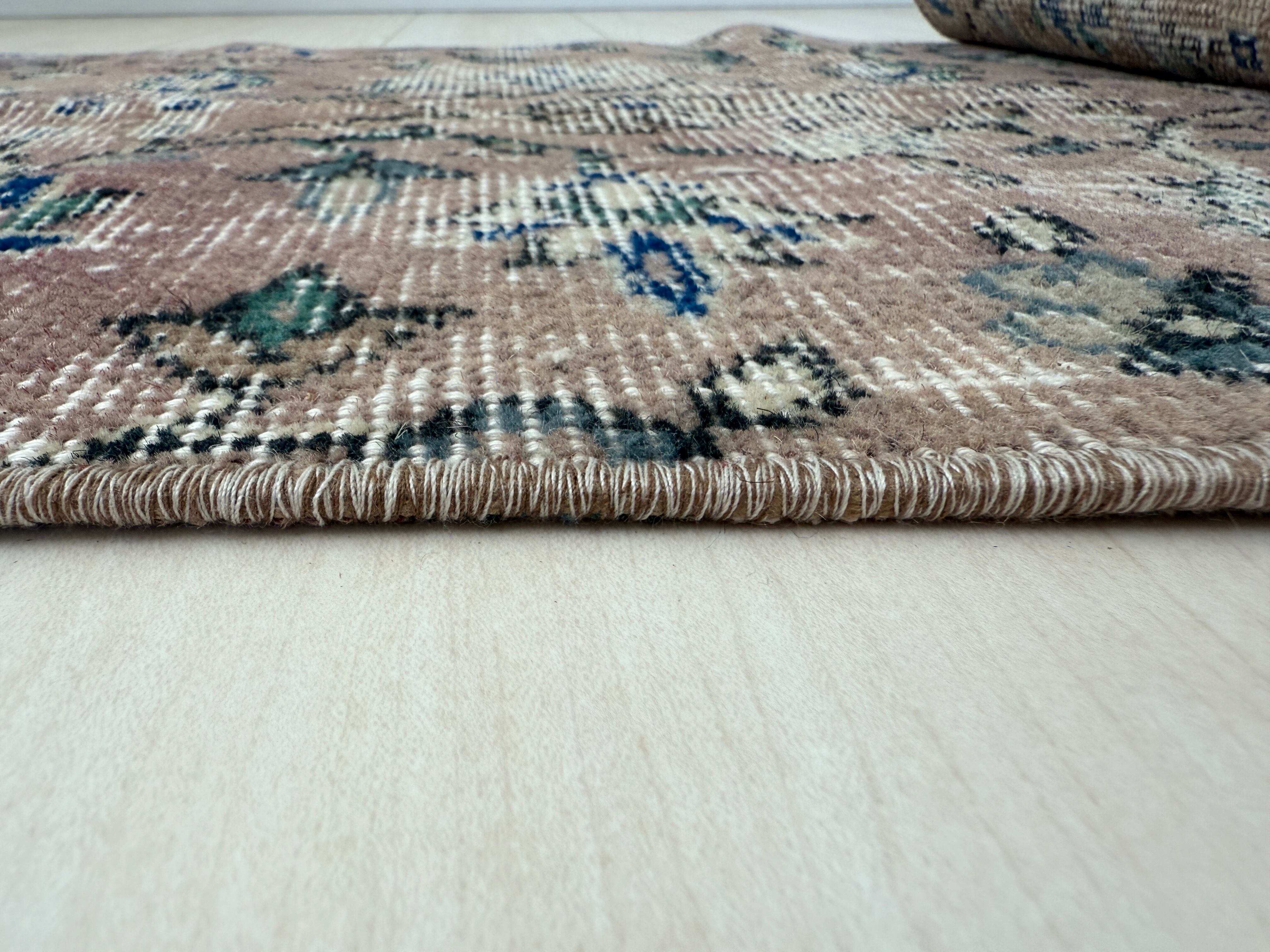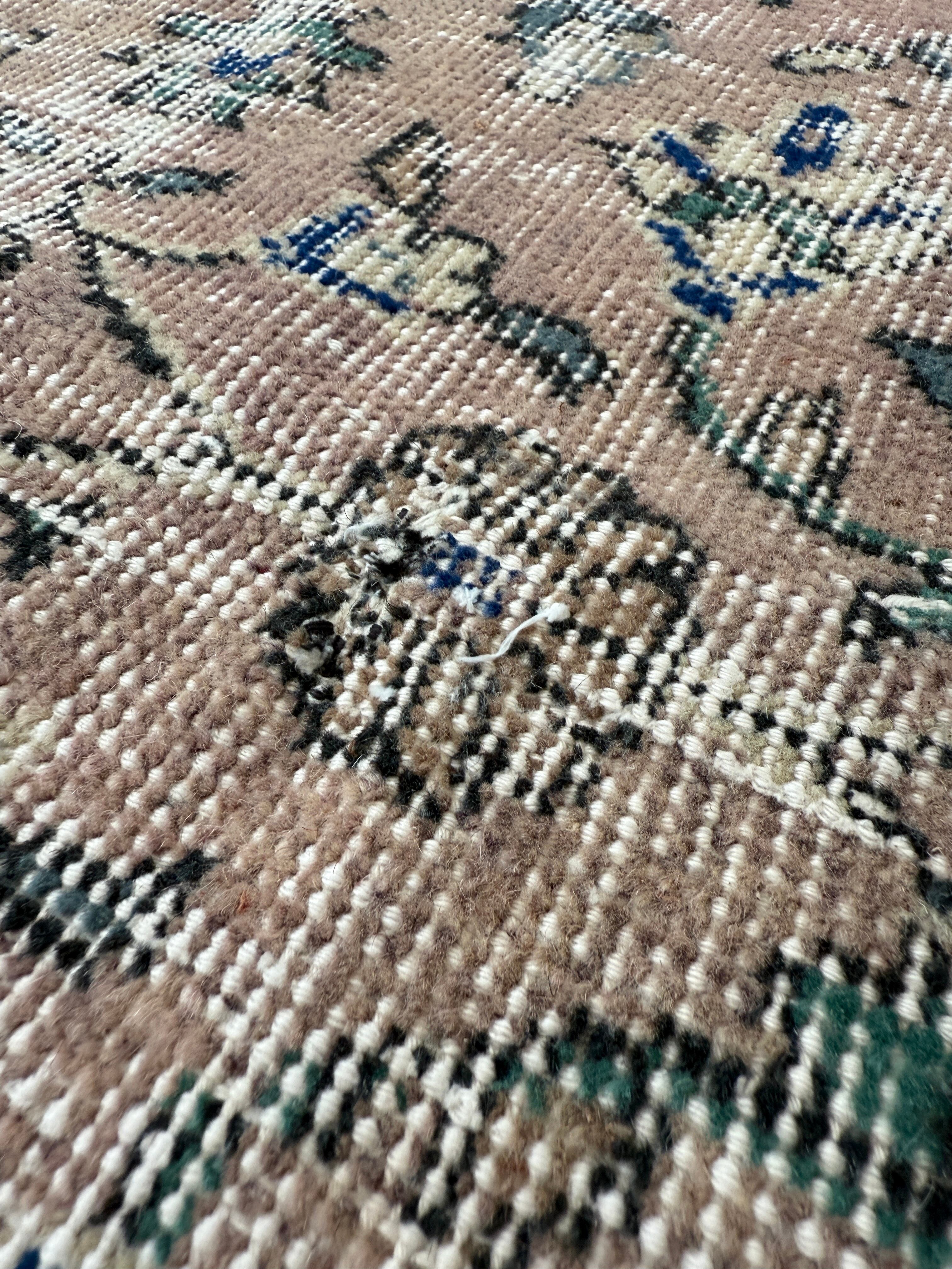 70's vintage mini rug -"pink beige floral"-