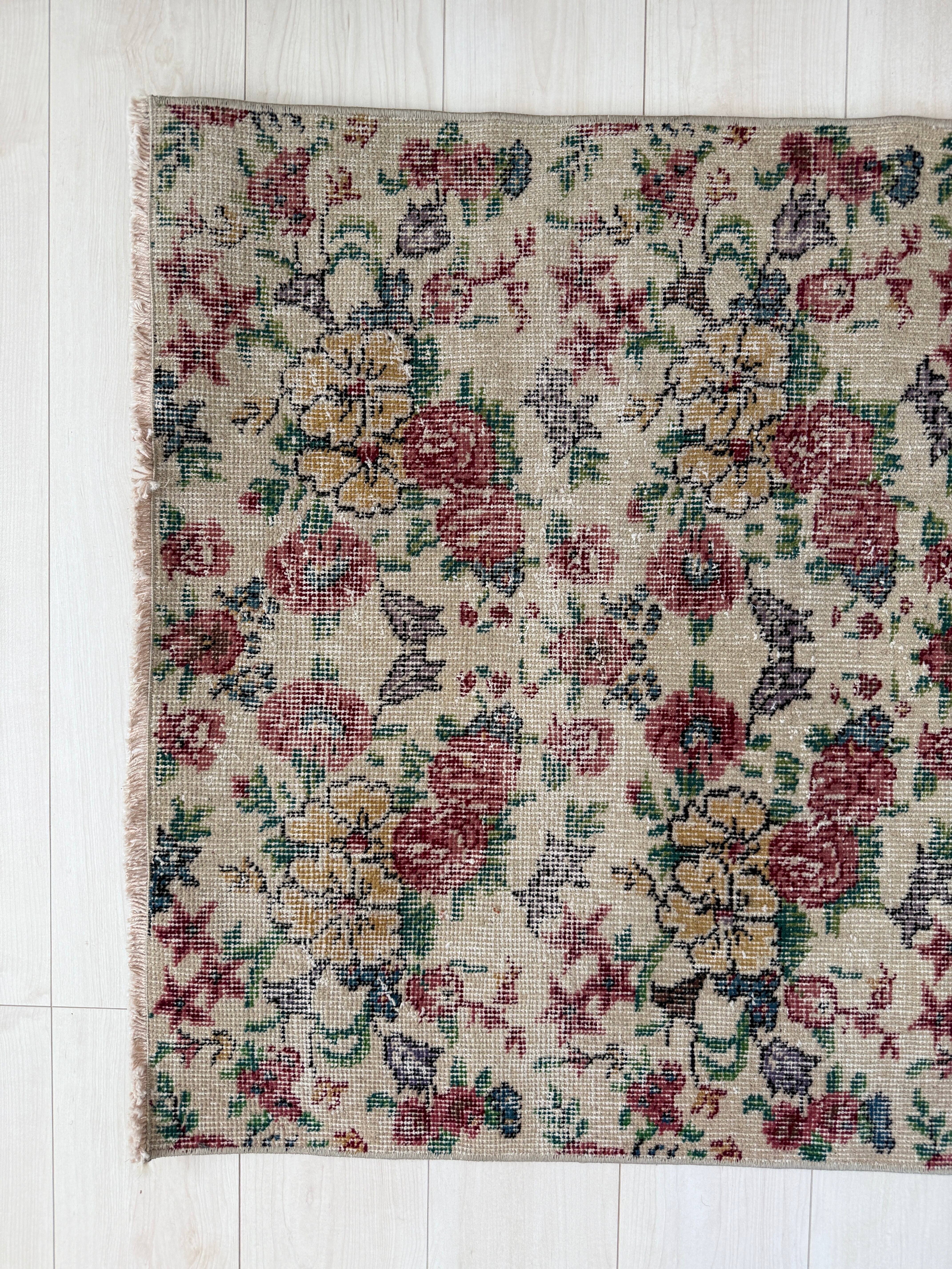 まるでbouquetがたくさん並んだような華やかなヴィンテージラグ。