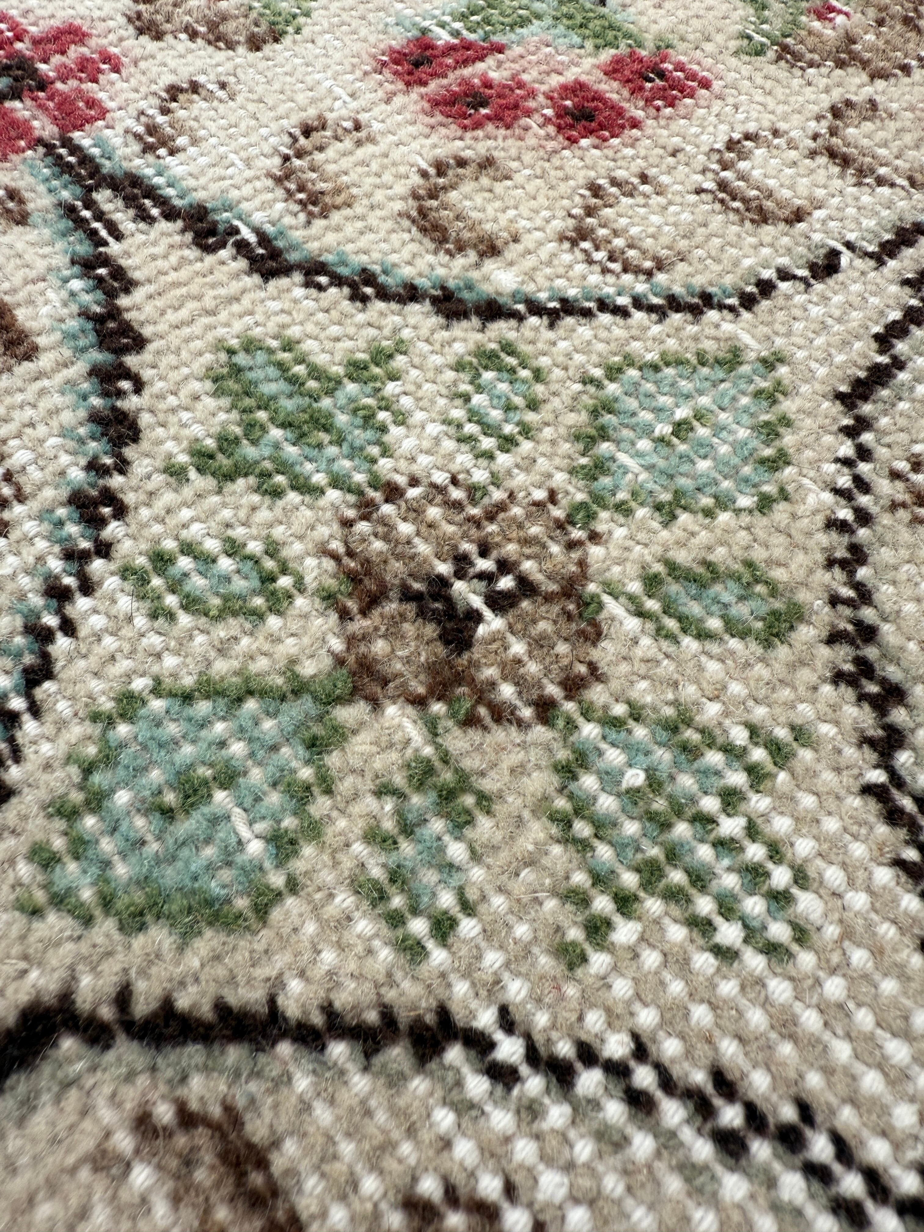 ヴィンテージラグは、糸のほつれ、抜け、毛羽立ち、シミなど見られる場合がございます。ヴィンテージ品ならではの雰囲気としてお楽しみいただけますと幸いです。