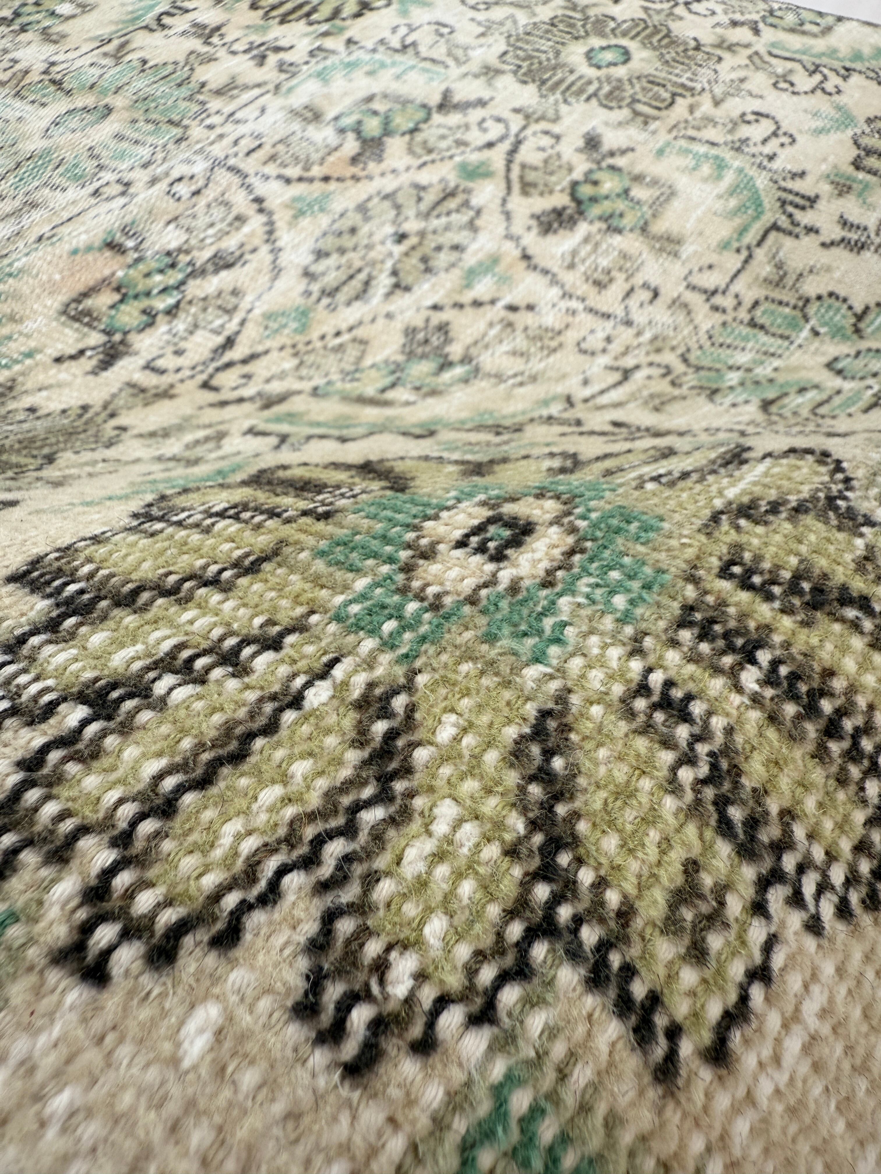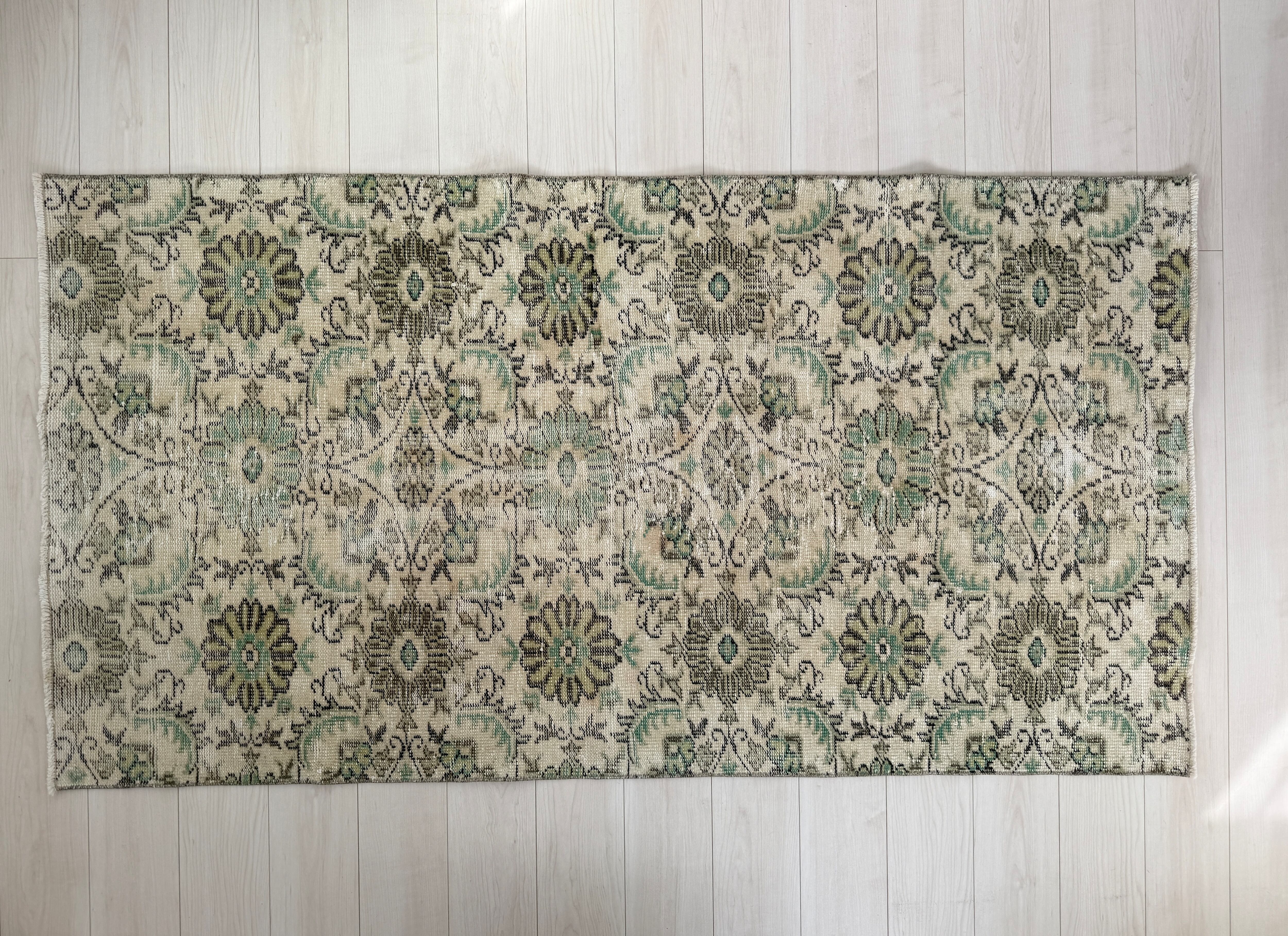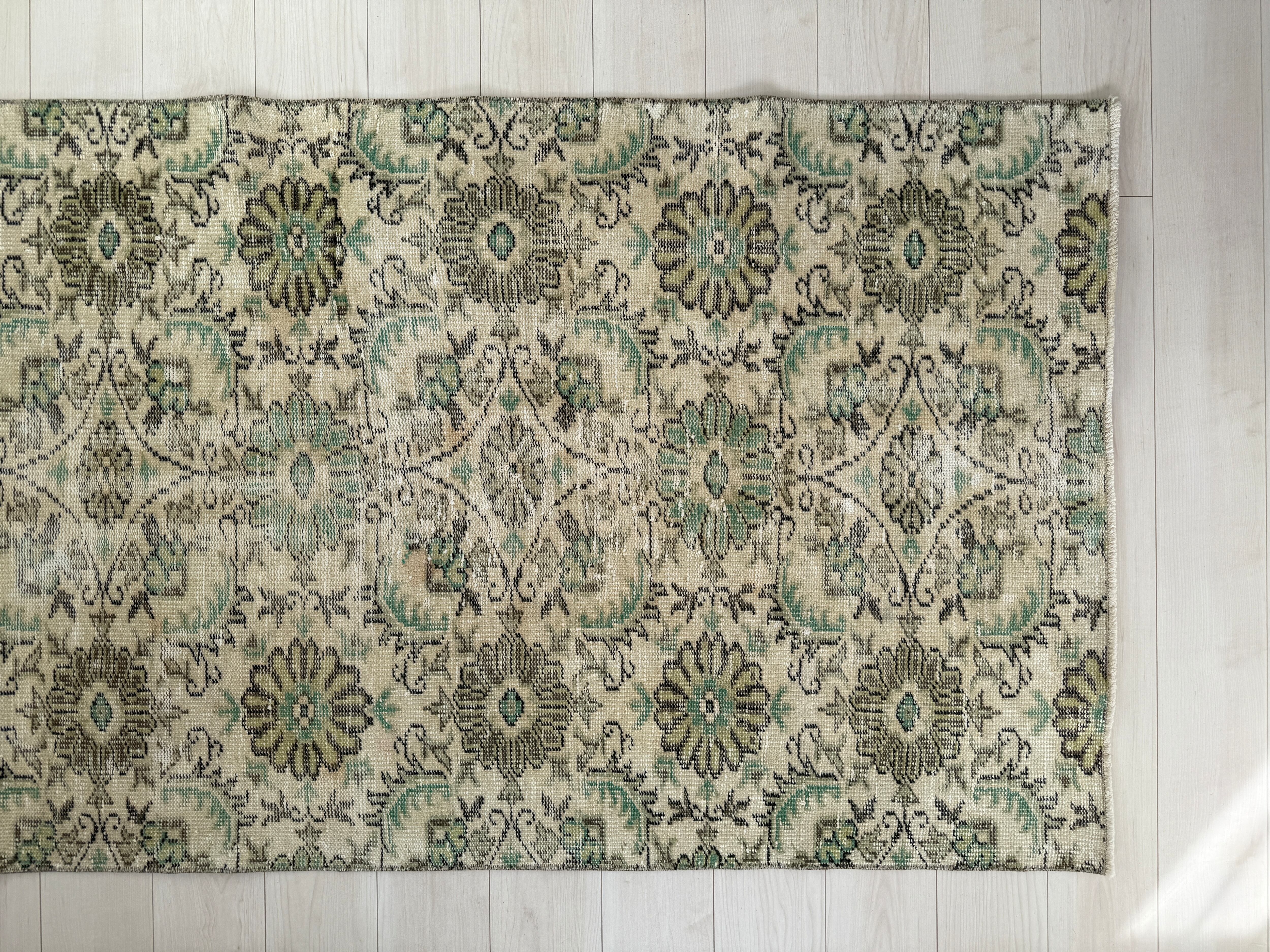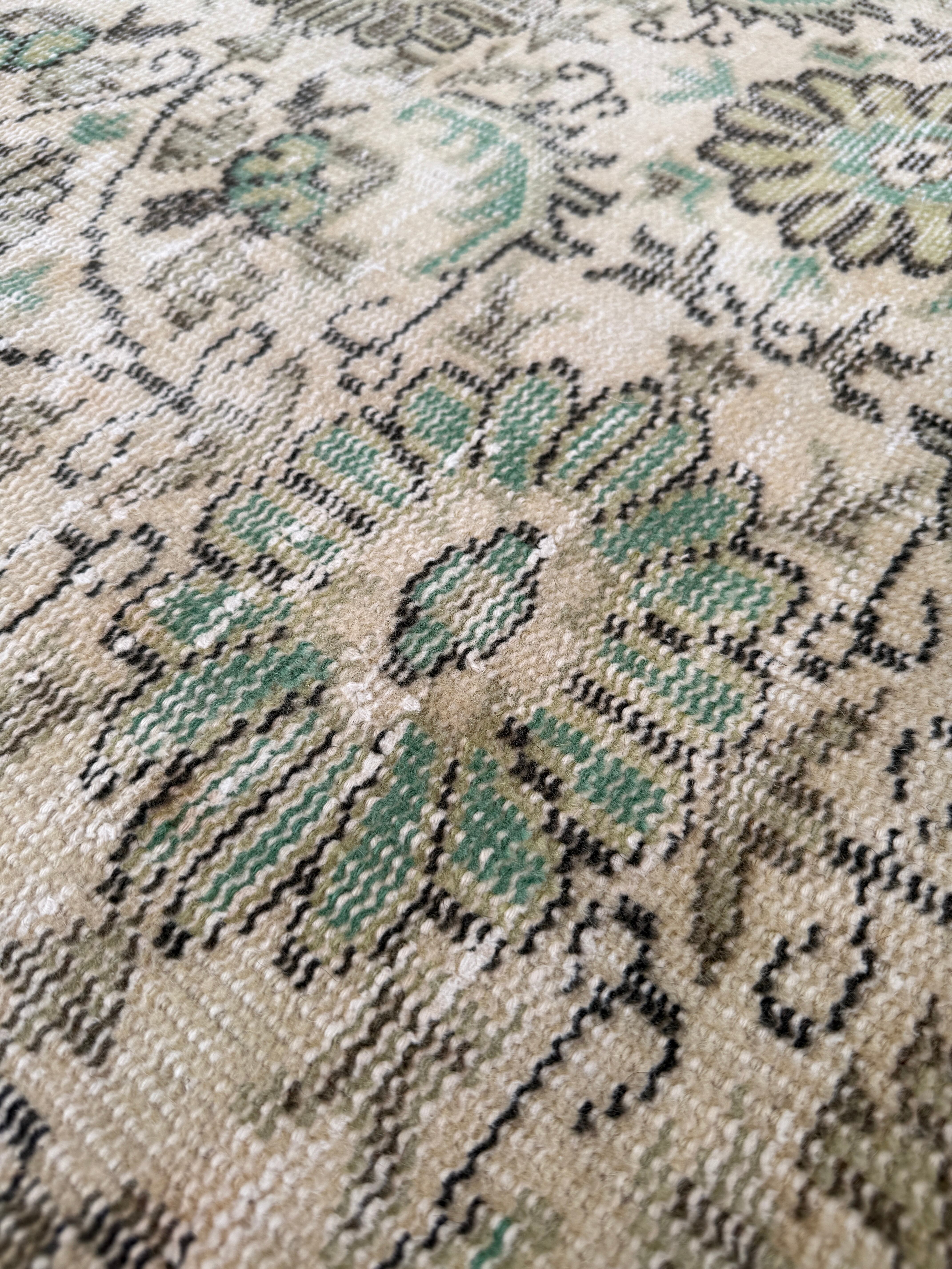 【約104.5cm×約196.5cm】70's vintage rug -"daisy green"-