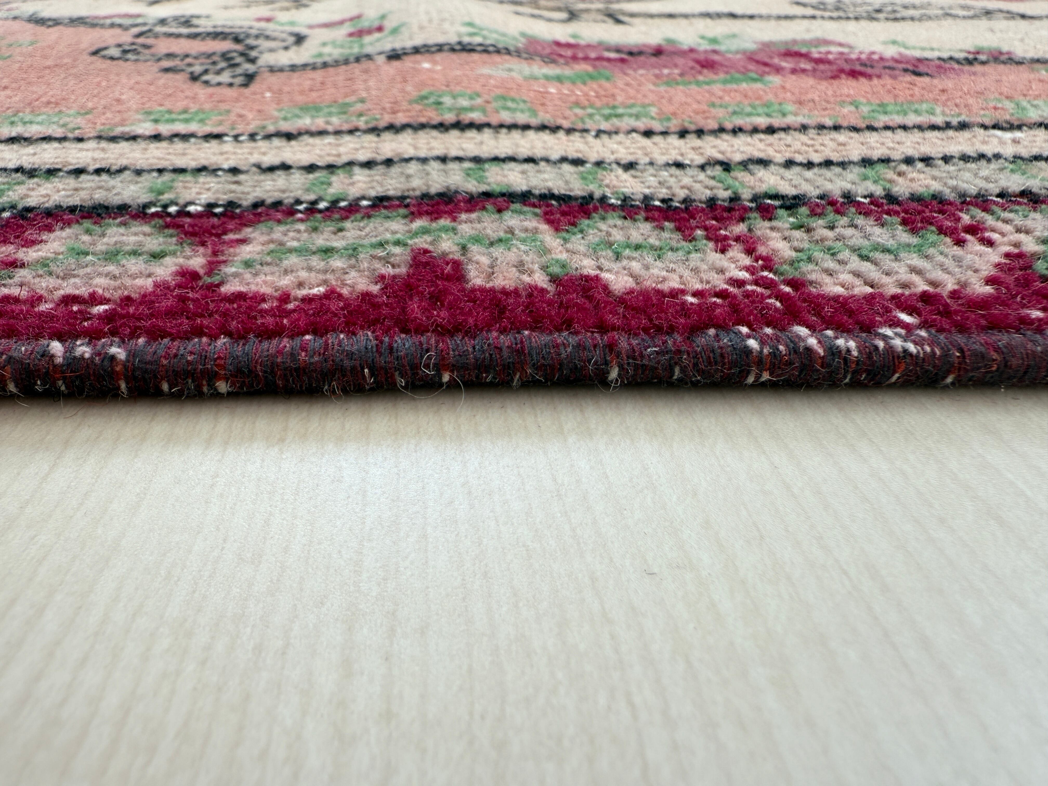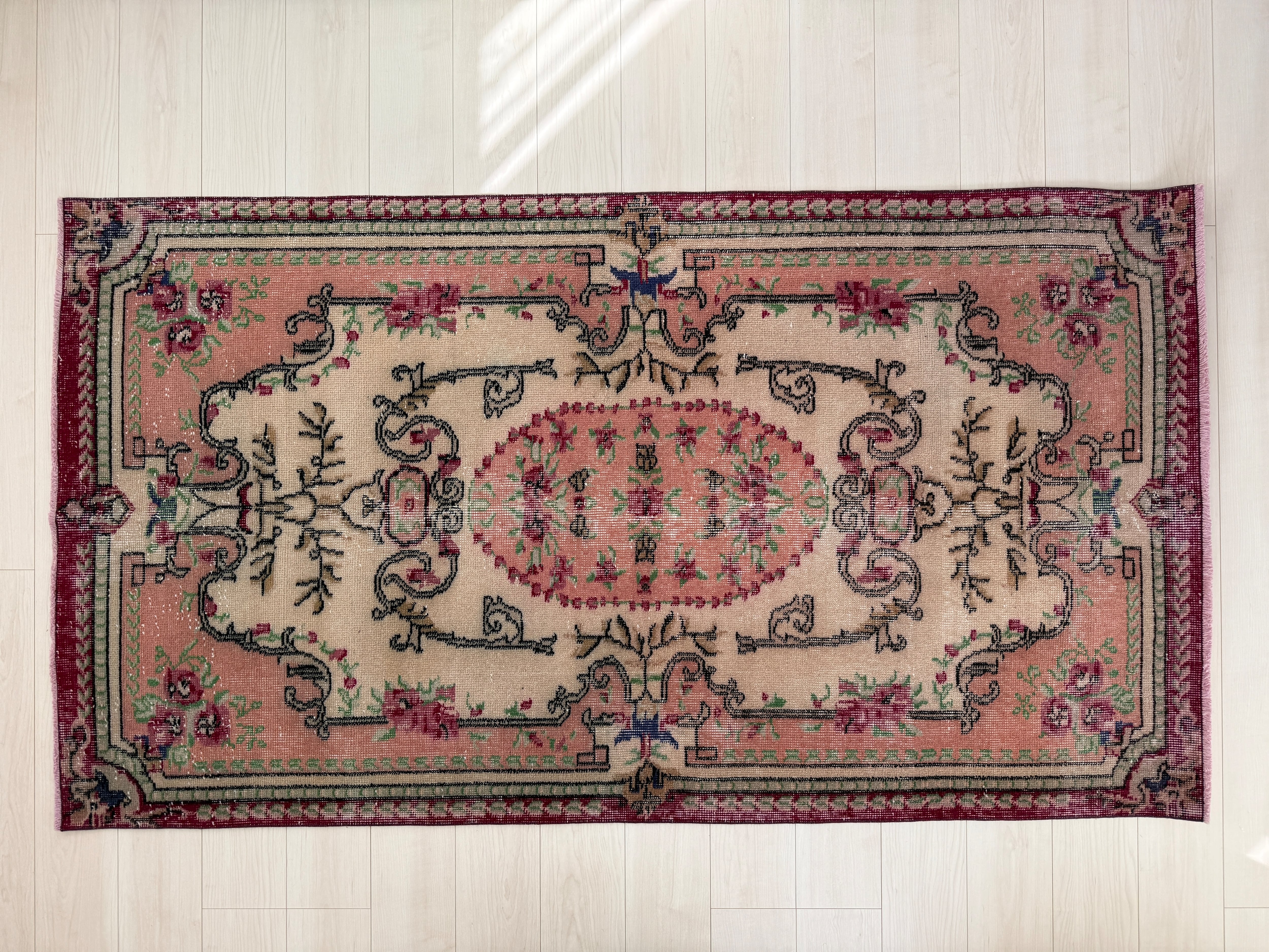 【約111cm×約204.5cm】70's vintage rug -"pink red floral"-