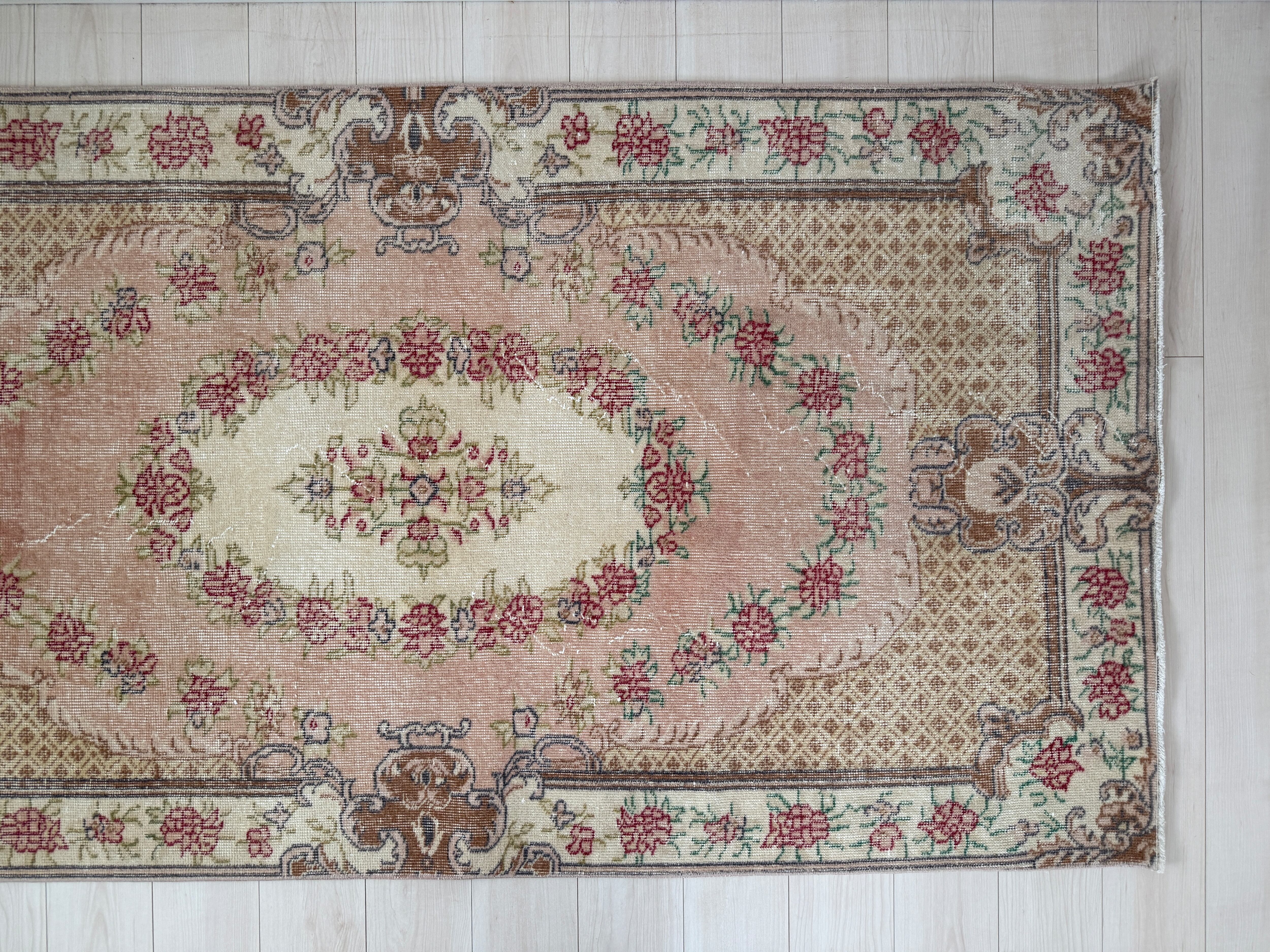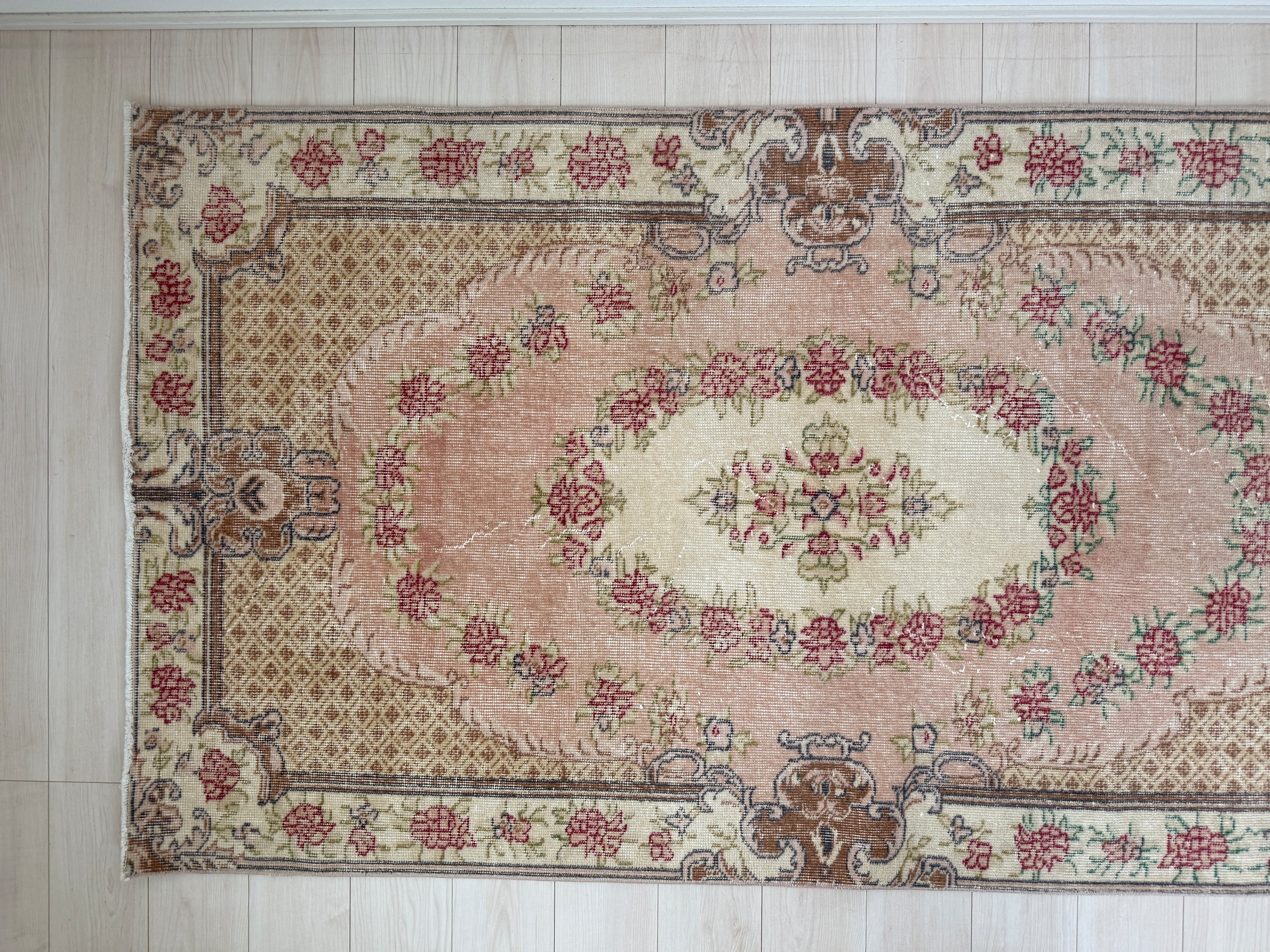 【112.7cm×208.5cm】70's vintage rug -"pink brown"-