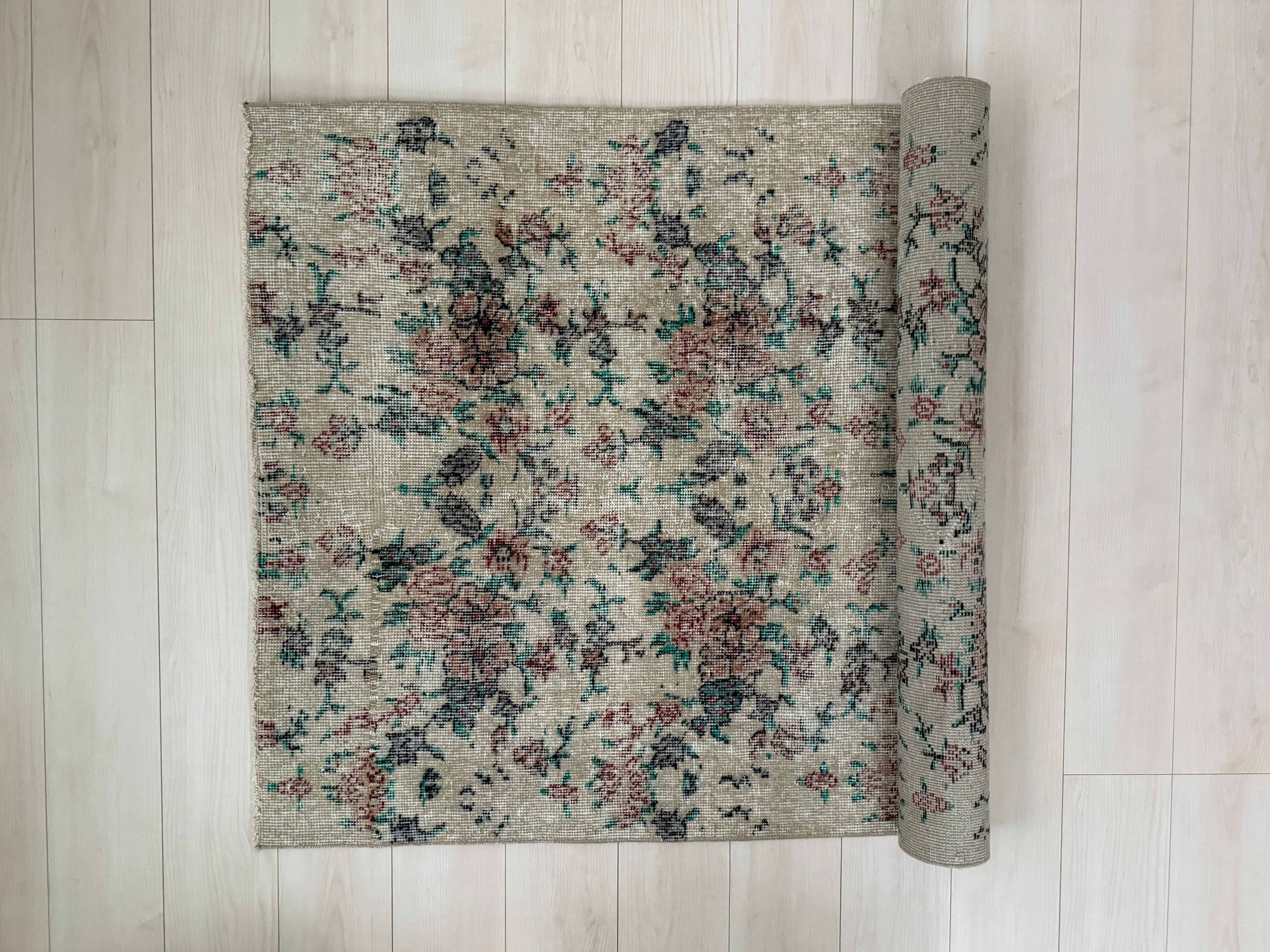【96cm×178.5cm】70's vintage rug -"bouquet"-