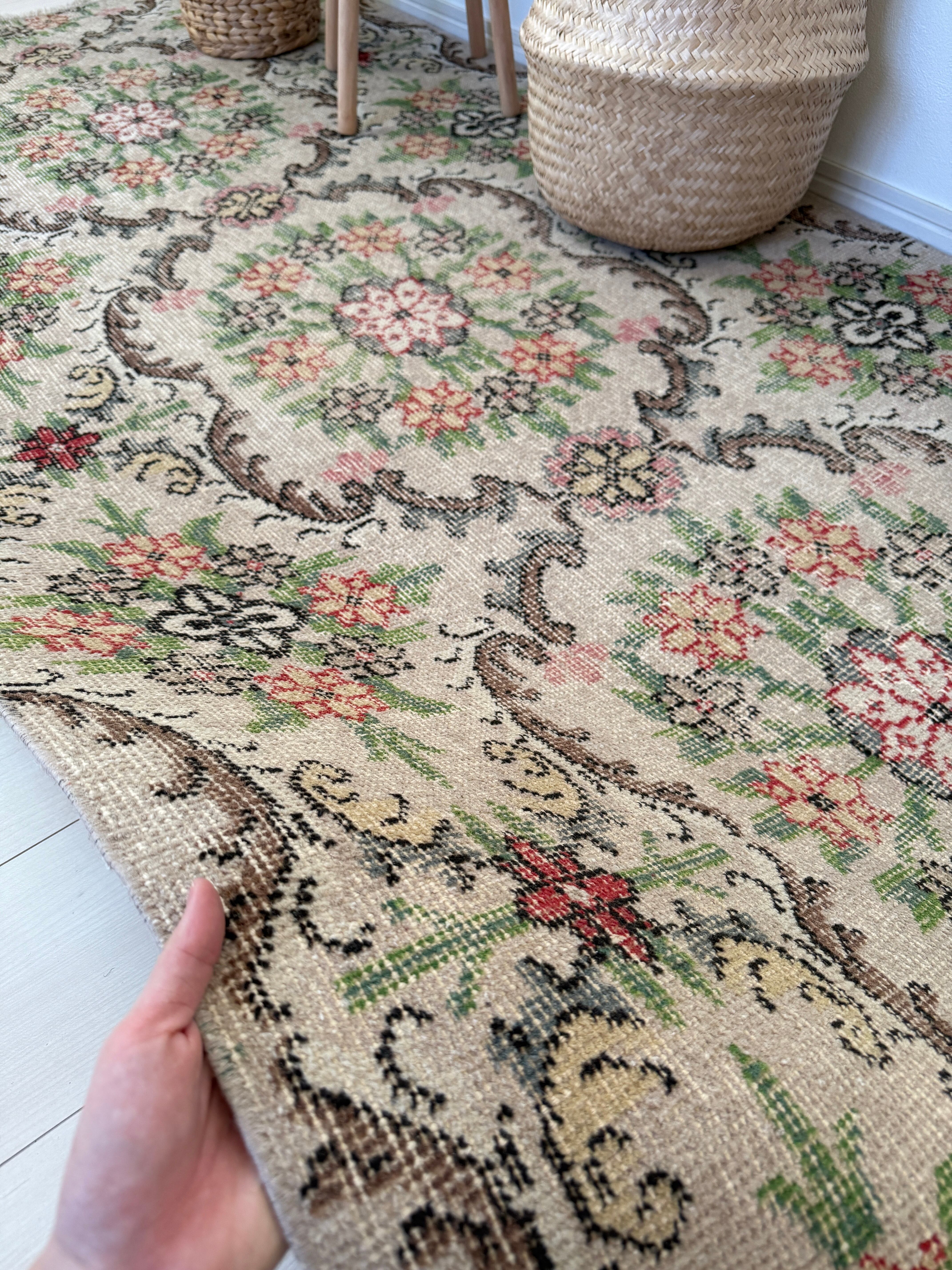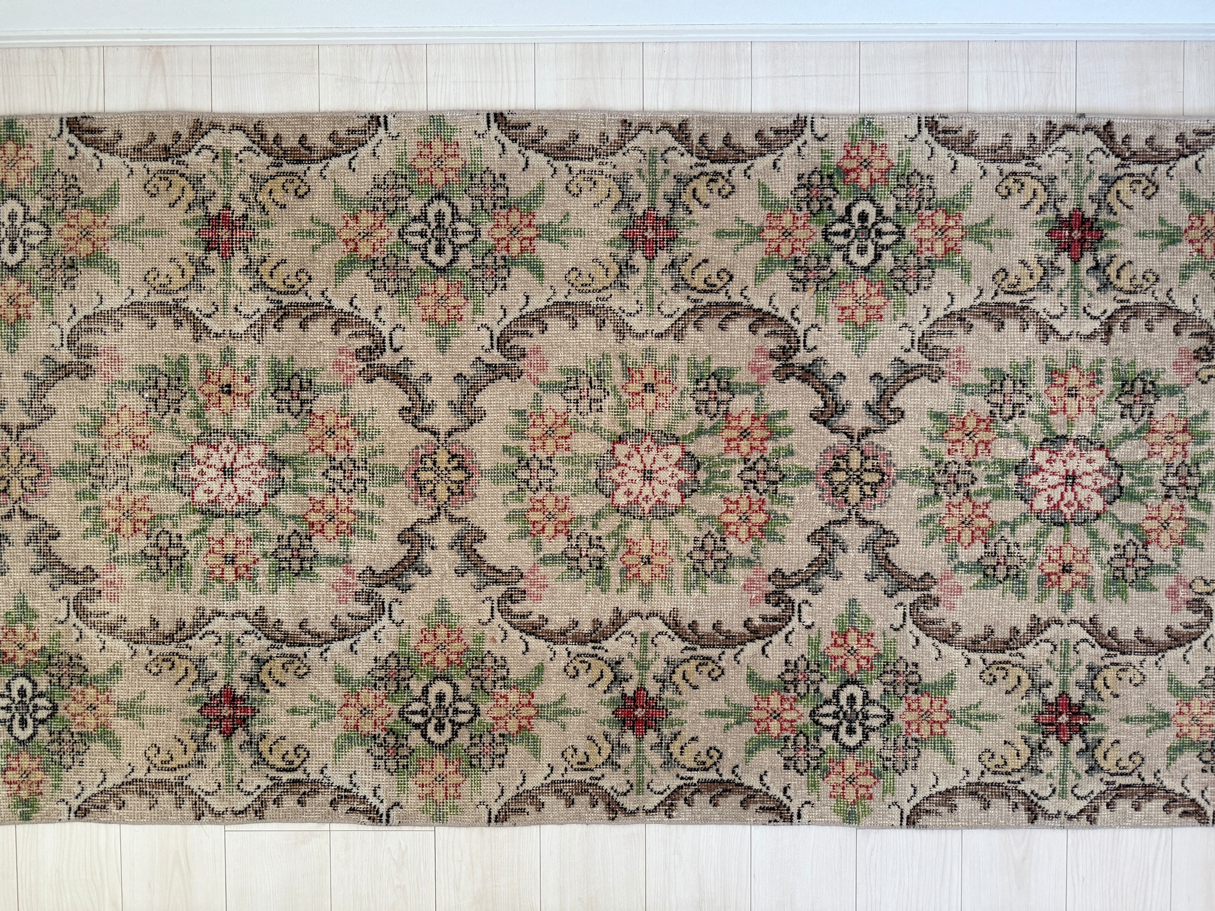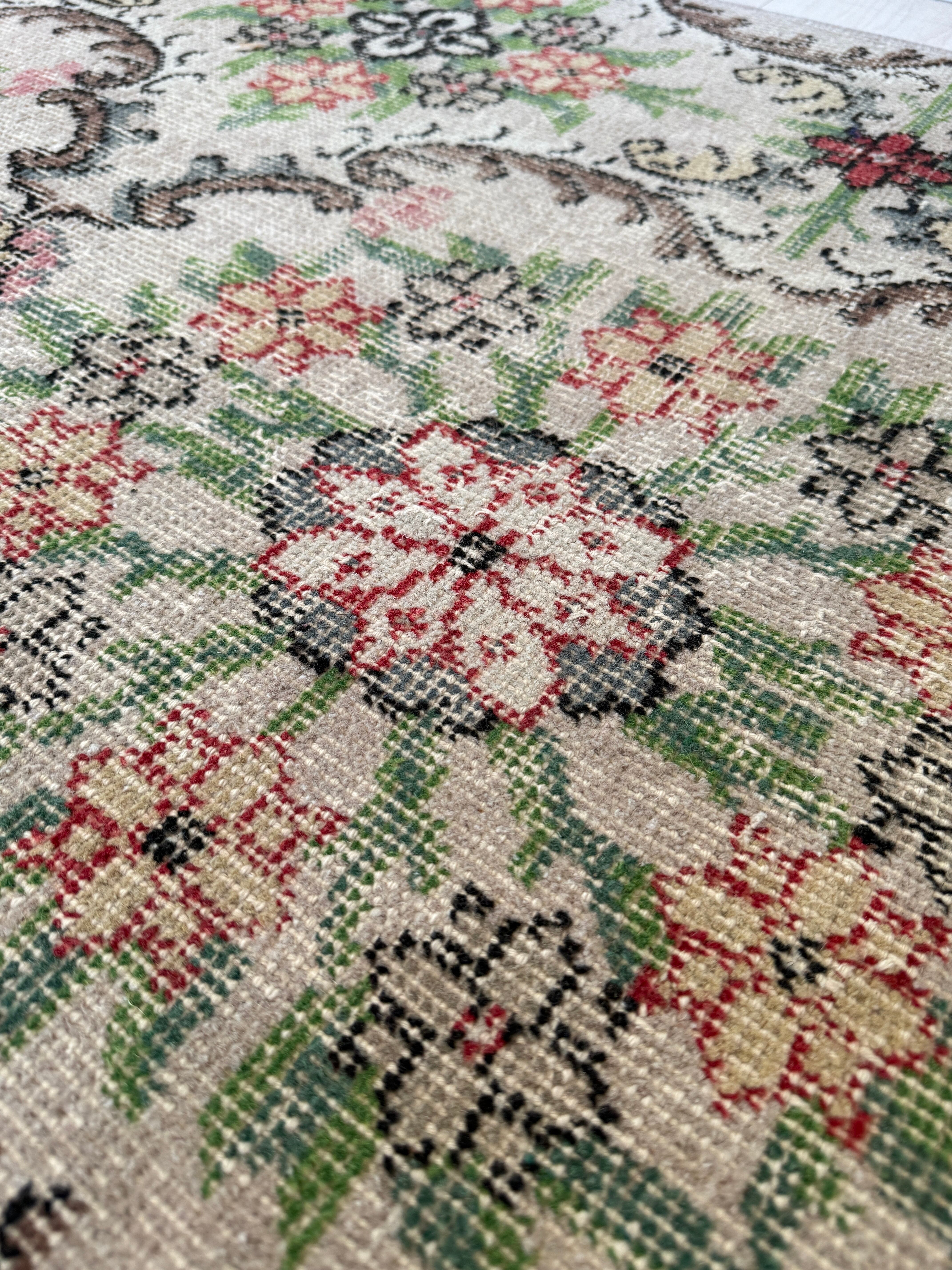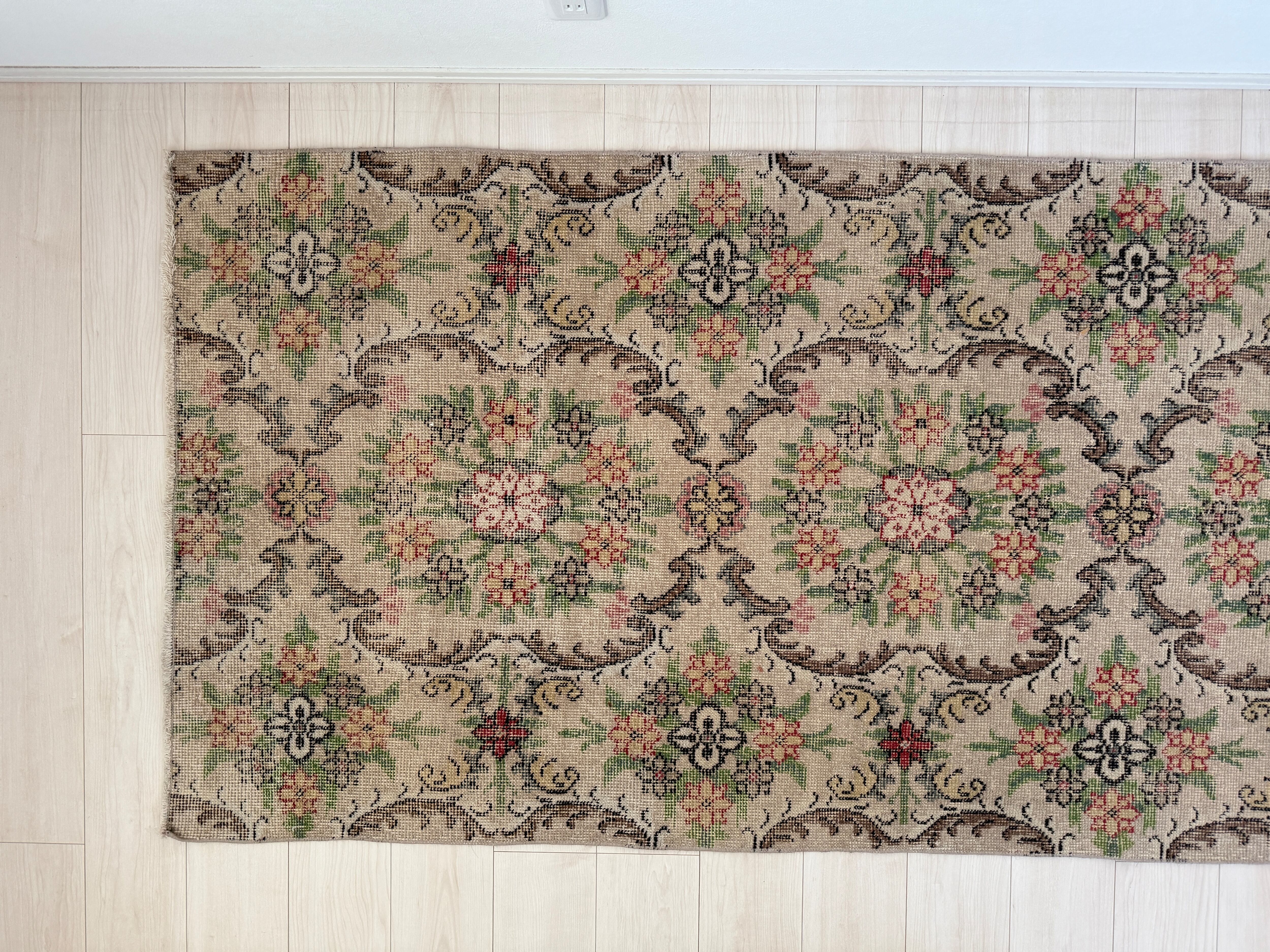 まるでブーケが並んだような華やかなヴィンテージラグ。