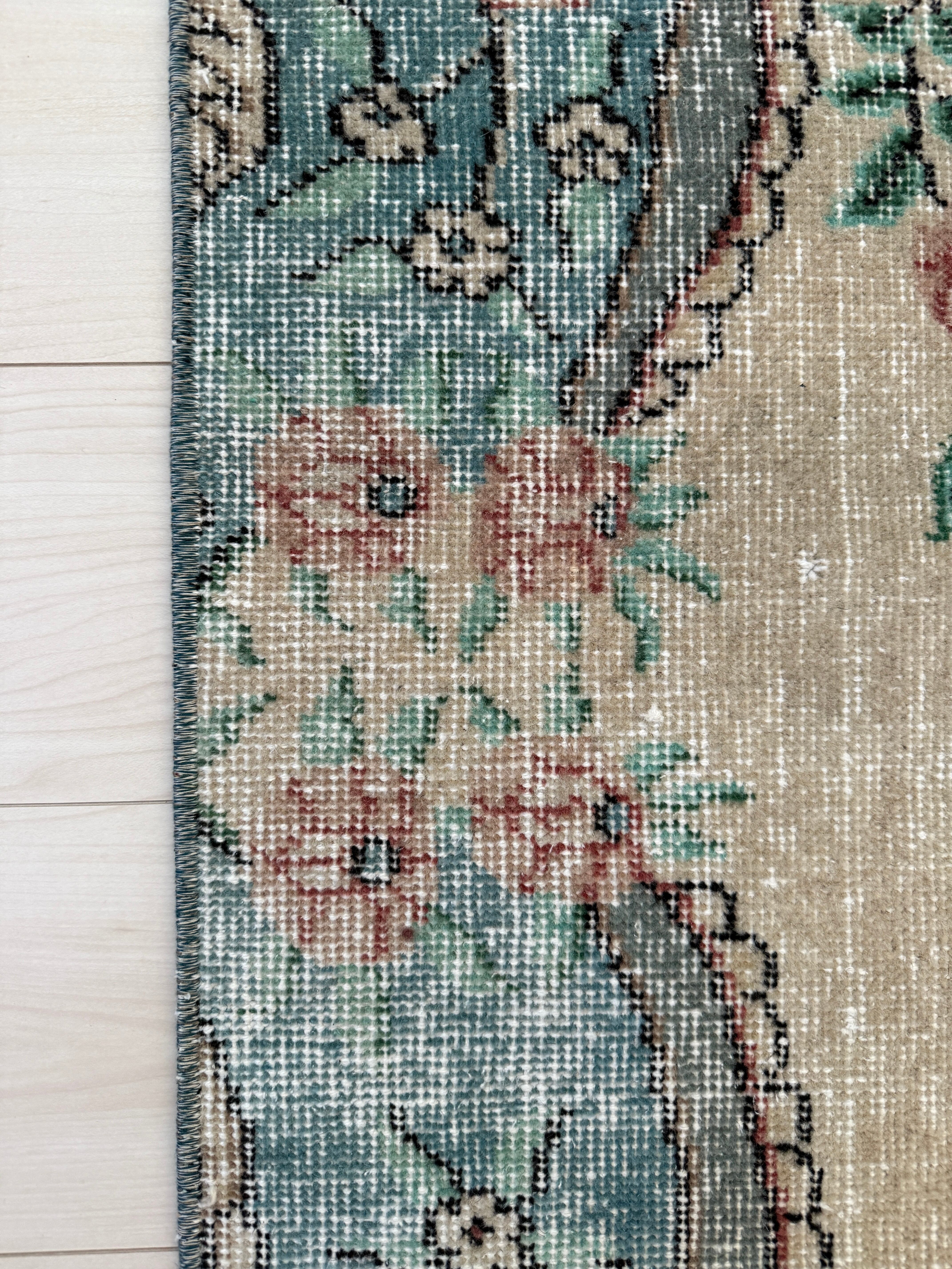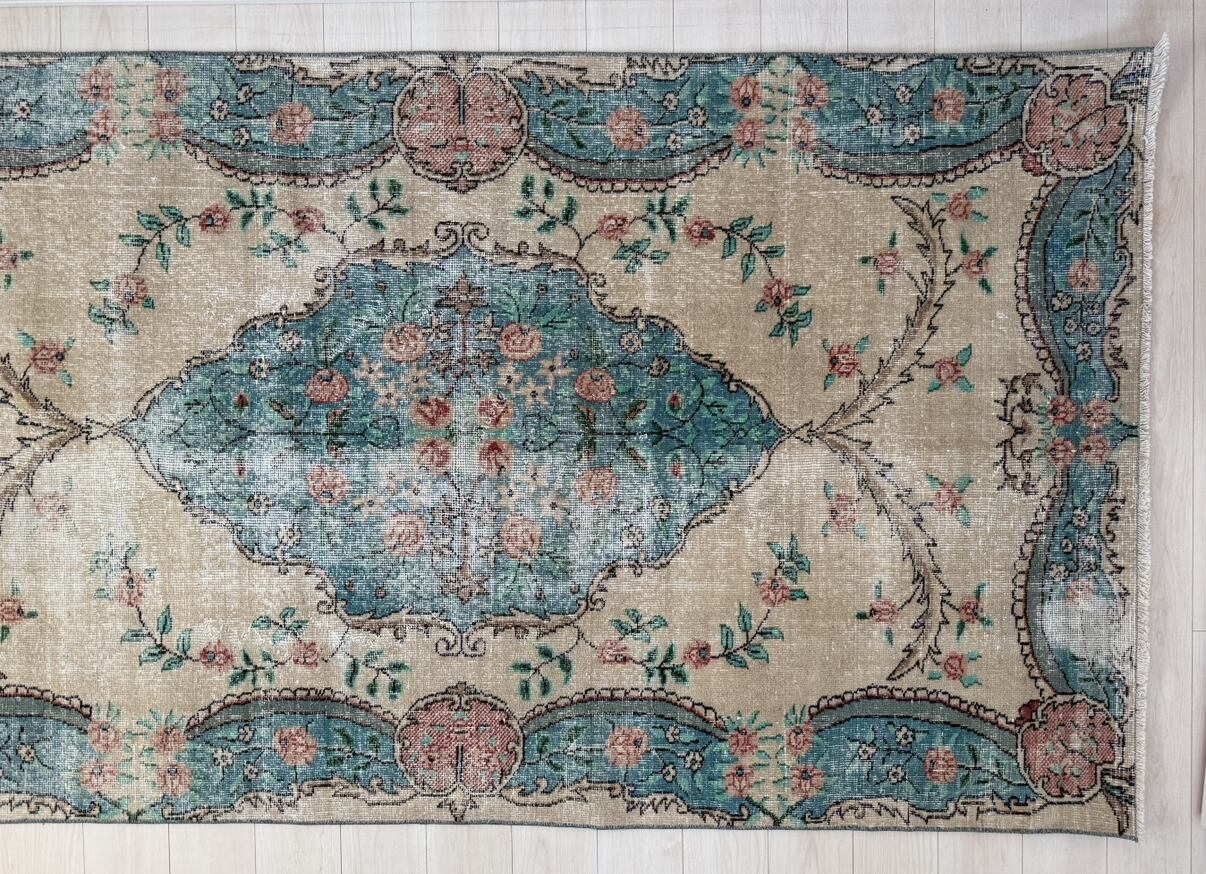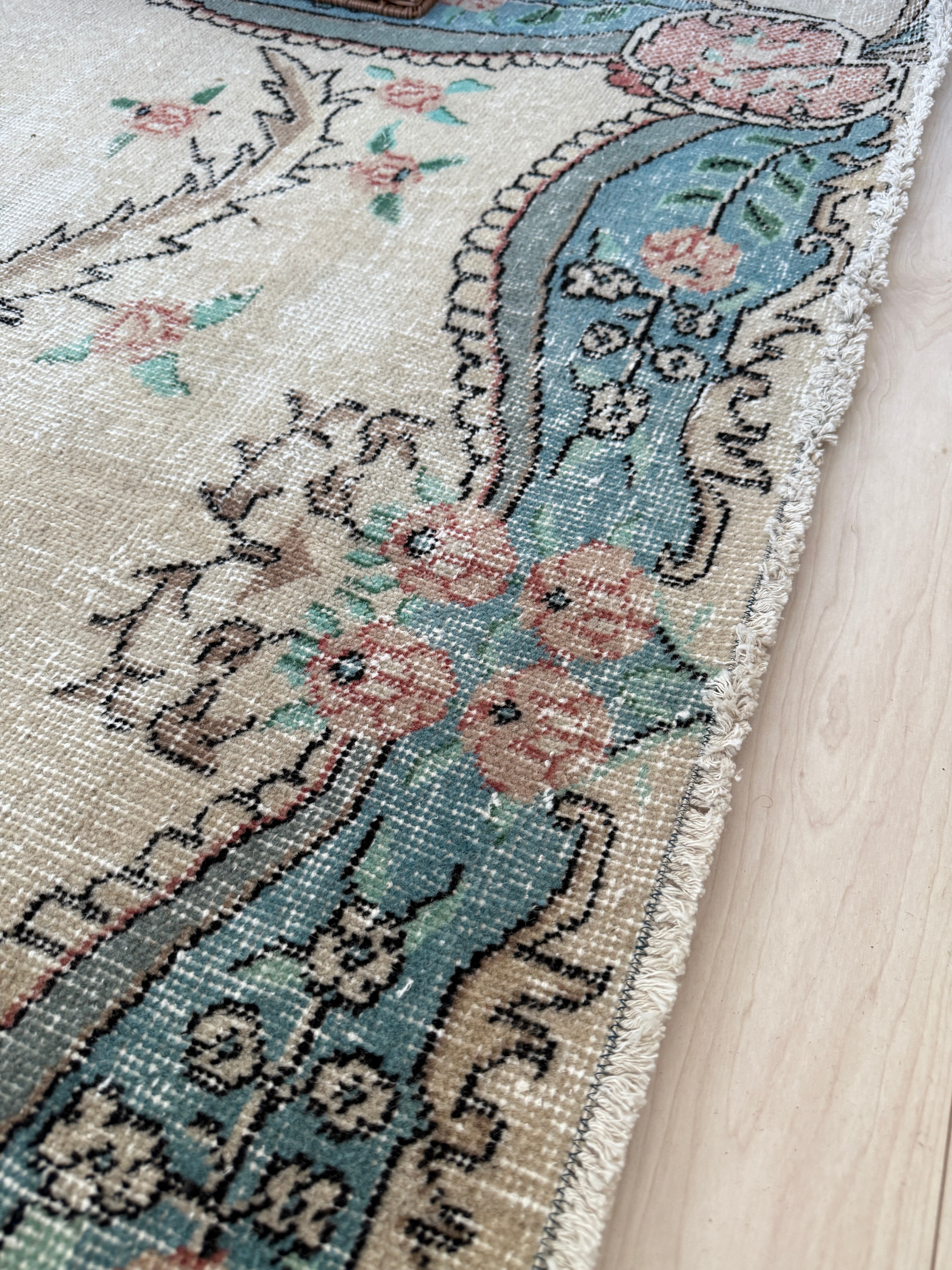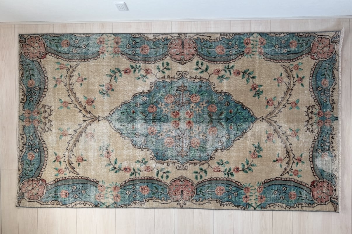 【約134.5cm×約248.5cm】70's vintage rug -"light blue pink"-
