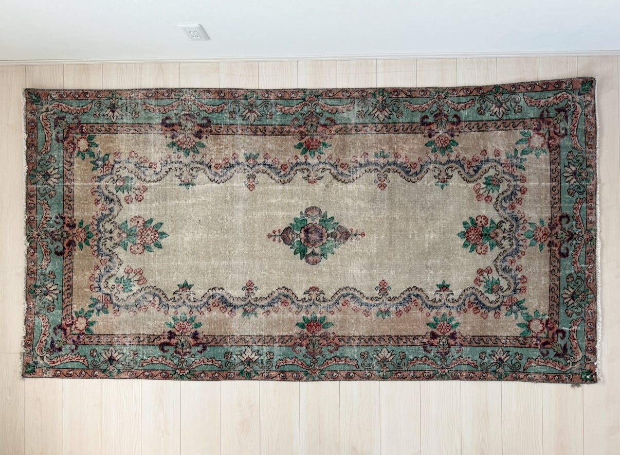 【約114.5cm×約219cm】70's vintage rug -"vintage bloom"-