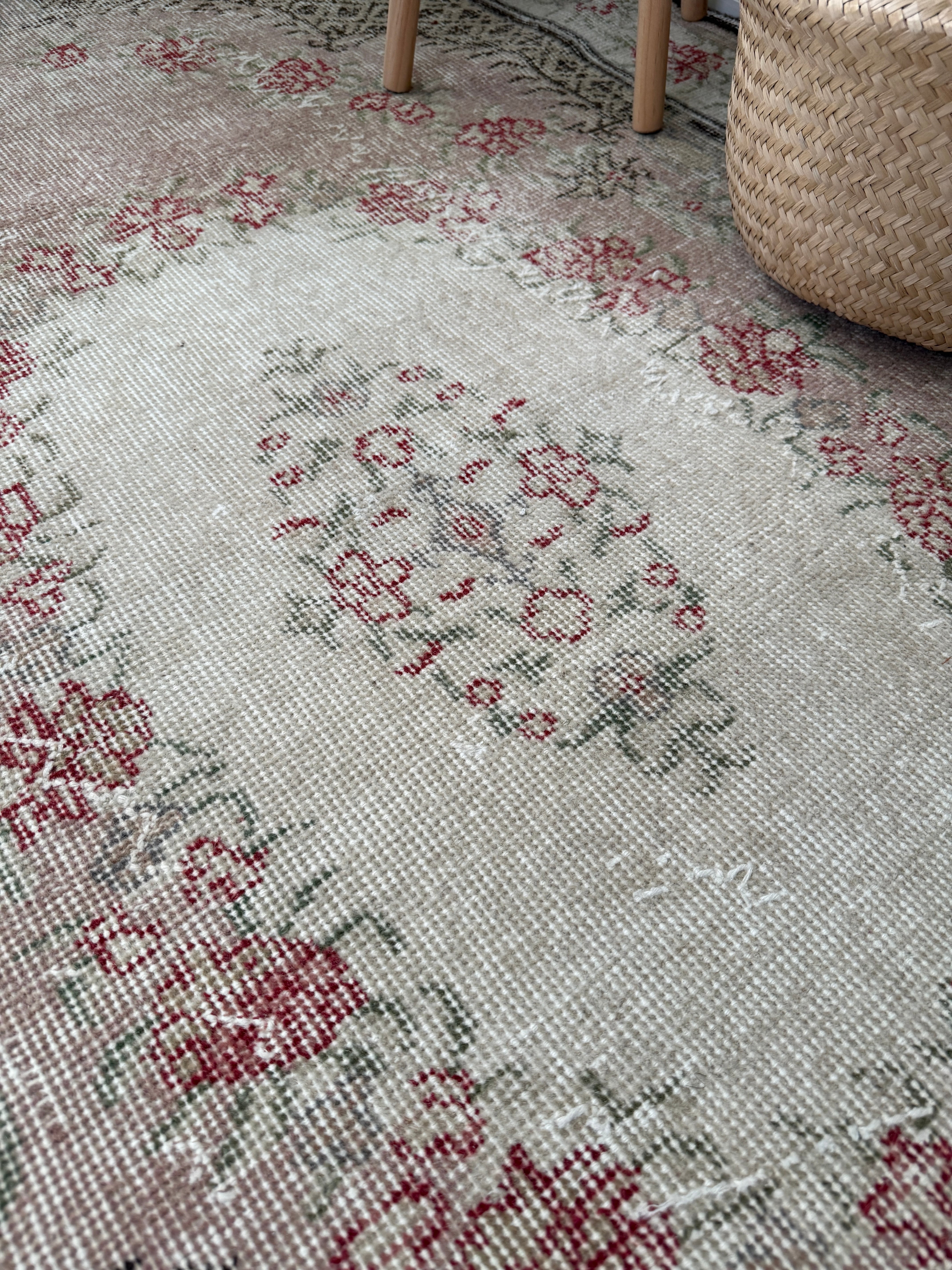 可愛くも品のあるデザインが、空間を彩ってくれるヴィンテージラグです。
