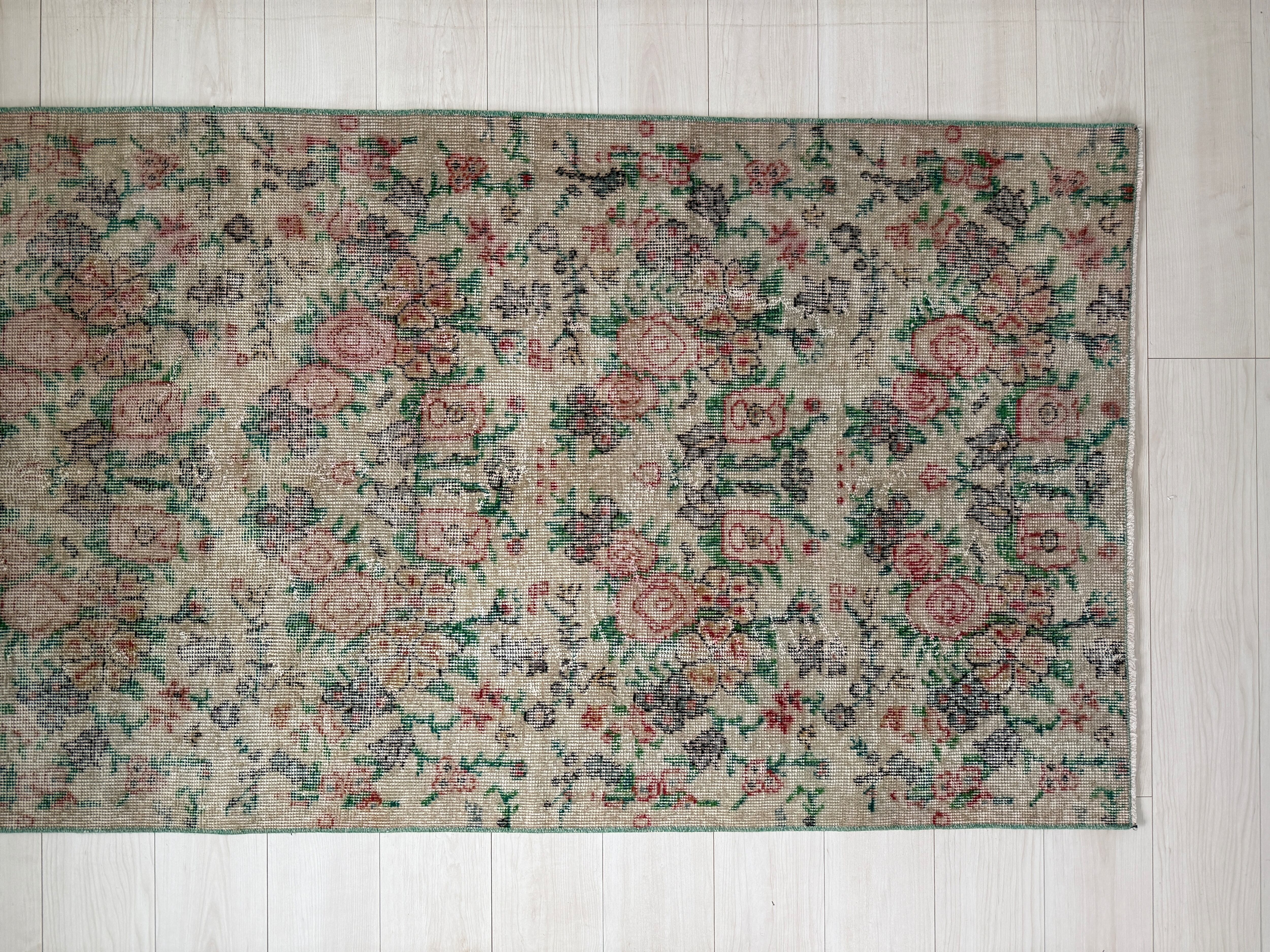 【約97cm×約185cm】70's vintage rug -"bouquet floral"-