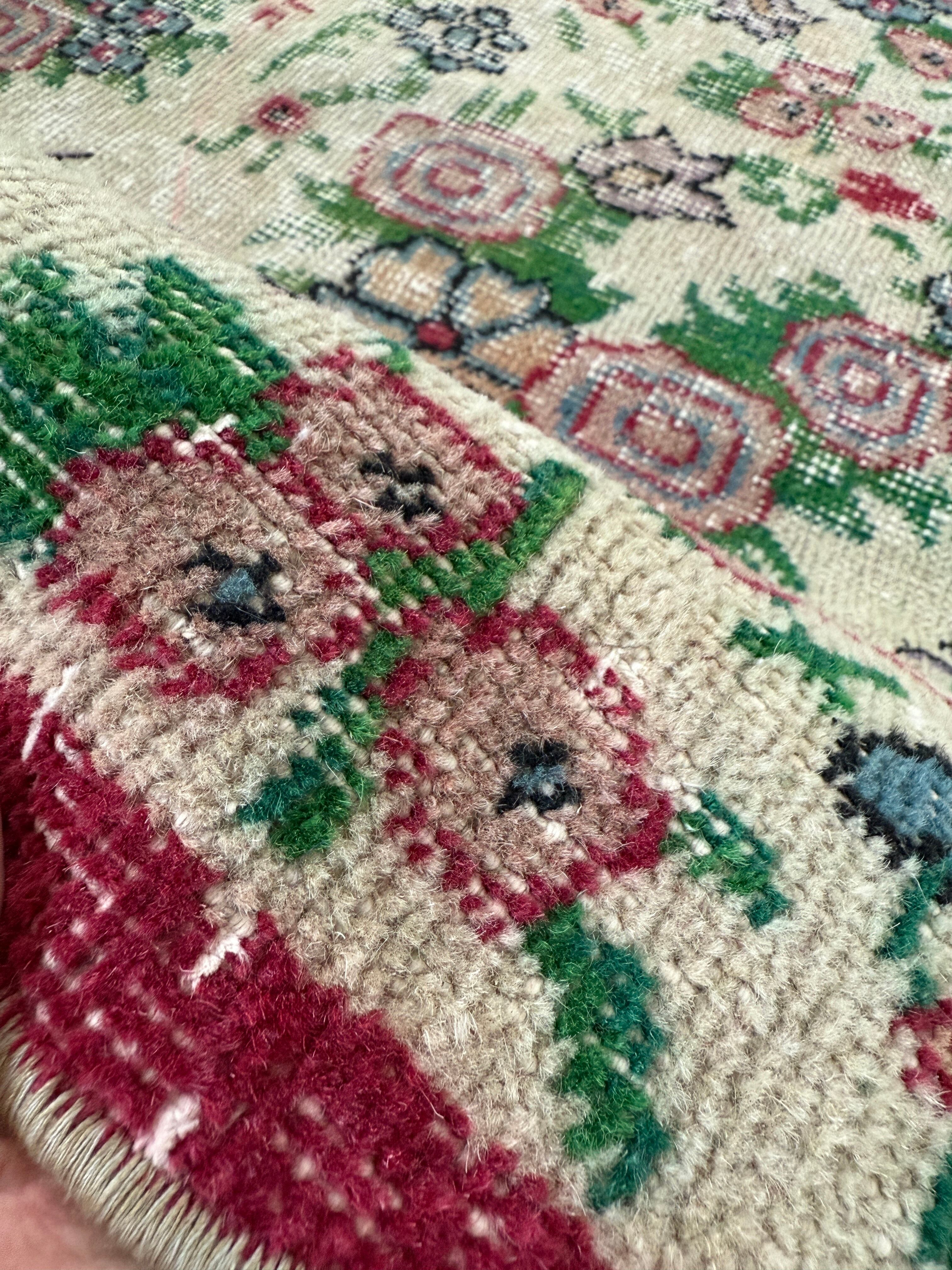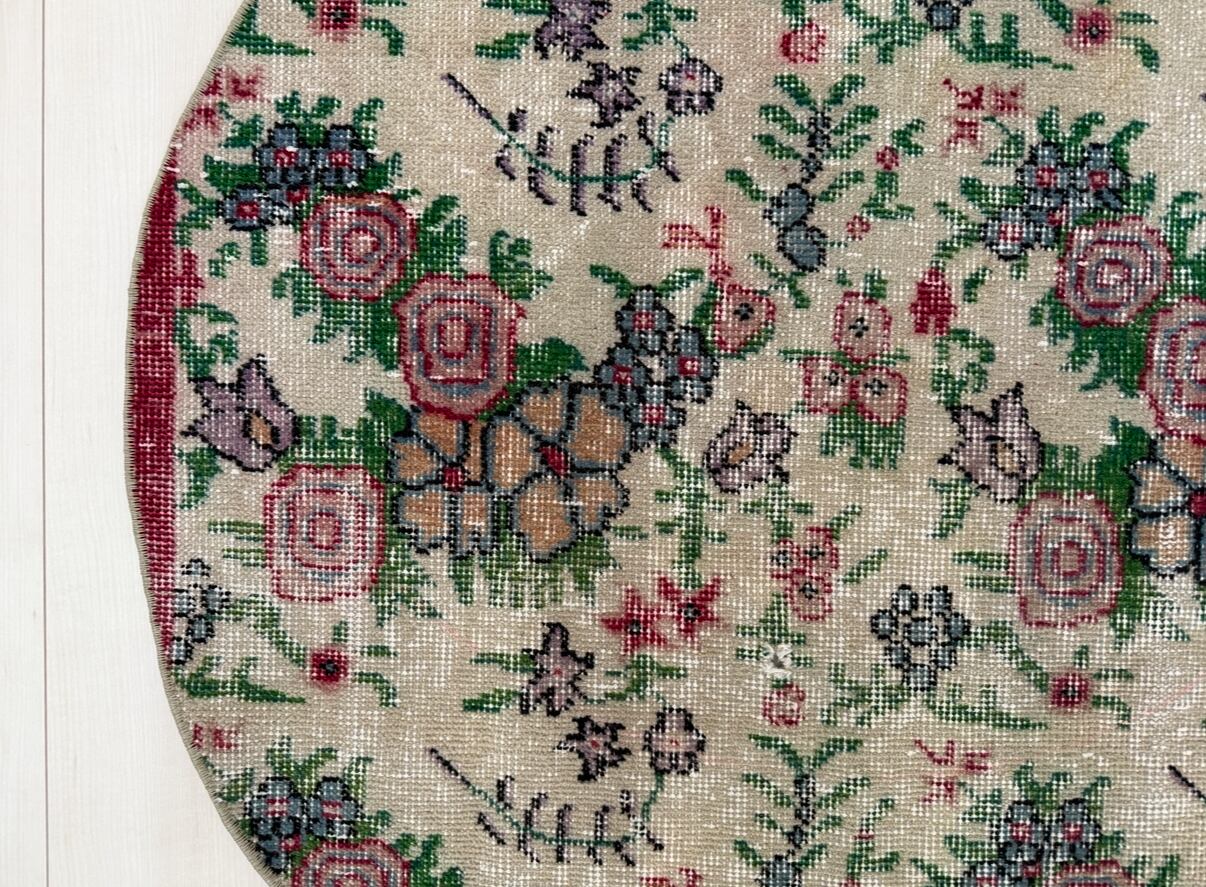 明るい色合わせでブーケのように華やかなヴィンテージラグ。