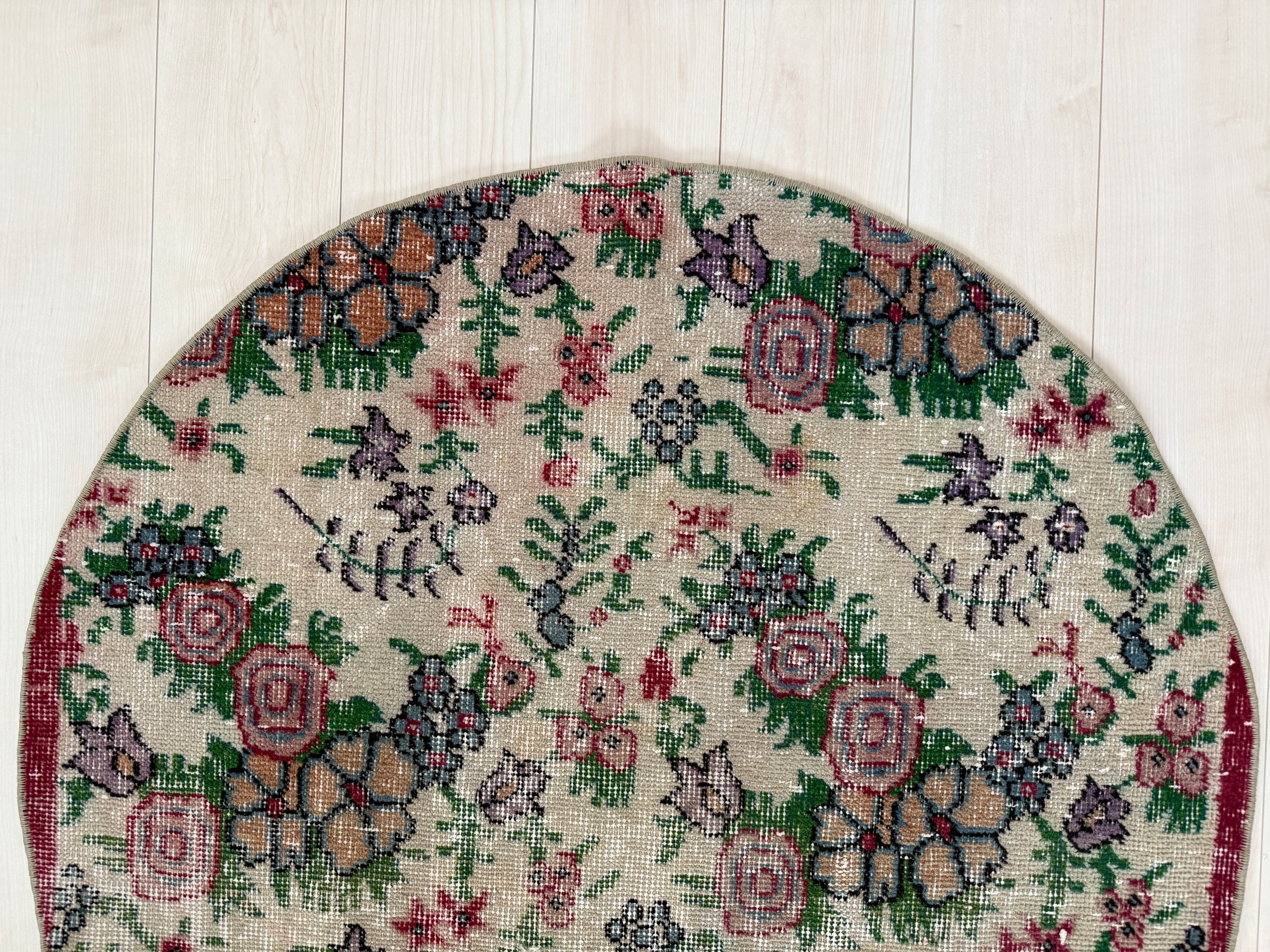 【約99.3cm×約99.5cm】70's vintage mini rug -"manmaru bouquet"-