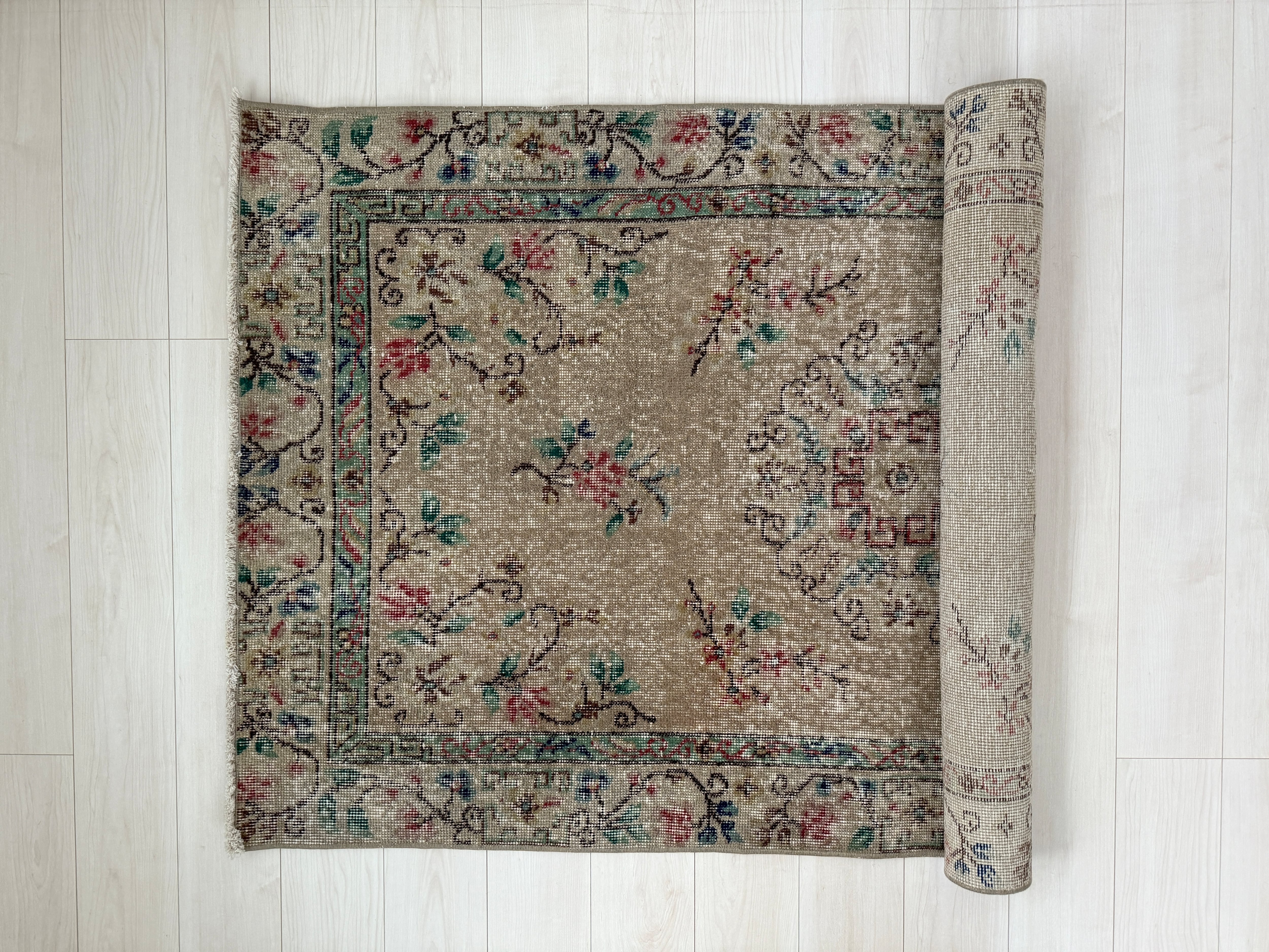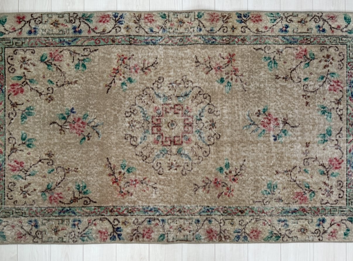 【約107cm×約194.5cm】70's vintage rug -"Beige Blossom"-