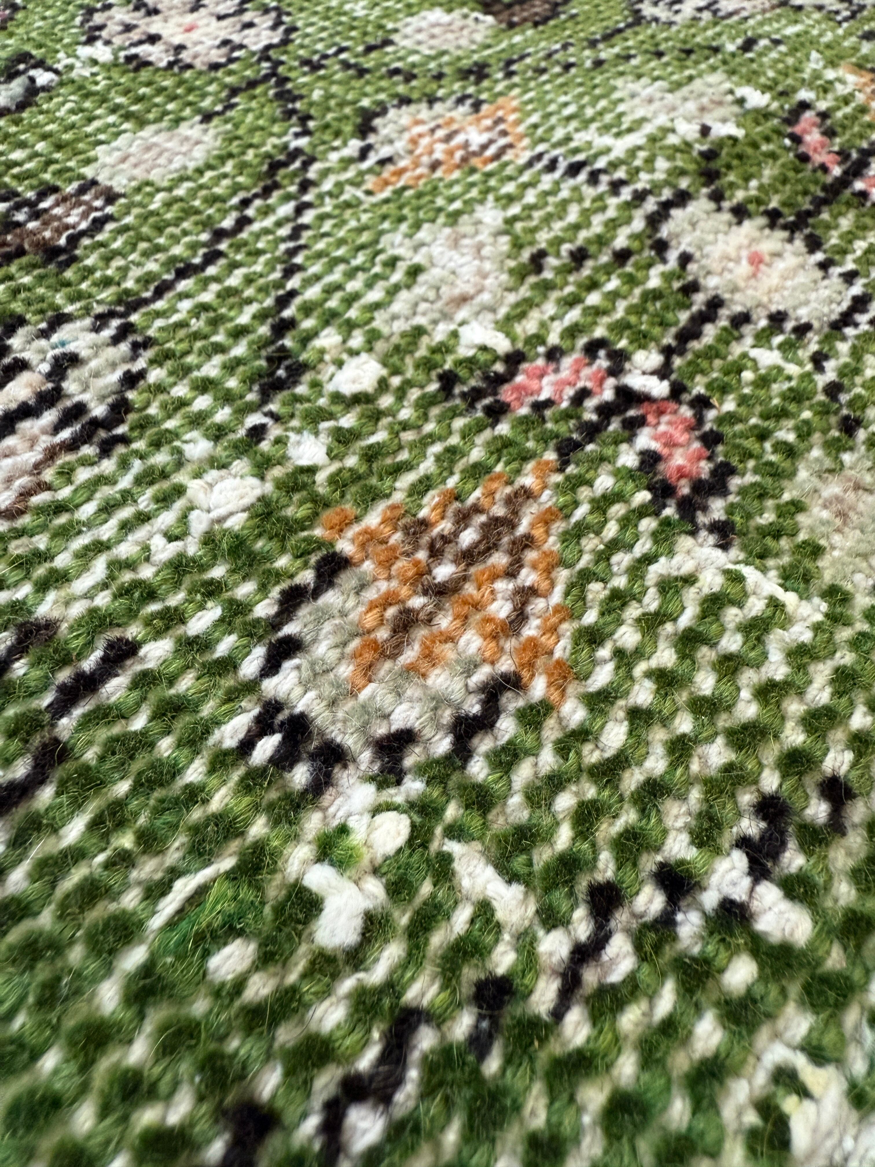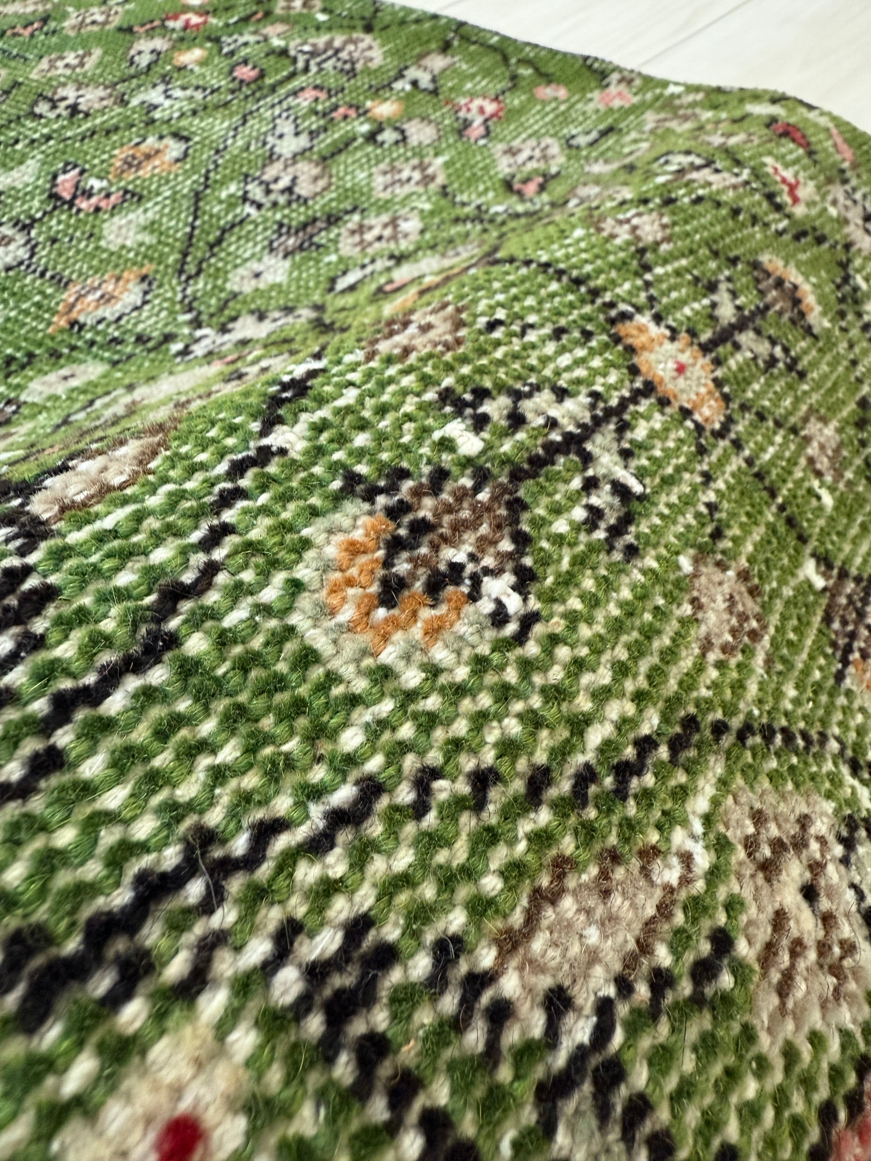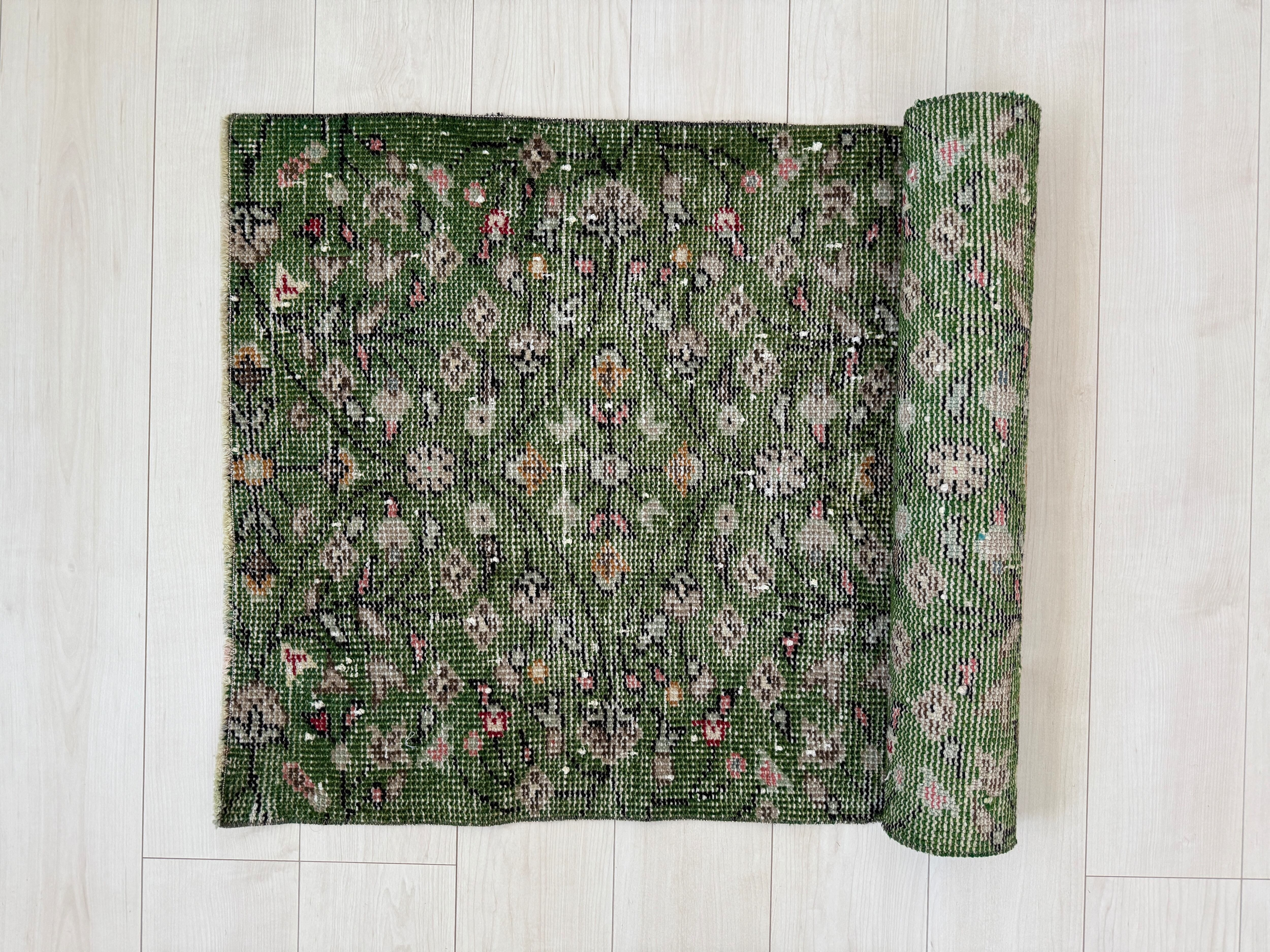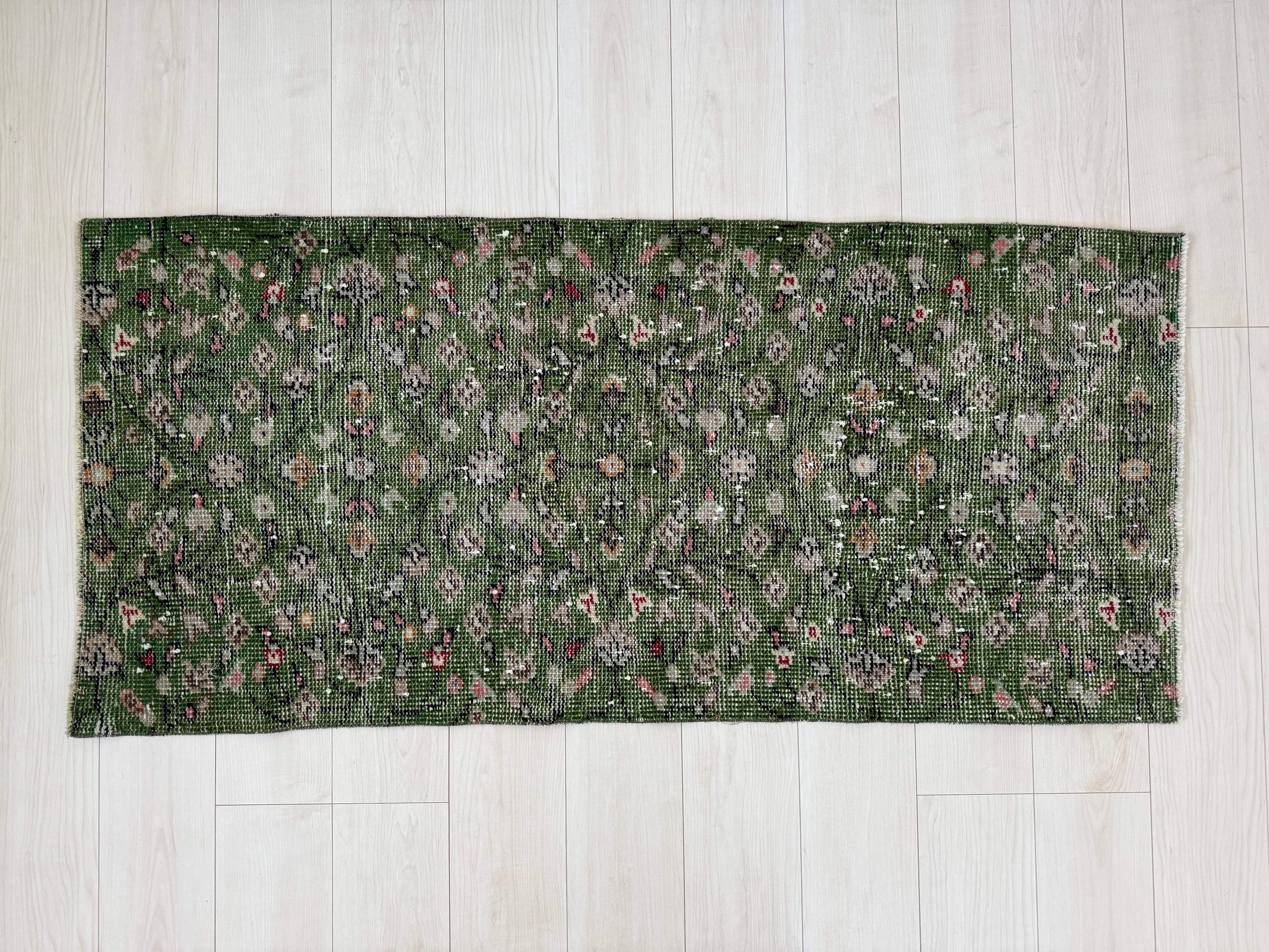 【約67.8cm×約147cm】70's vintage mini rug -"green floral"-