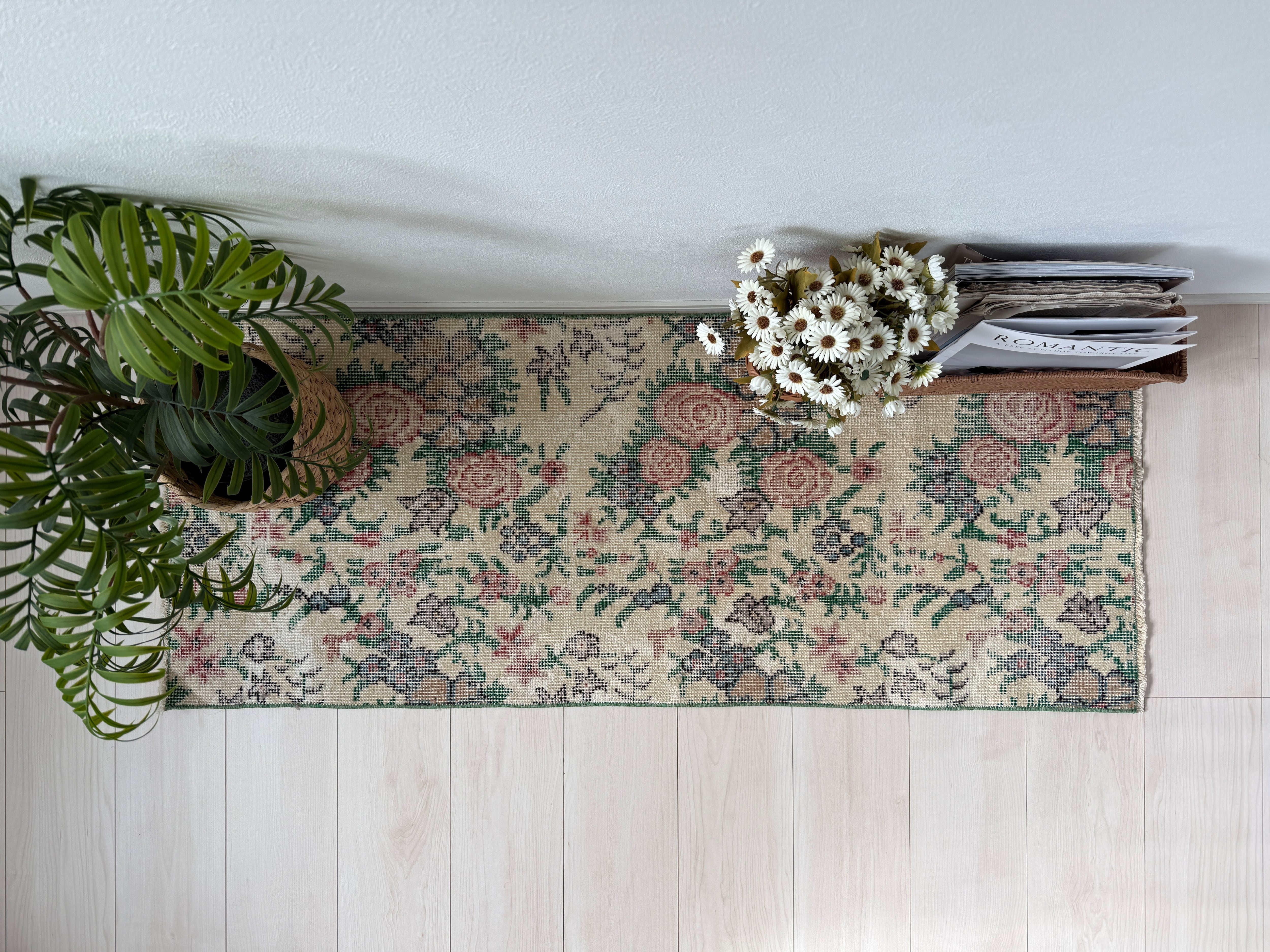 【約53cm×約130cm】70's vintage mini rug -"mini bouquet"-