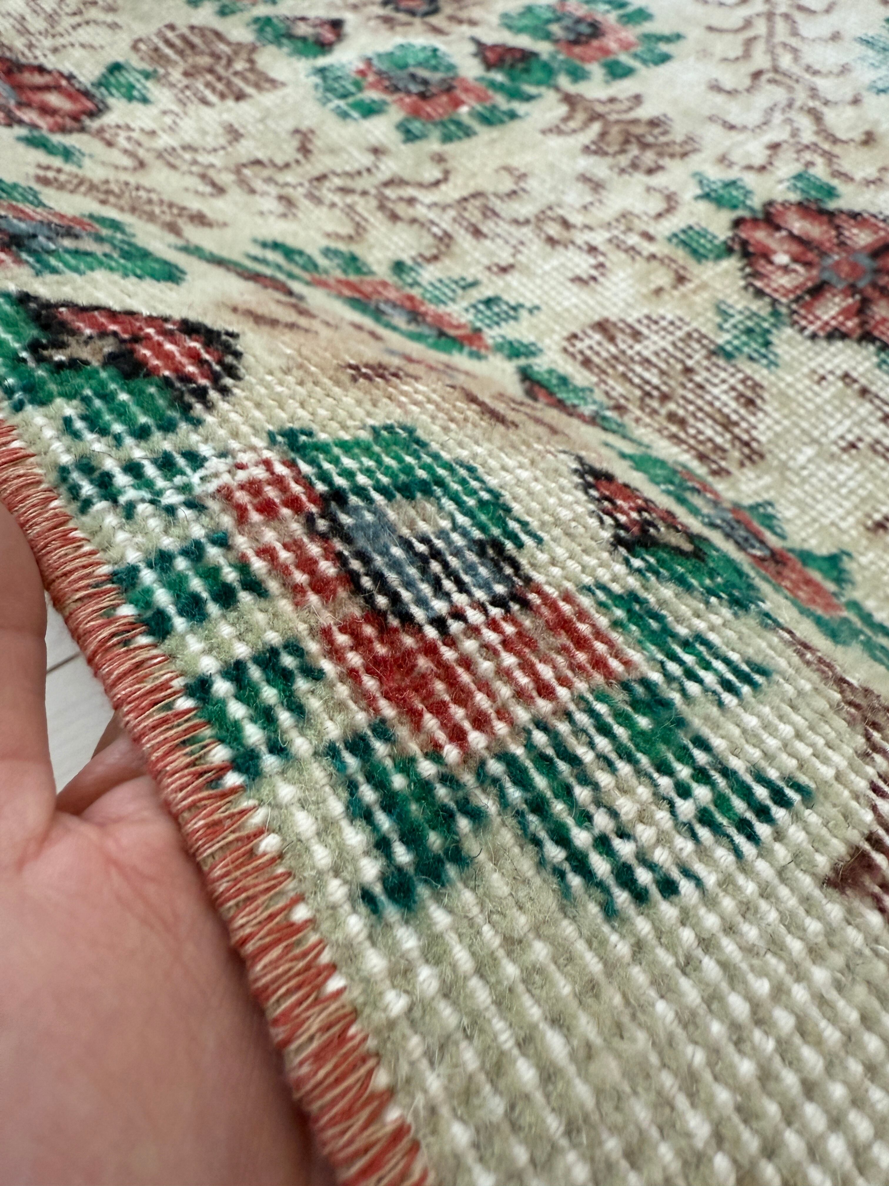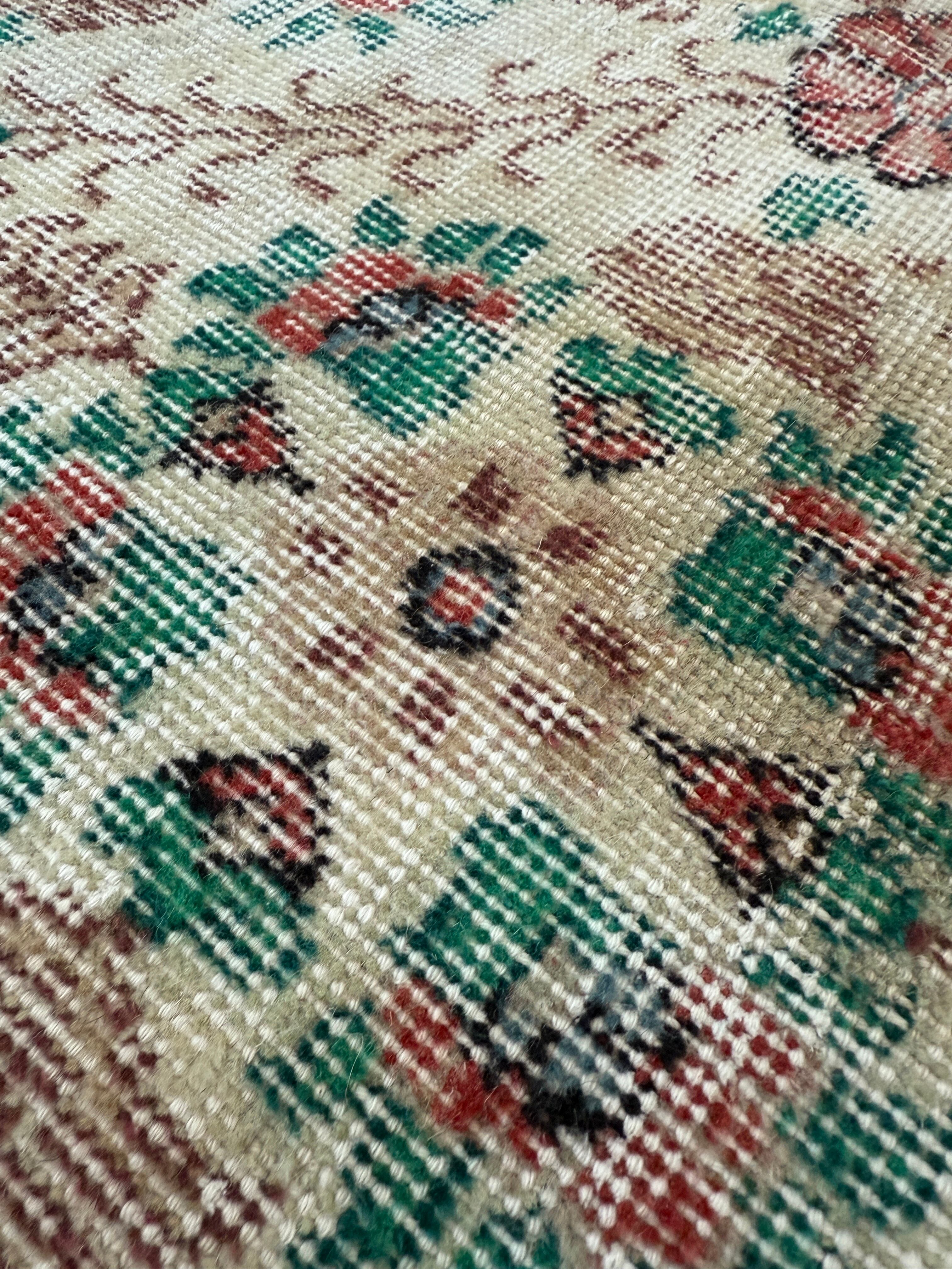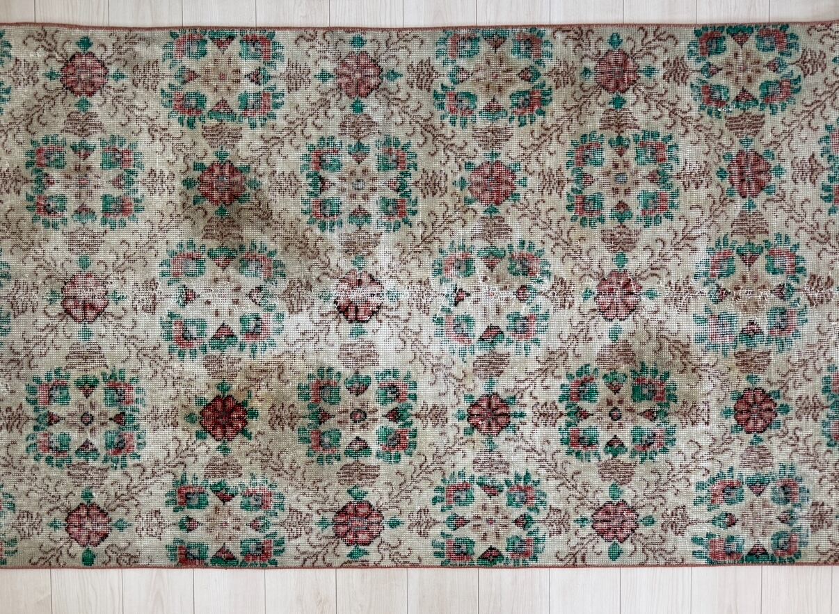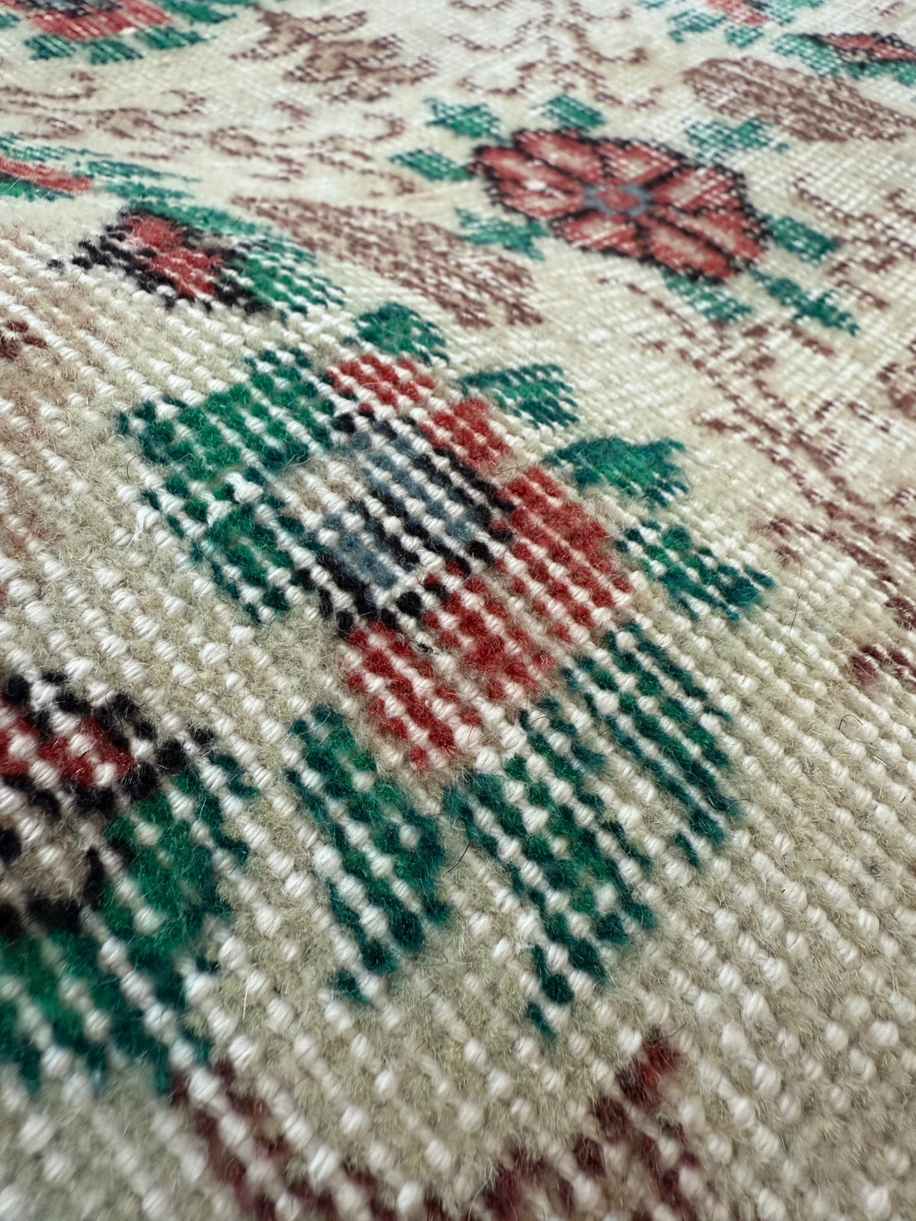 華やかなお花たちが綺麗に残ったヴィンテージラグ。