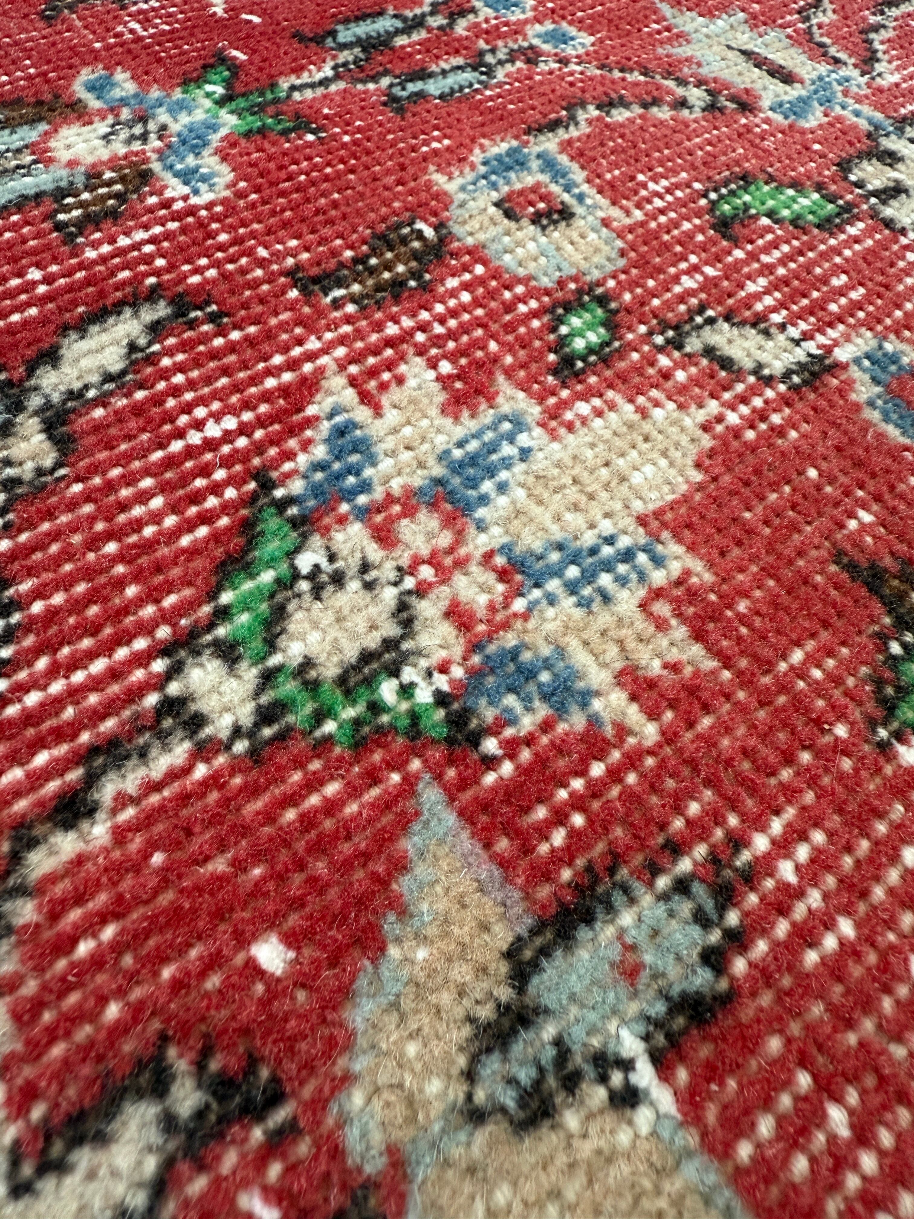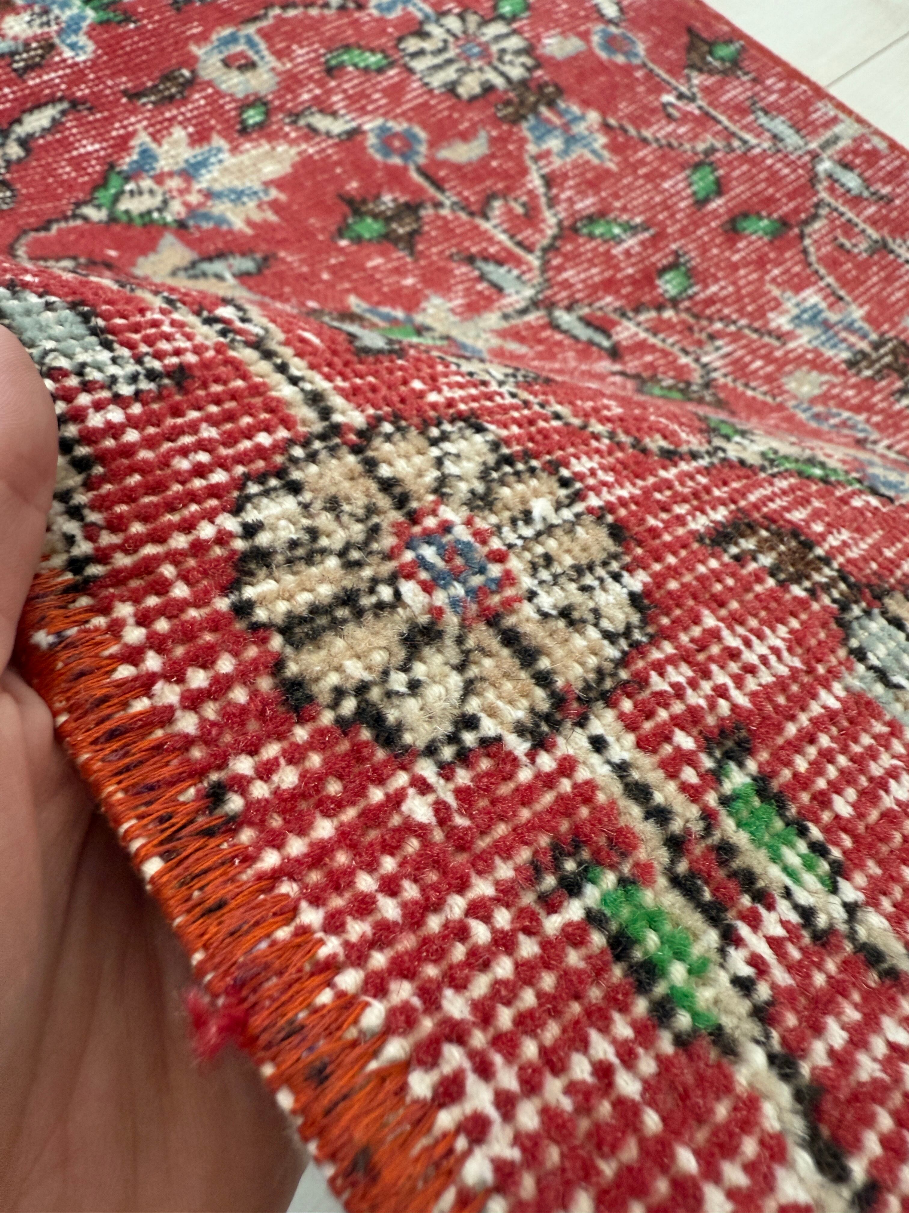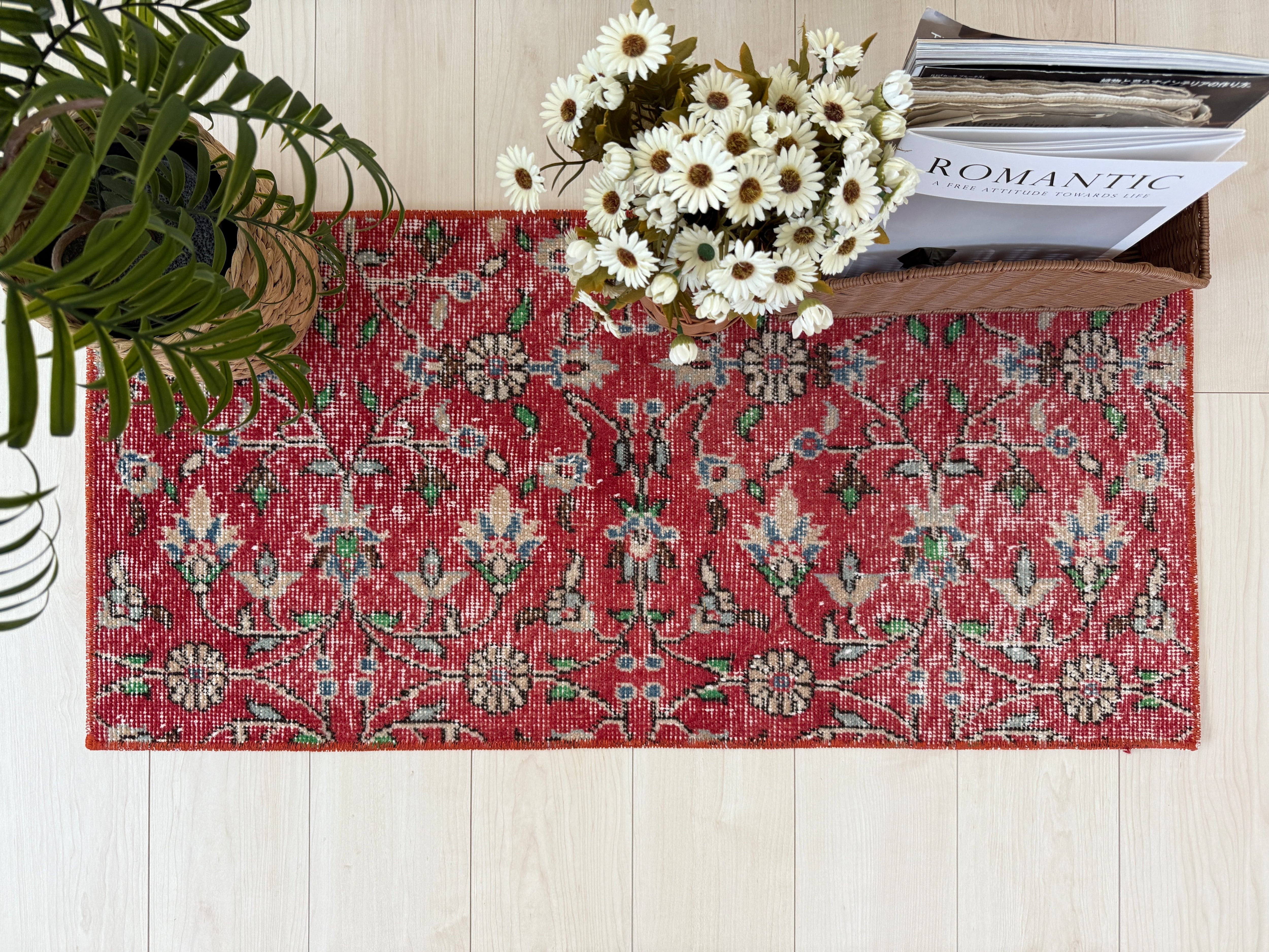 【約50.5cm×約104cm】70's vintage mini rug -"red floral"-