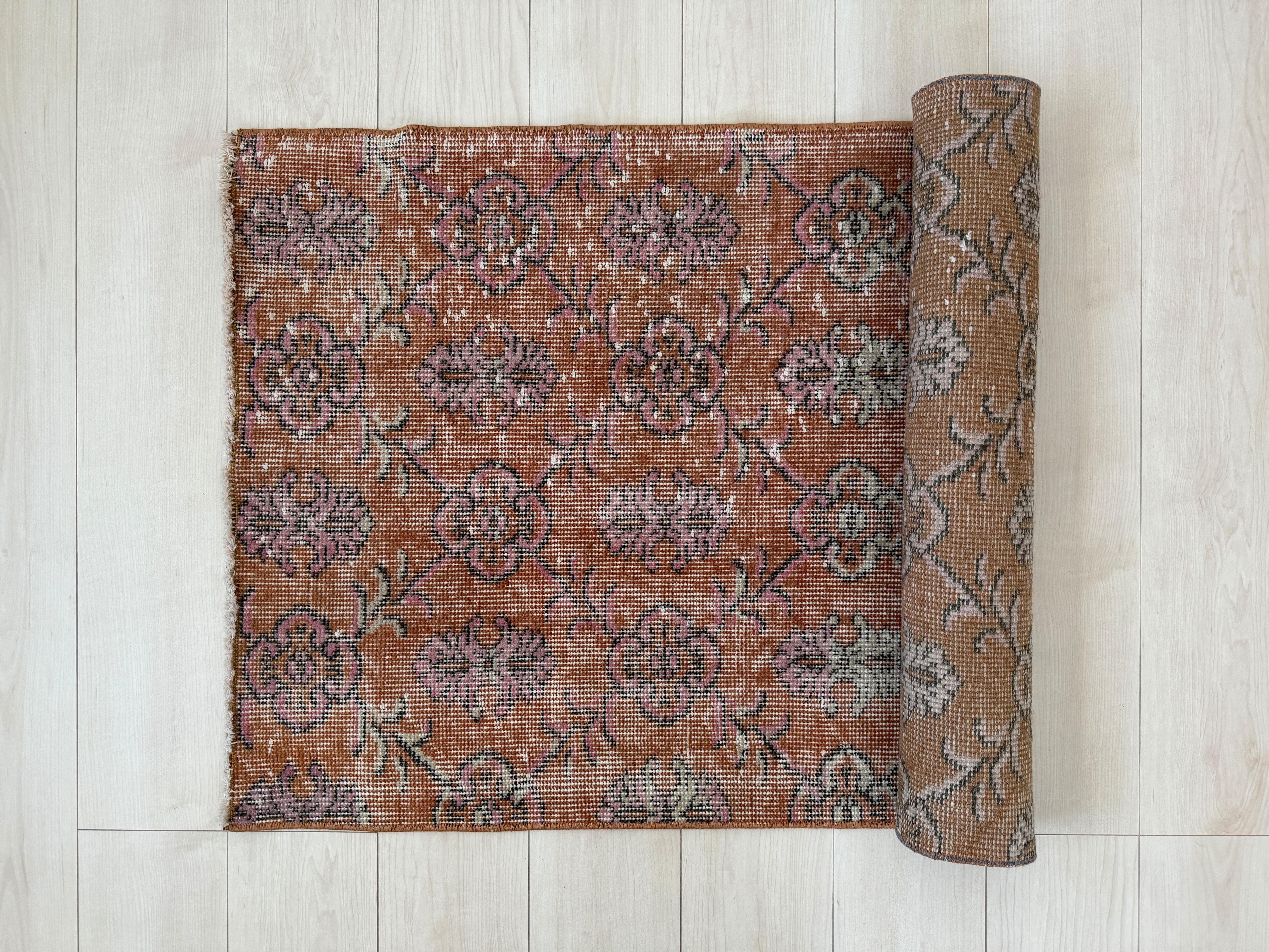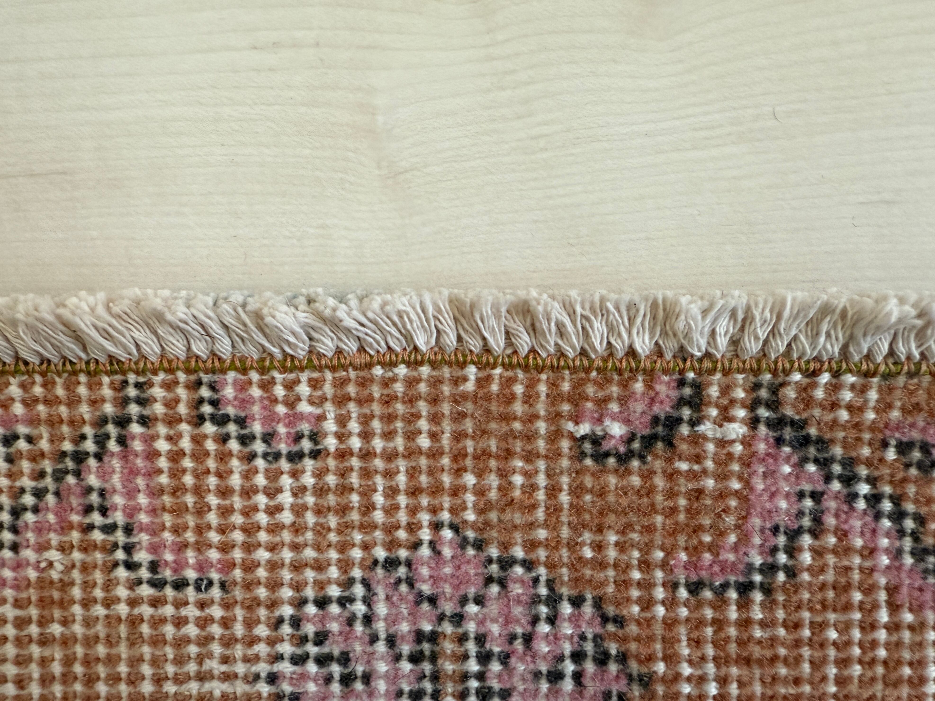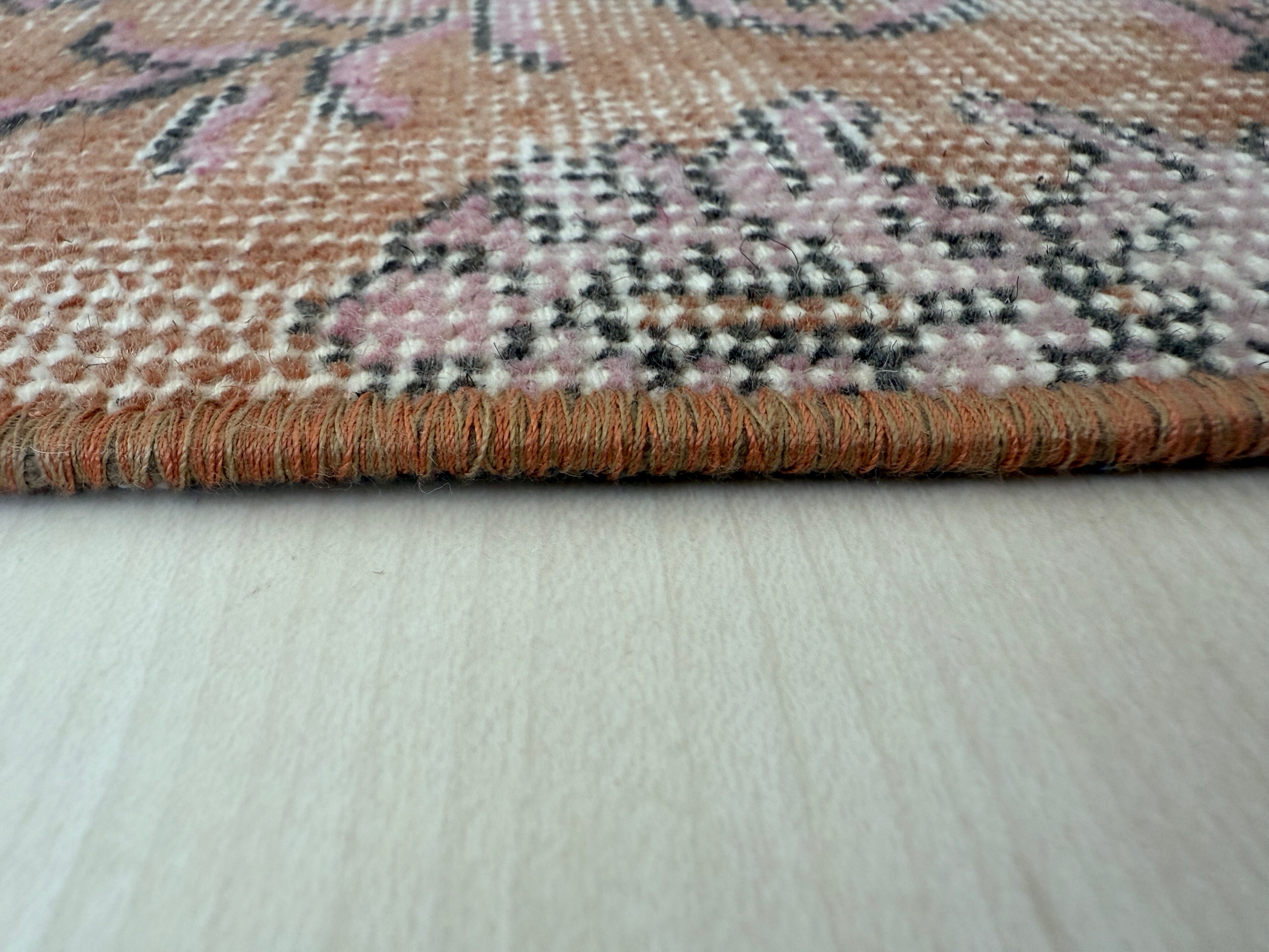【約69.5cm×約146.5cm】70's vintage mini rug "orange pink"