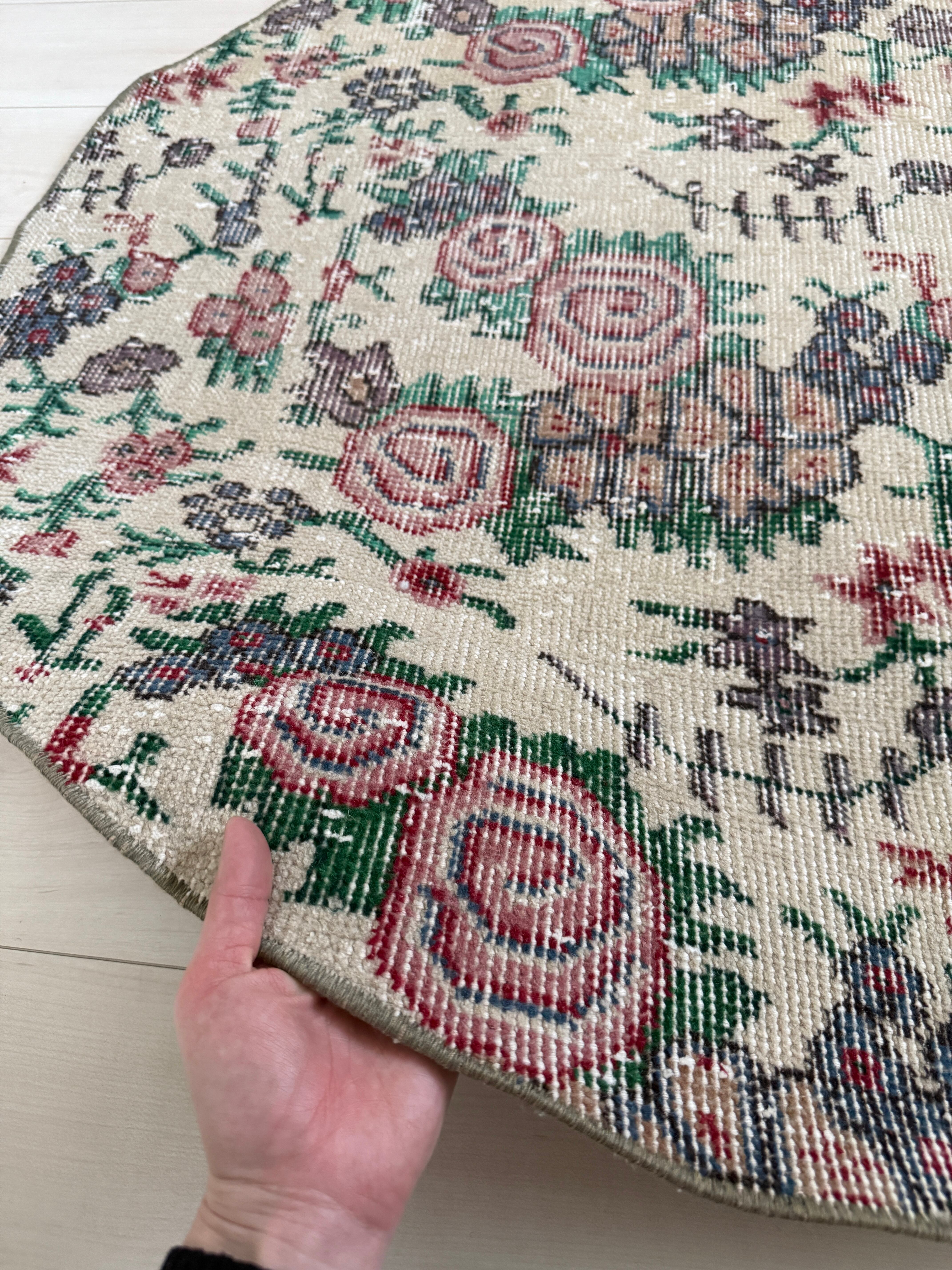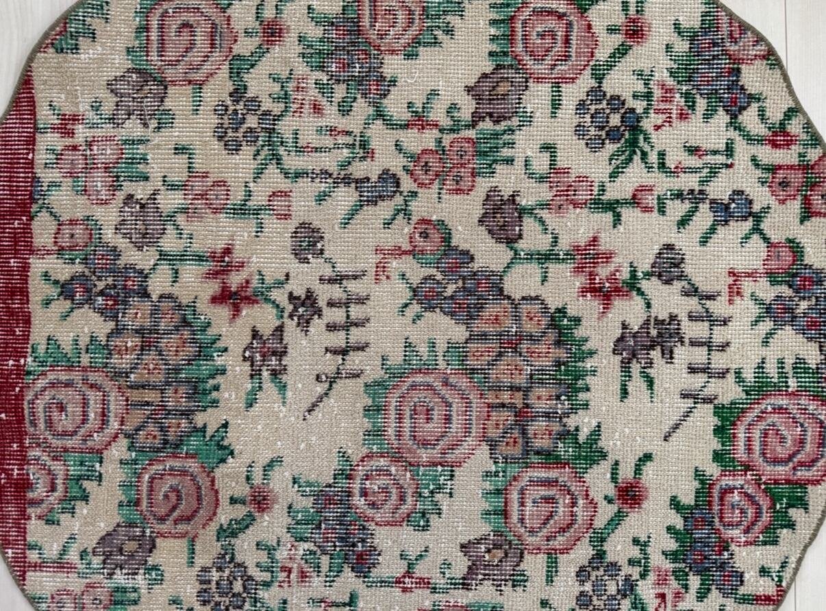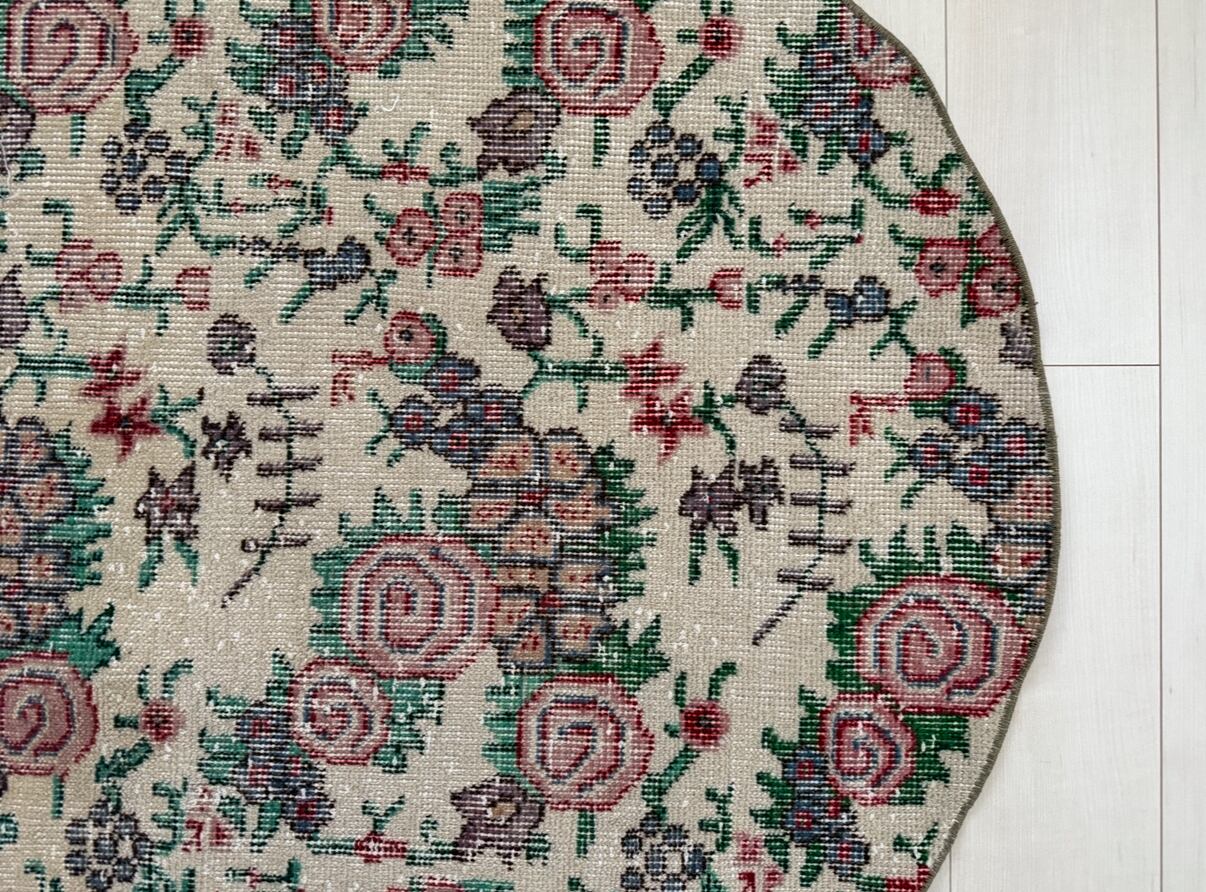【約98.5cm×約98.5cm】70's vintage mini rug -"manmaru bouquet"-