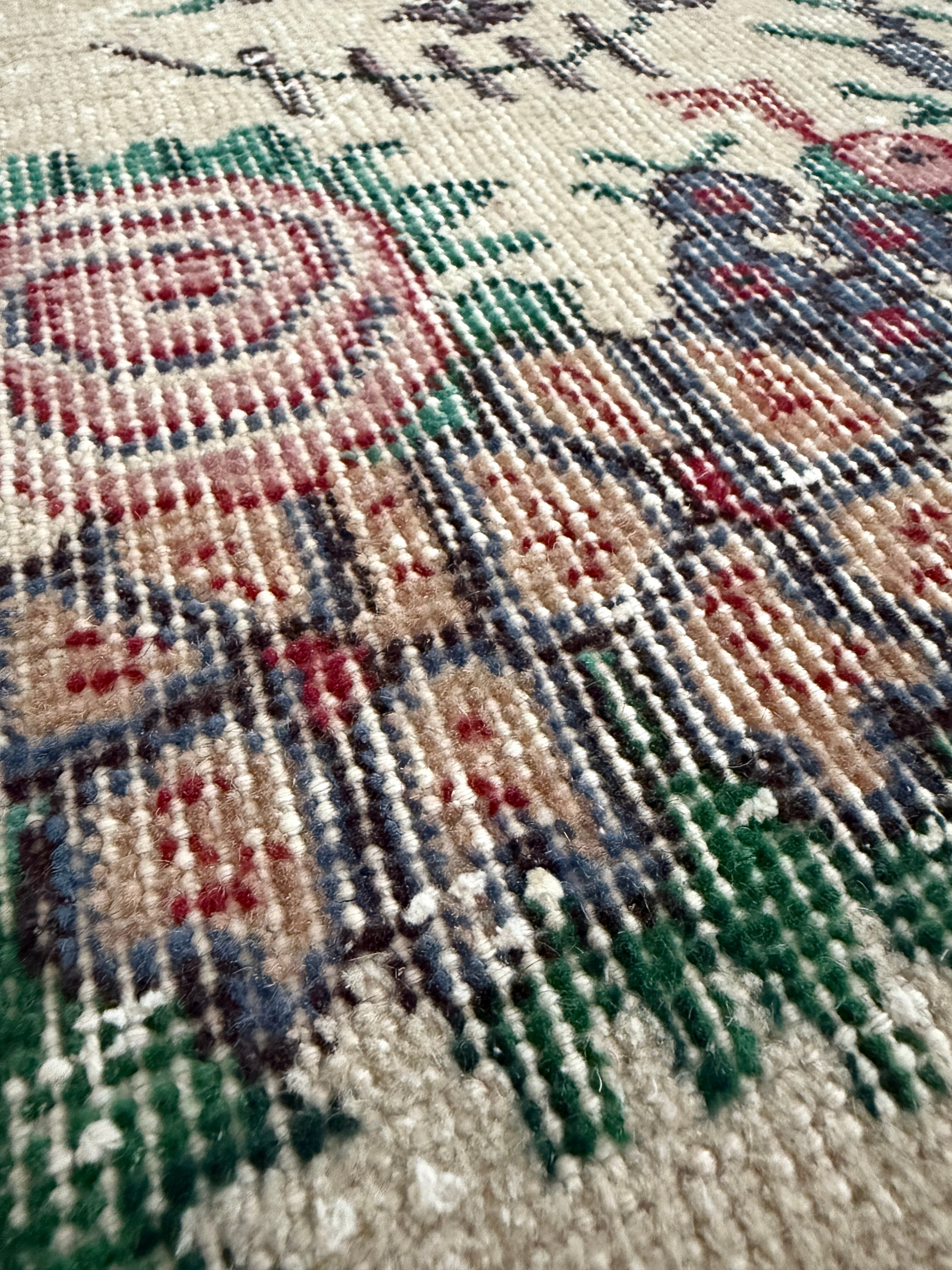 ヴィンテージラグは、糸のほつれ、抜け、毛羽立ち、シミなど見られる場合がございます。ヴィンテージ品ならではの雰囲気としてお楽しみいただけますと幸いです。