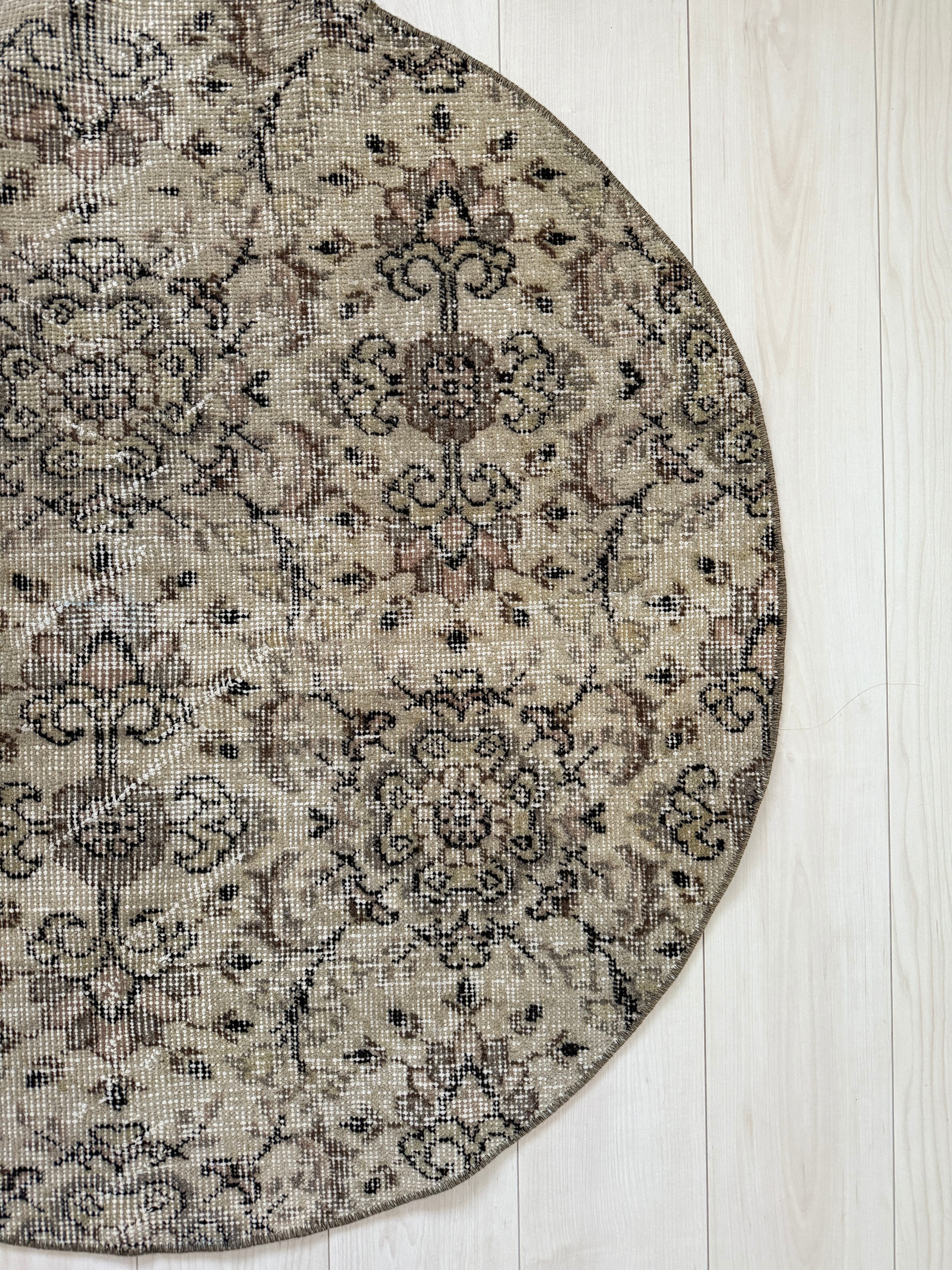 【約102.5cm×約102cm】70's vintage mini rug -"manmaru beige"-