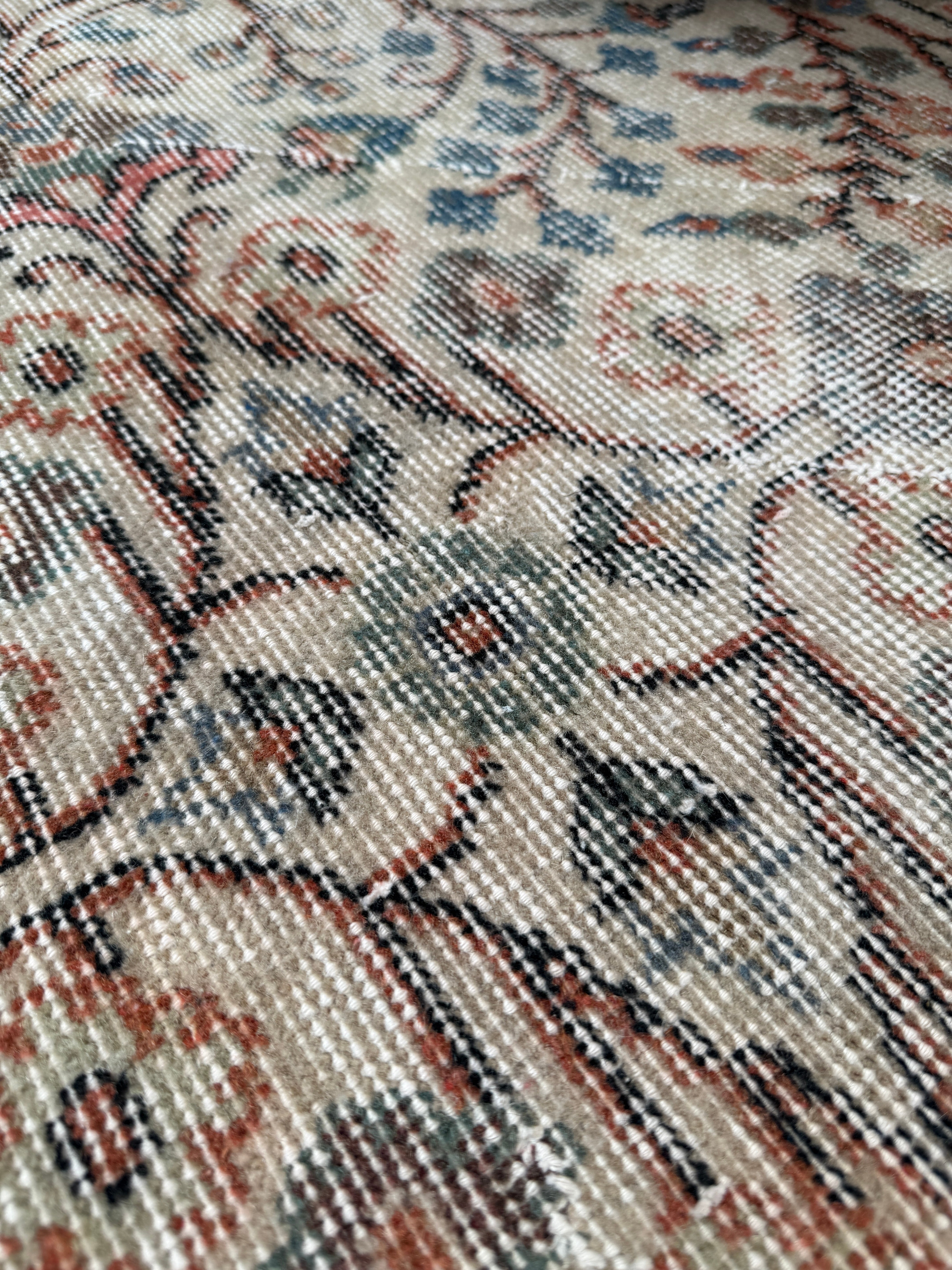 ヴィンテージラグは、糸のほつれ、抜け、毛羽立ち、シミなどが見られる場合がございます。ヴィンテージ品ならではの雰囲気としてお楽しみいただけますと幸いです。