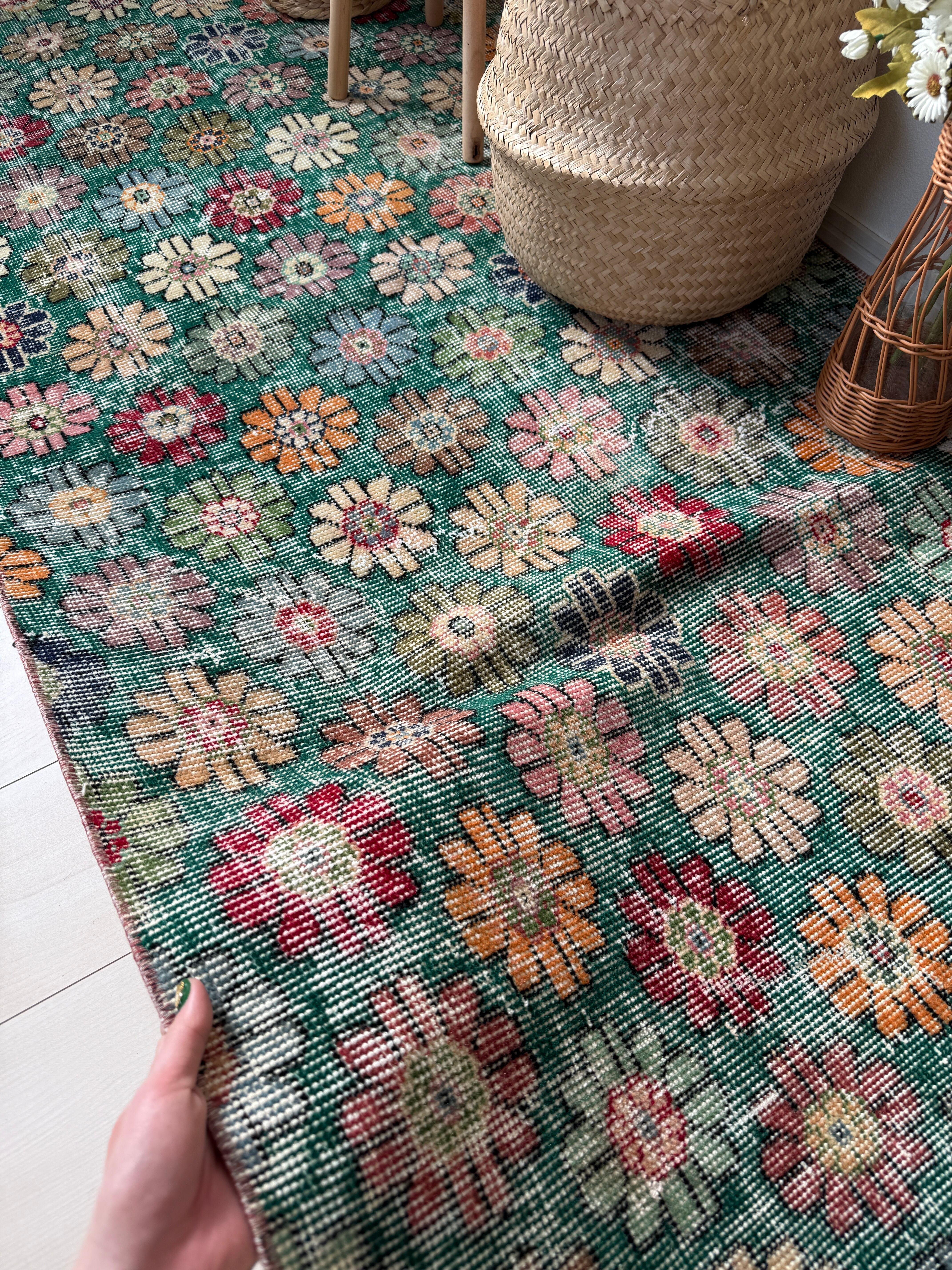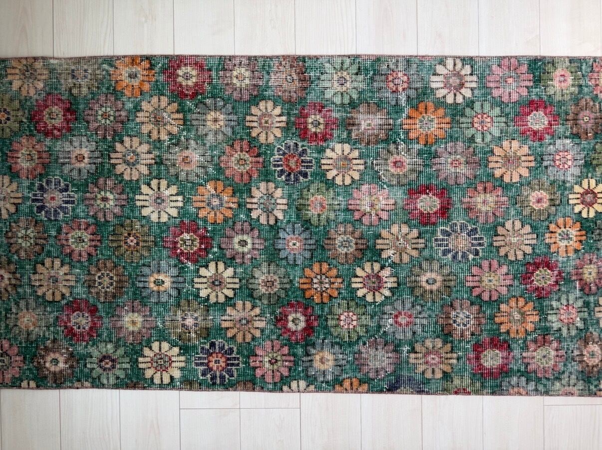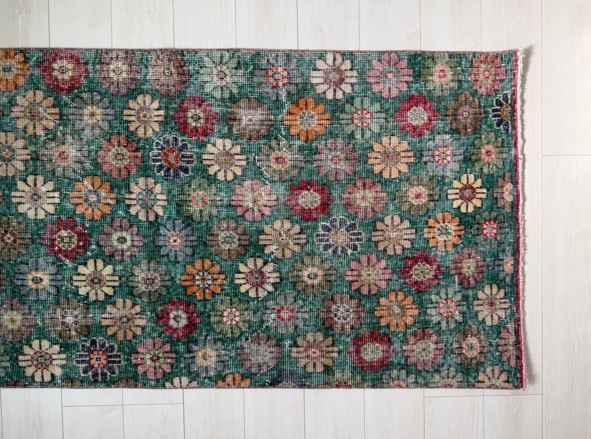 【約84cm×約175cm】70's vintage rug -"green flower"-
