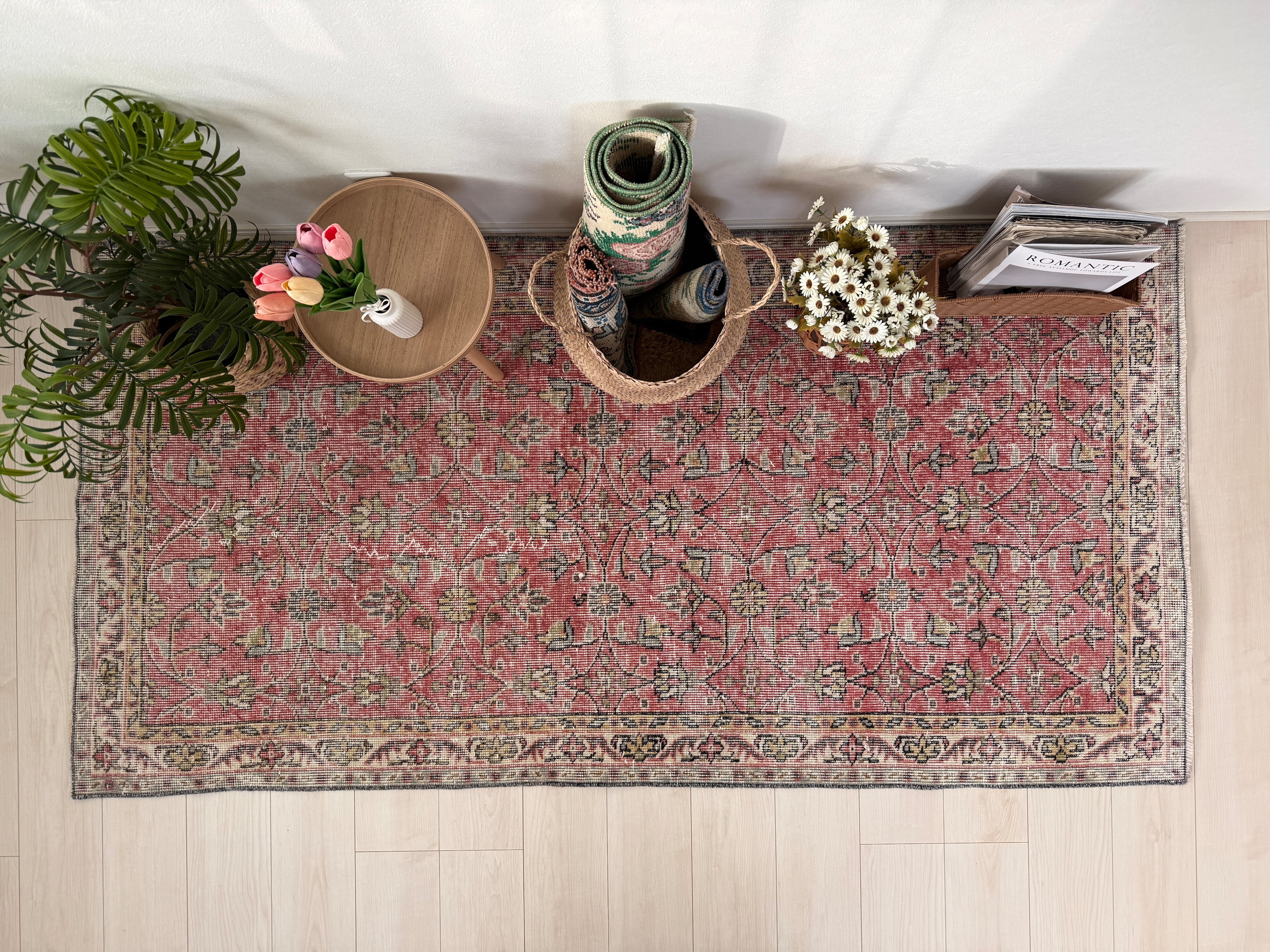 目に入った瞬間、ぱっと心が華やぎそうなヴィンテージラグ。