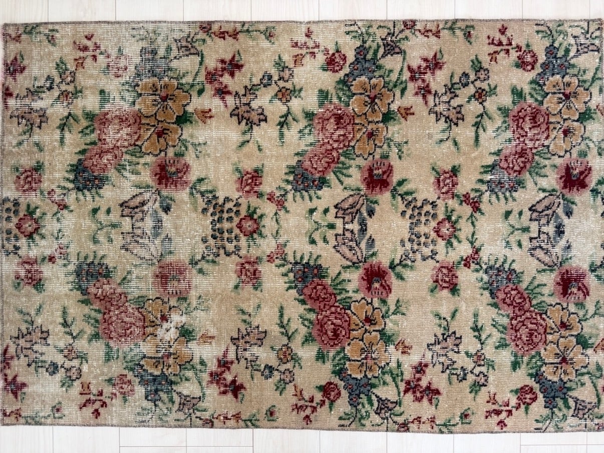 目に入るたびに、心がふわっとやわらぎそうなヴィンテージラグです。