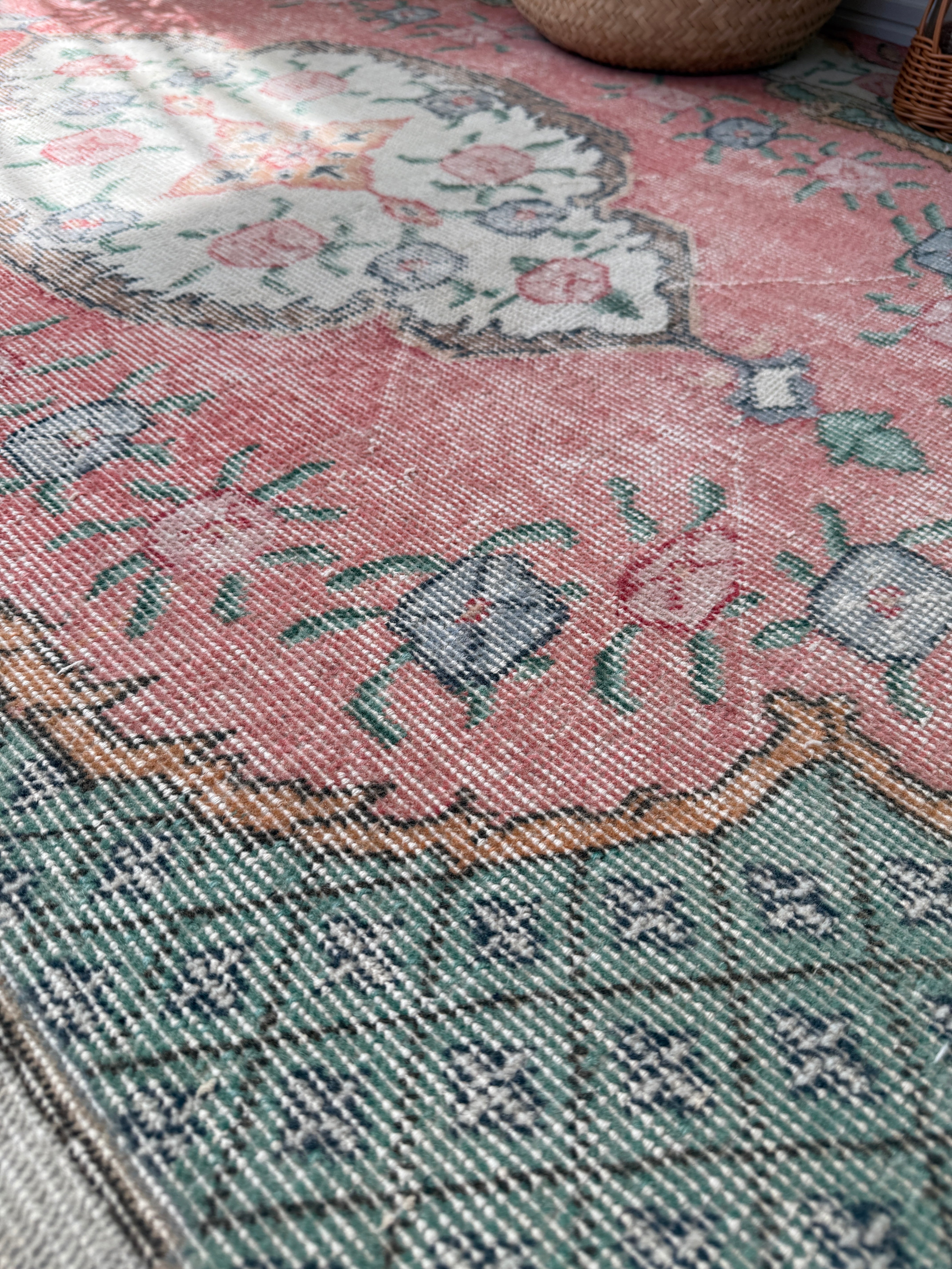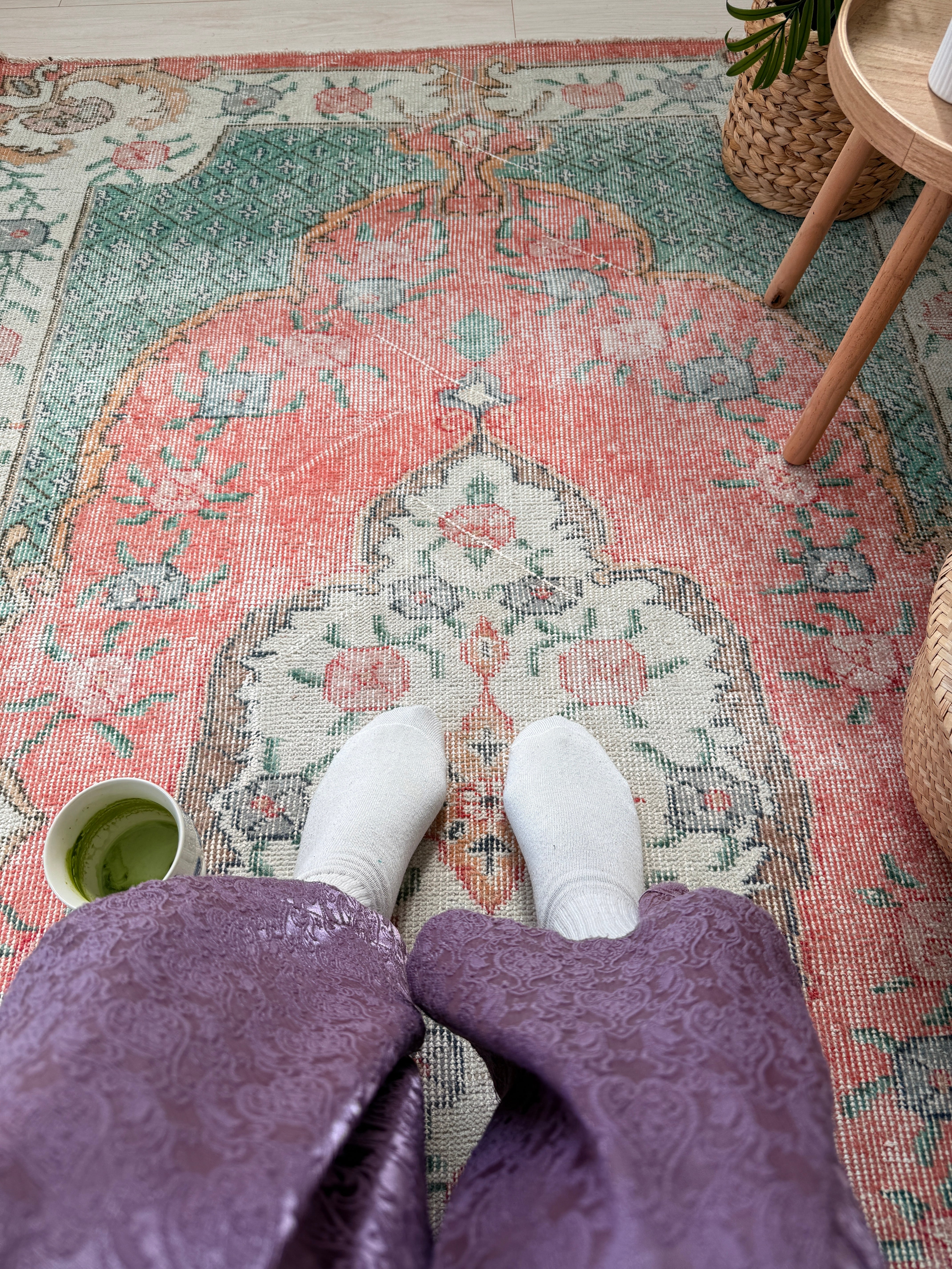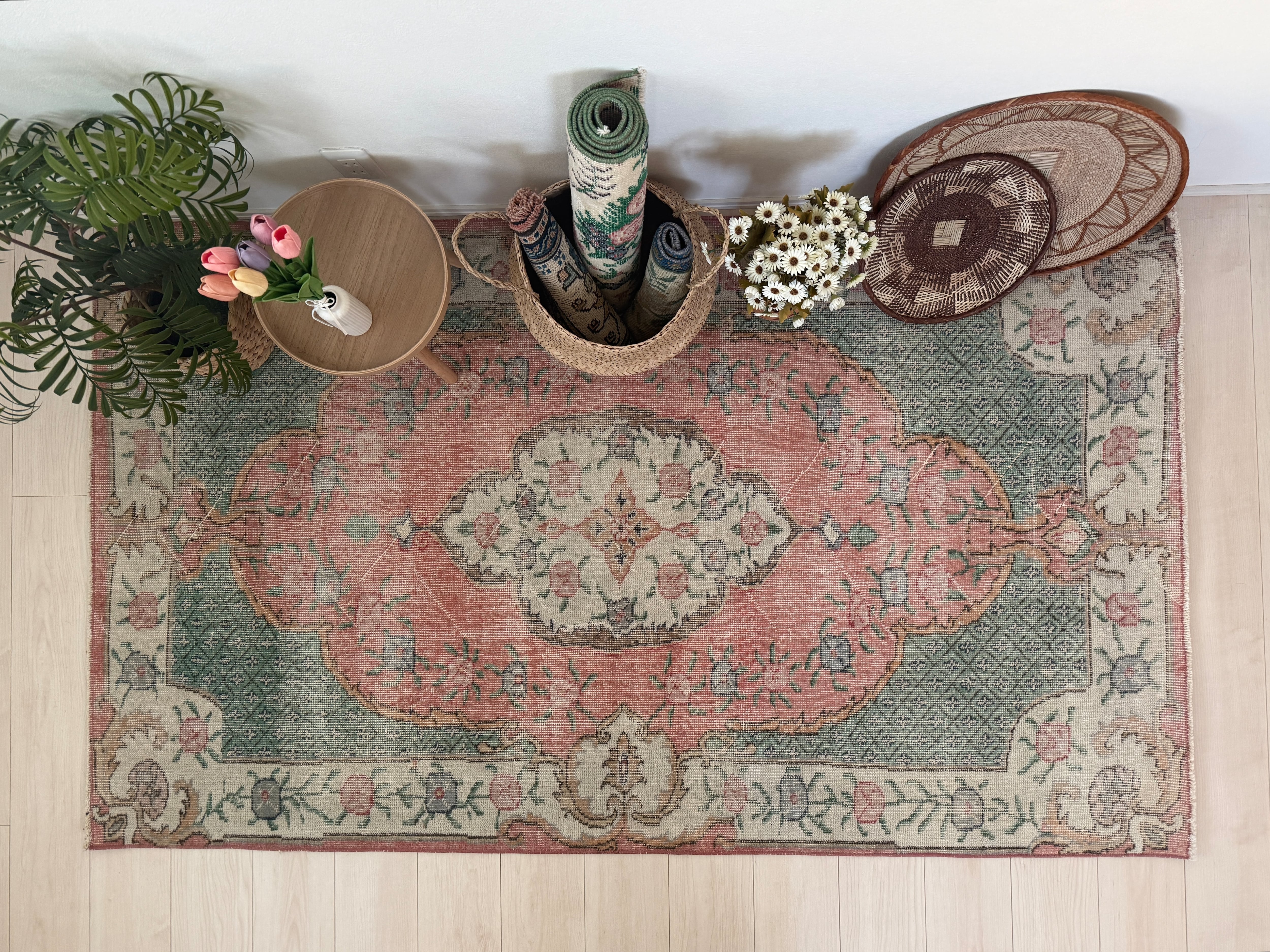 【約115.5cm×約199cm】70's vintage rug -"coral floral"-