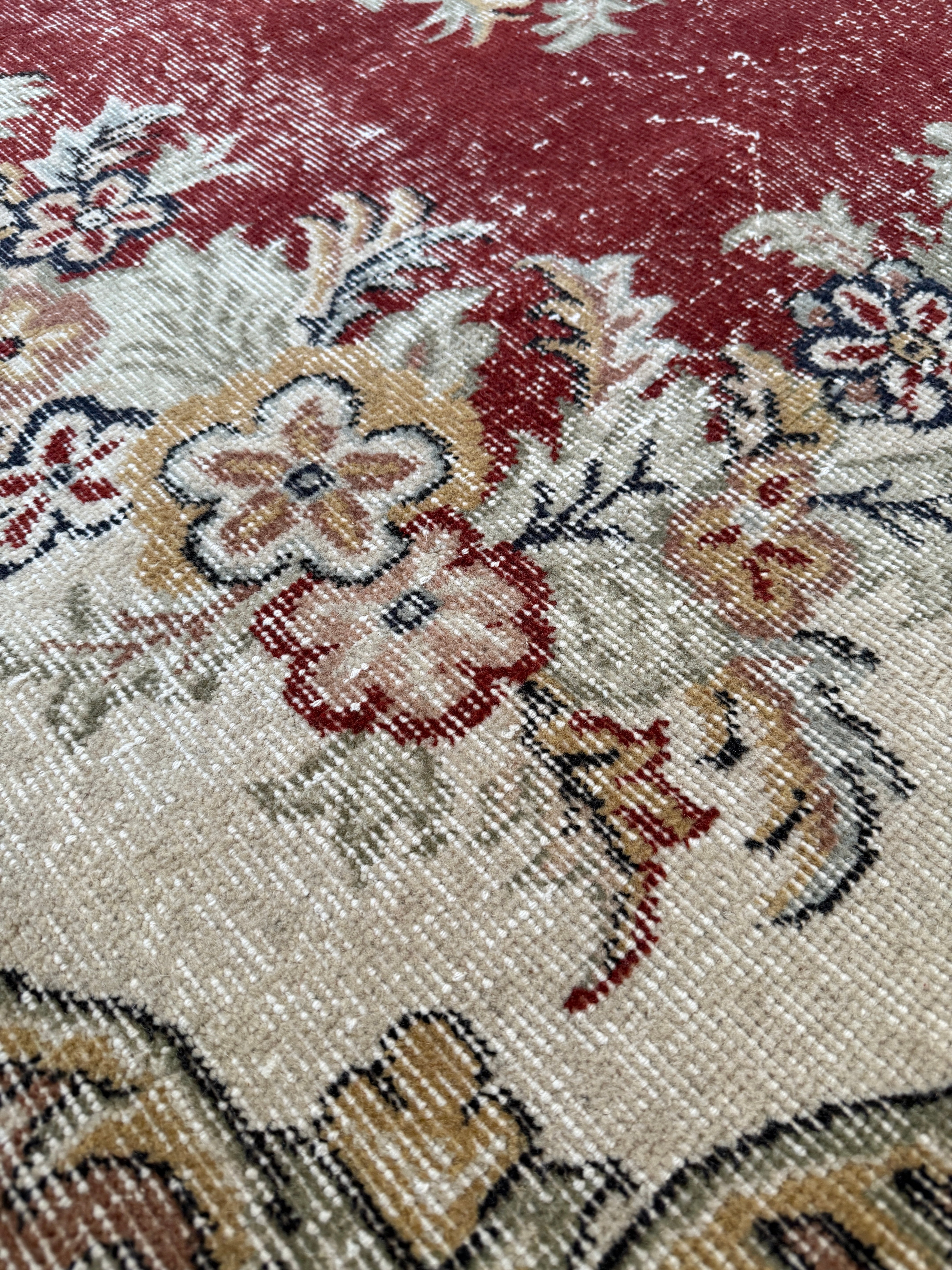 繊細な花模様が広がるヴィンテージラグ。
