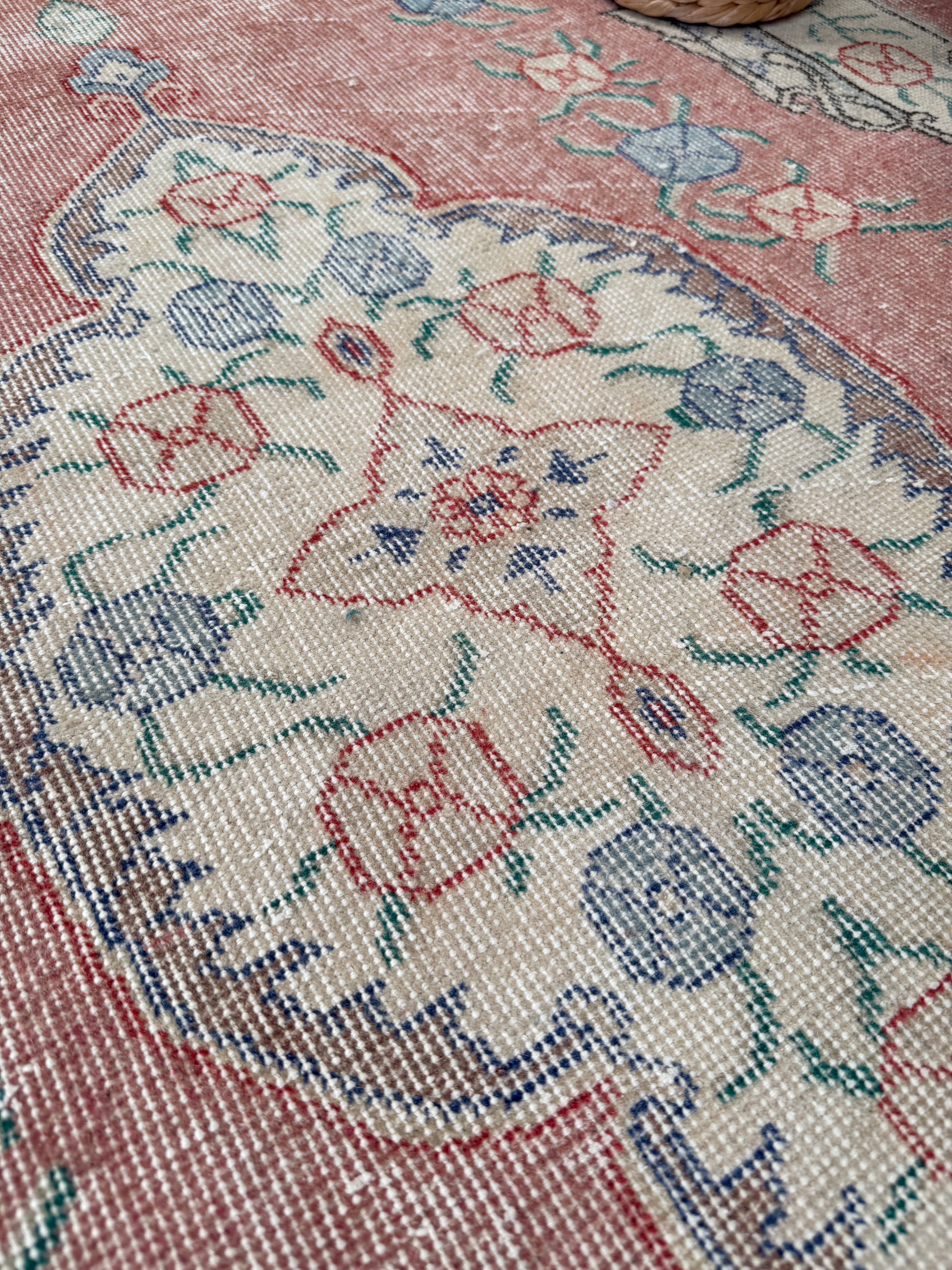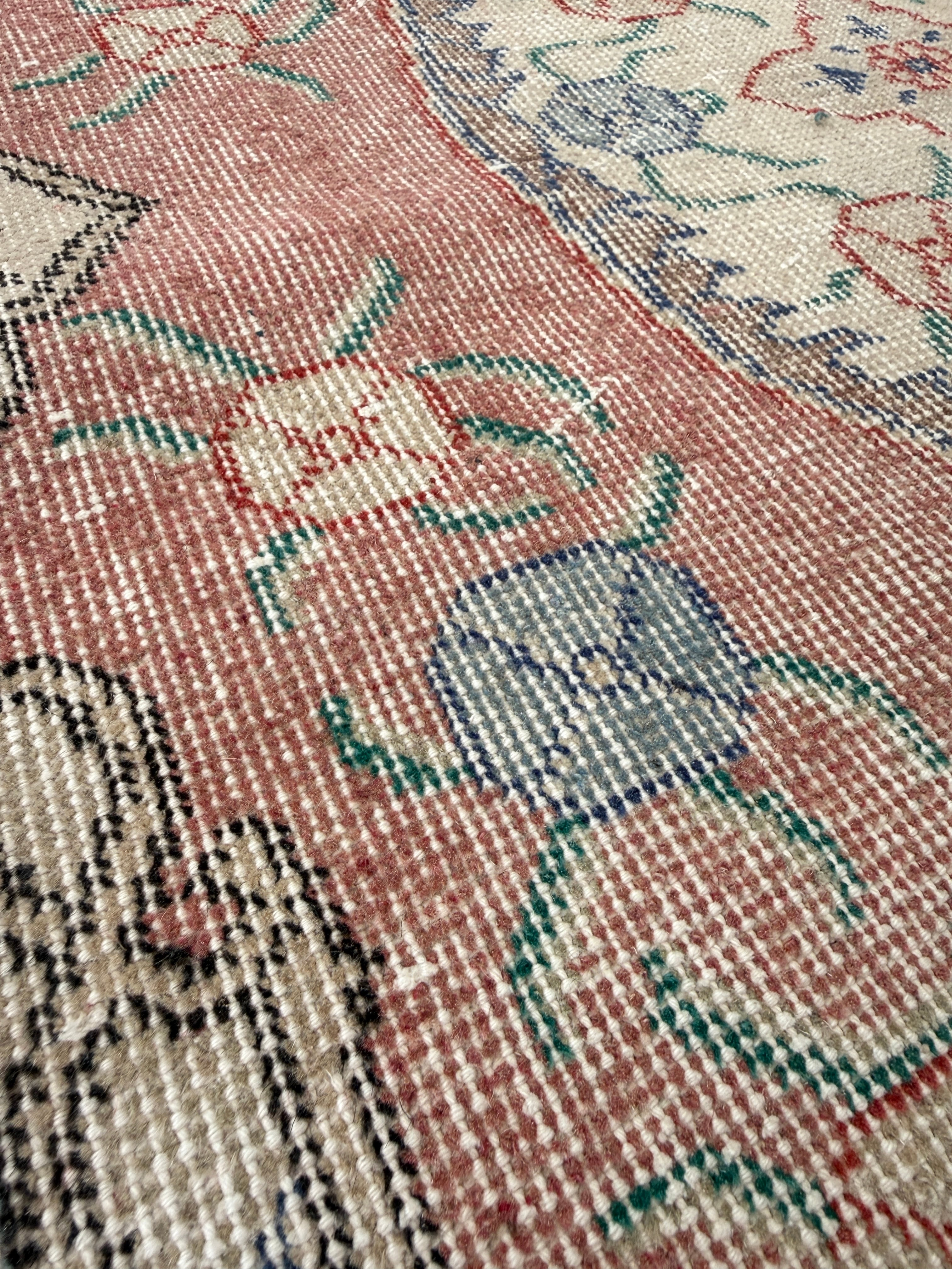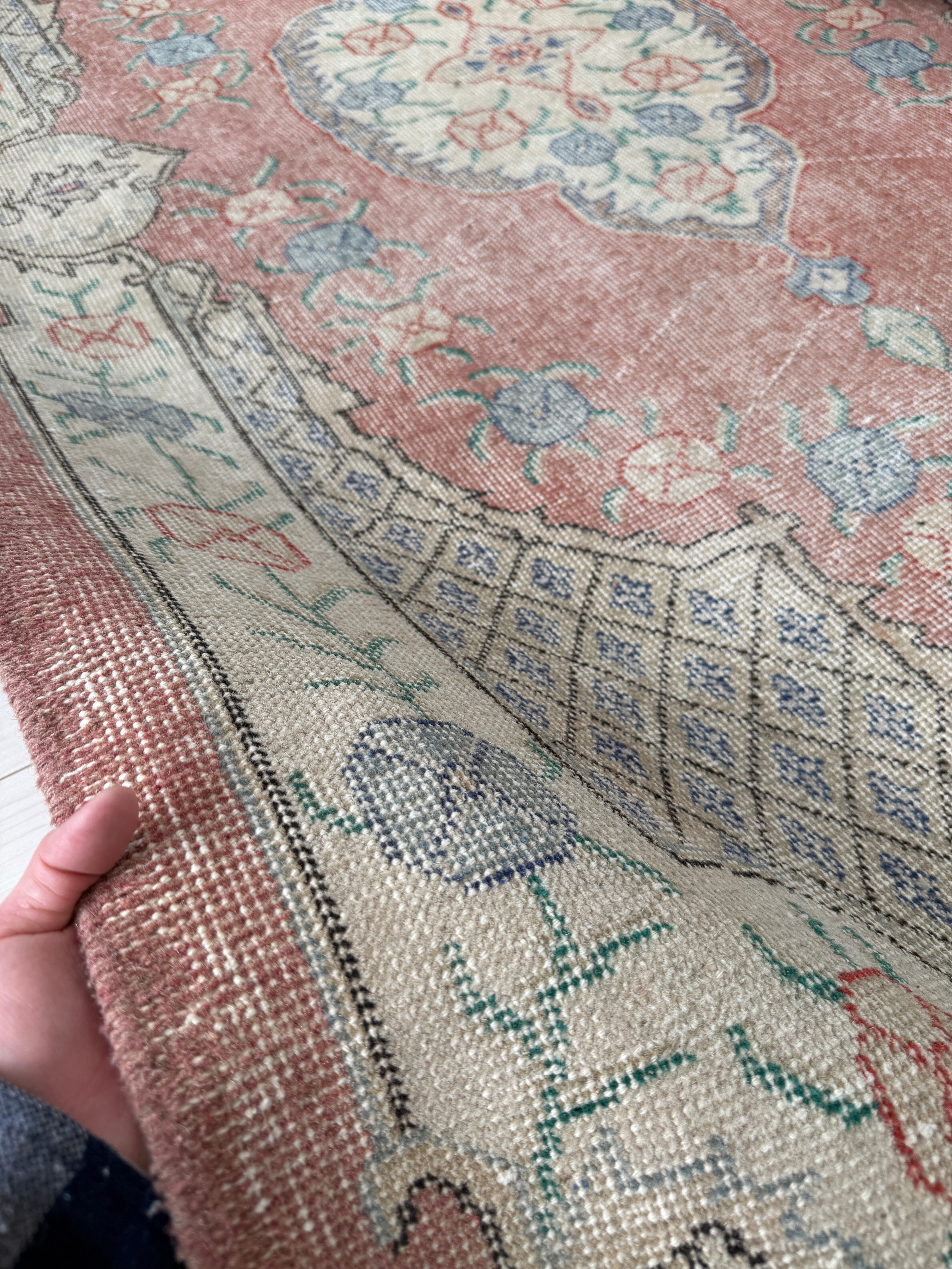 リビングに敷いてソファ前に合わせたり、ダイニングテーブルの下に敷いても、空間をやさしくまとめてくれそうなヴィンテージラグです。