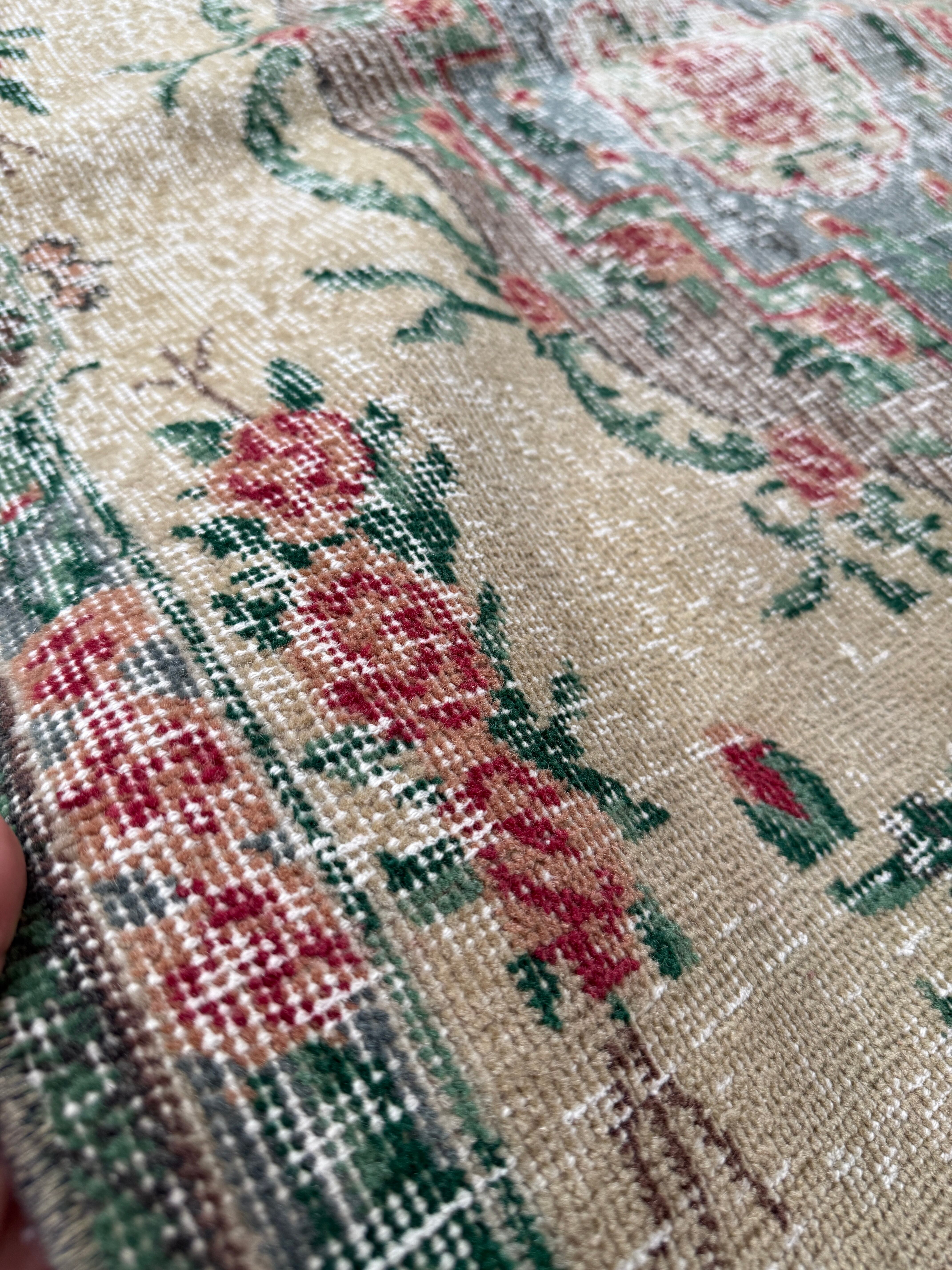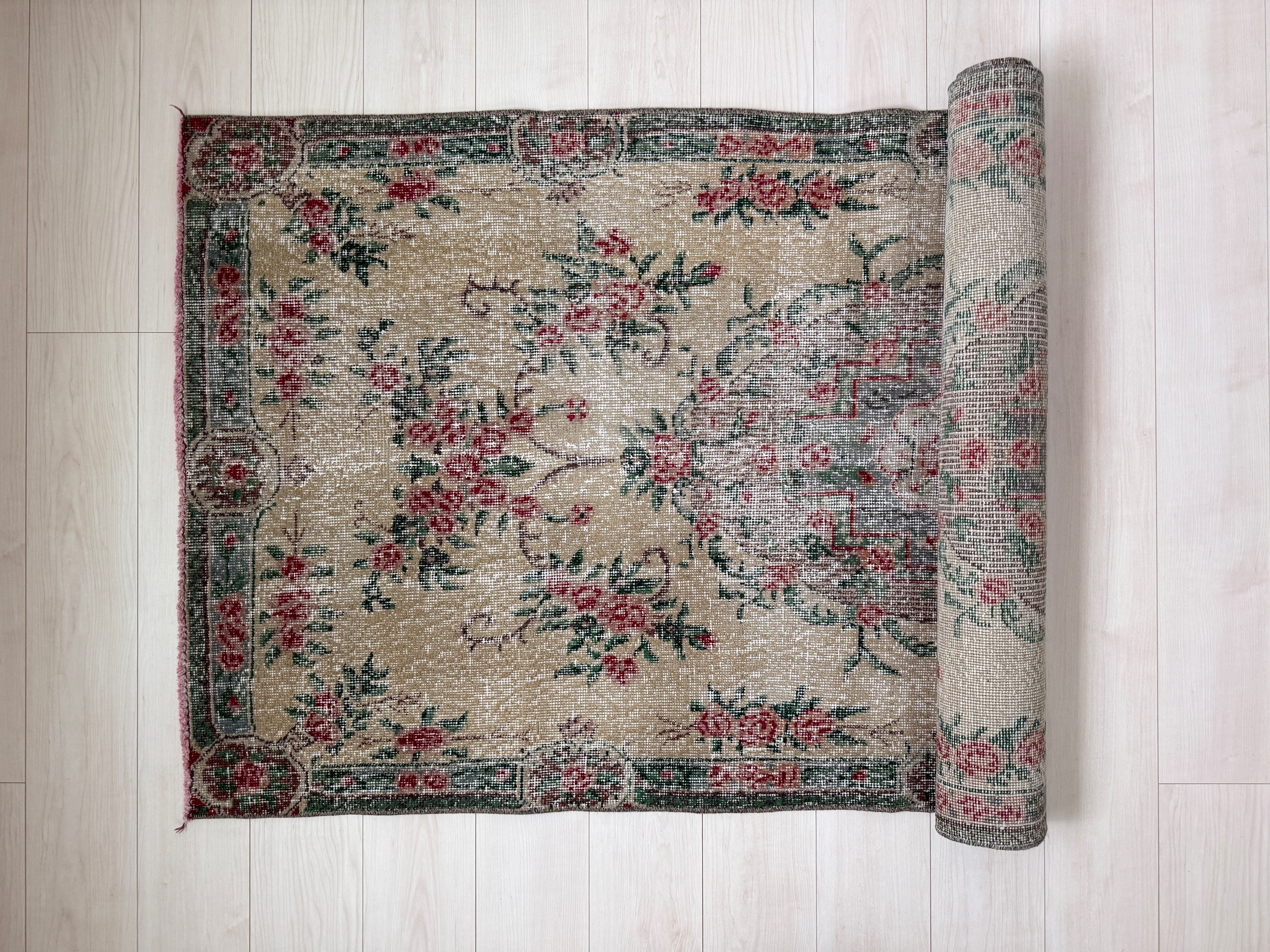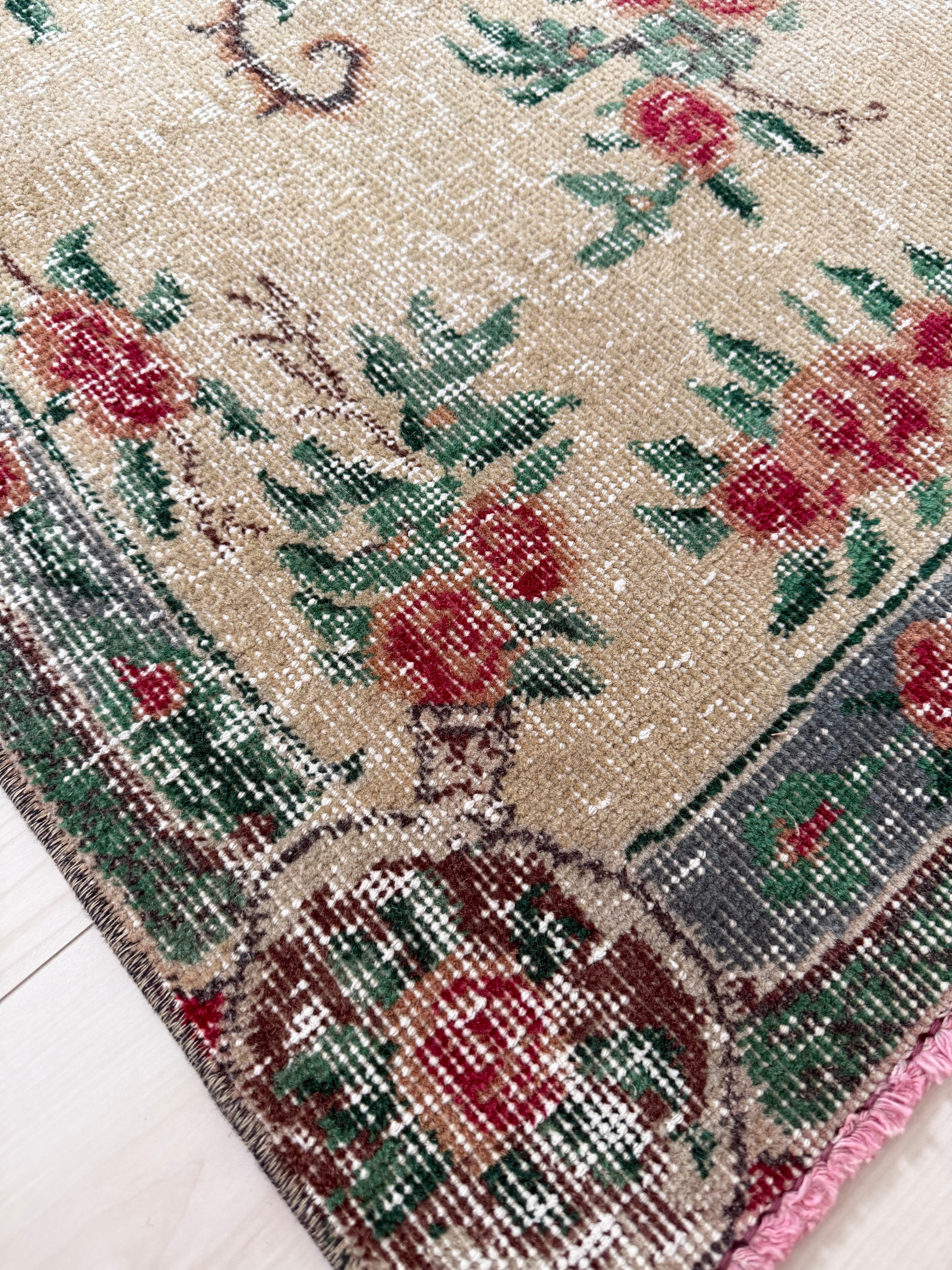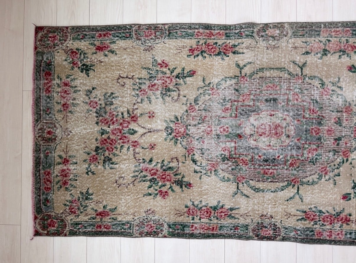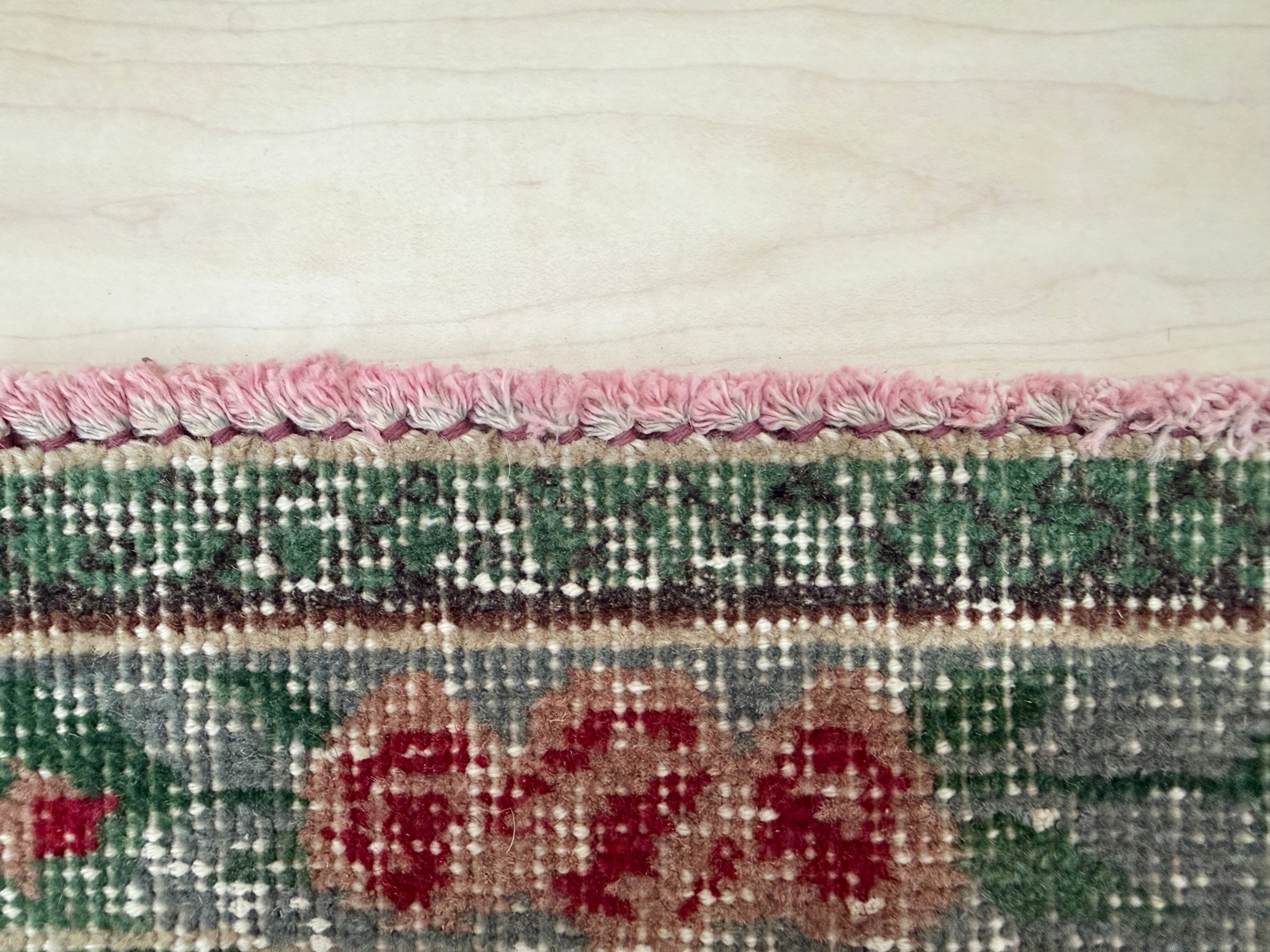 【約96.5cm×約207.5cm】70's vintage rug -"rose green"-