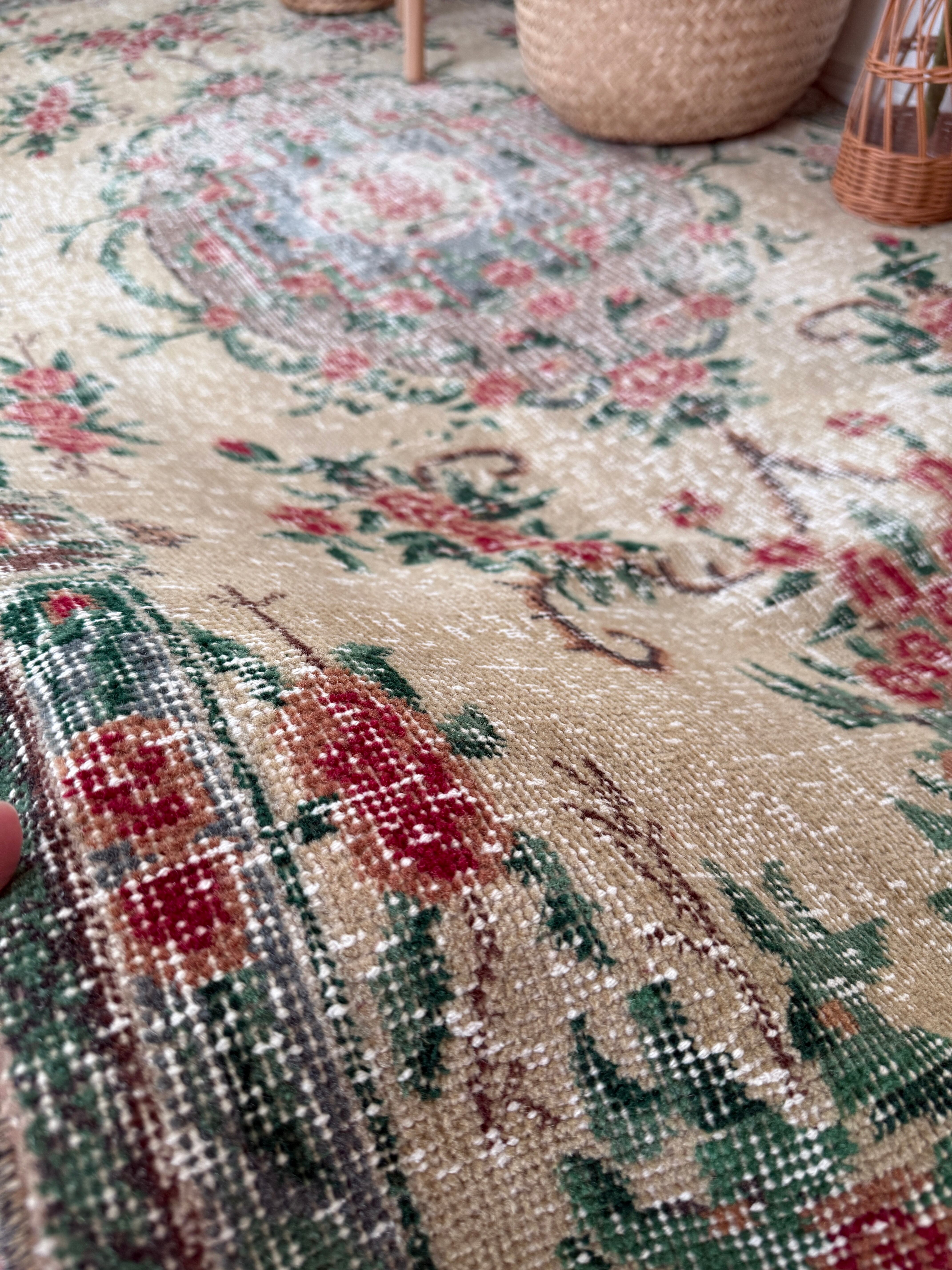ヴィンテージラグは、糸のほつれ、抜け、毛羽立ち、シミなどが見られる場合がございます。ヴィンテージ品ならではの雰囲気としてお楽しみいただけますと幸いです。