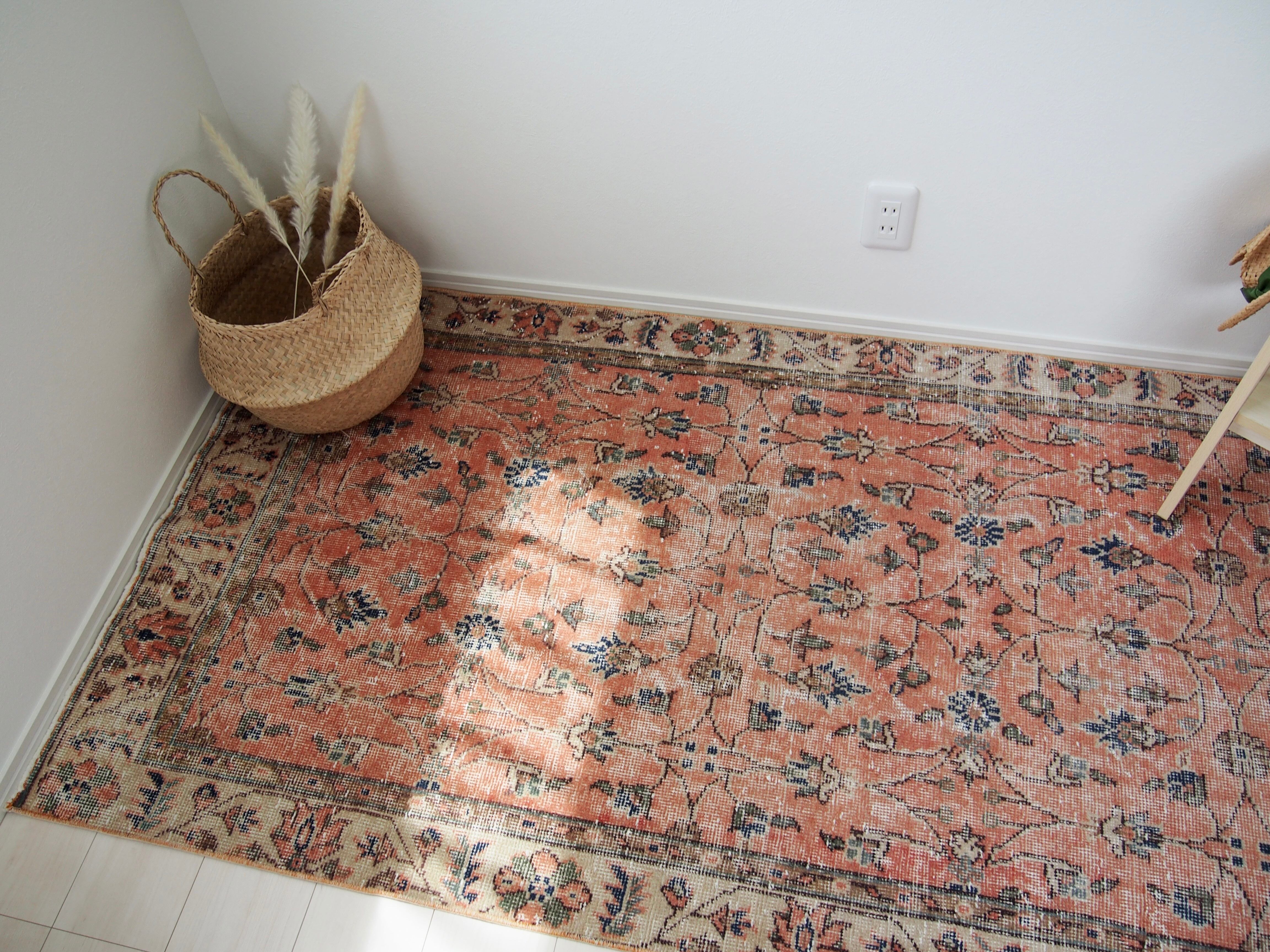 ヴィンテージラグは、糸のほつれ、抜け、毛羽立ち、シミなど見られる場合がございます。ヴィンテージ品ならではの雰囲気としてお楽しみいただけますと幸いです。