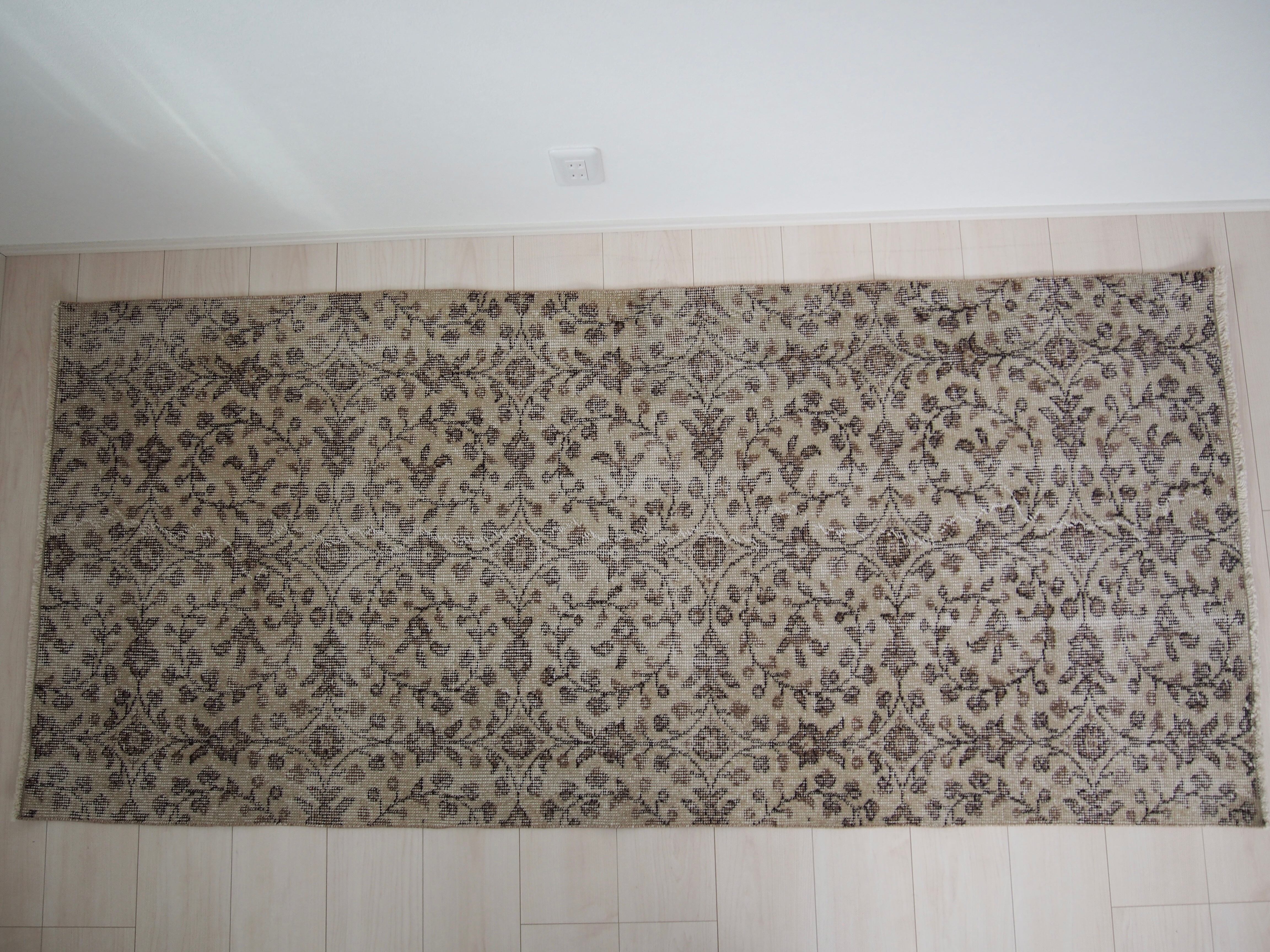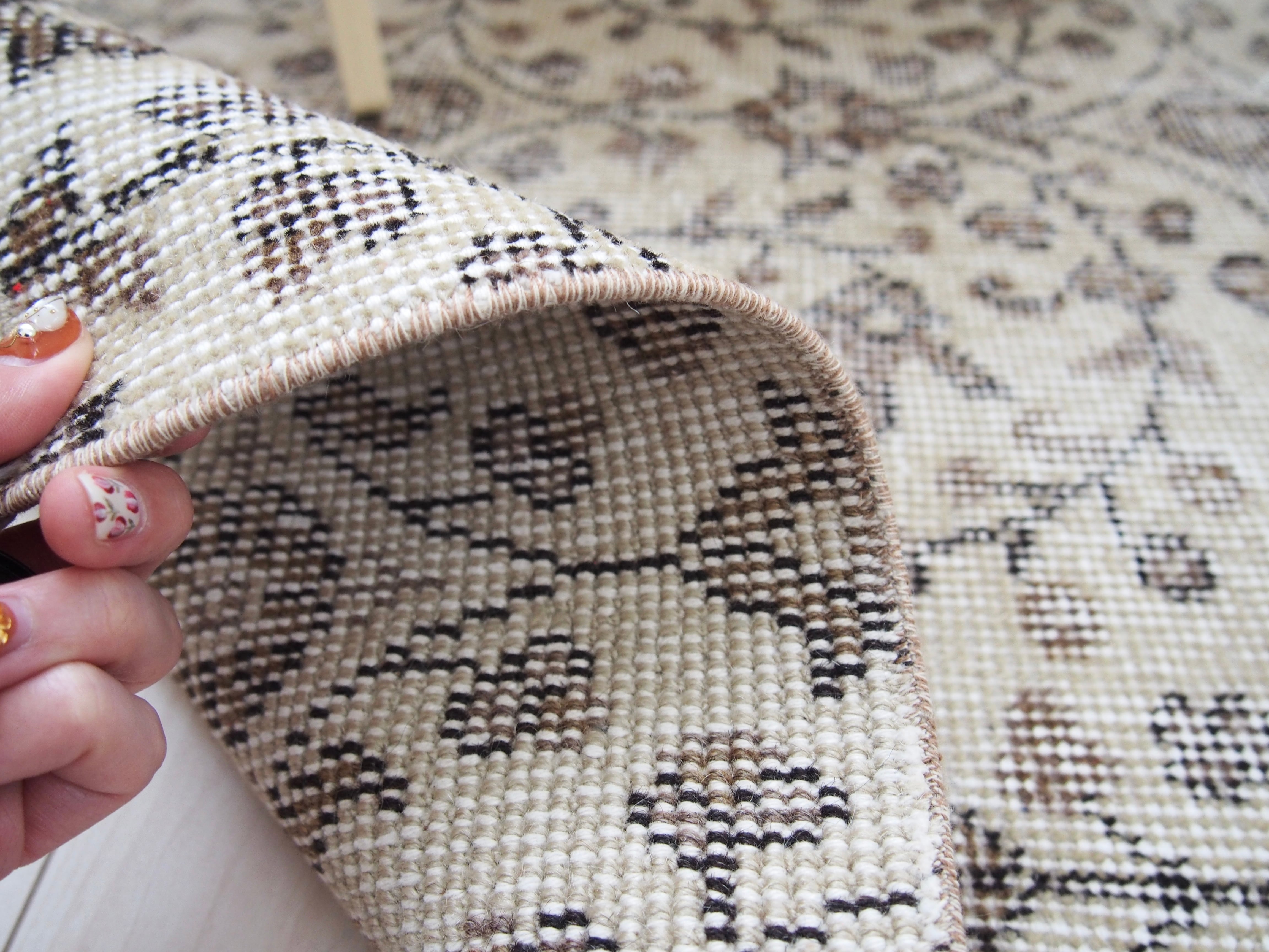 70's vintagerug -beige floral-