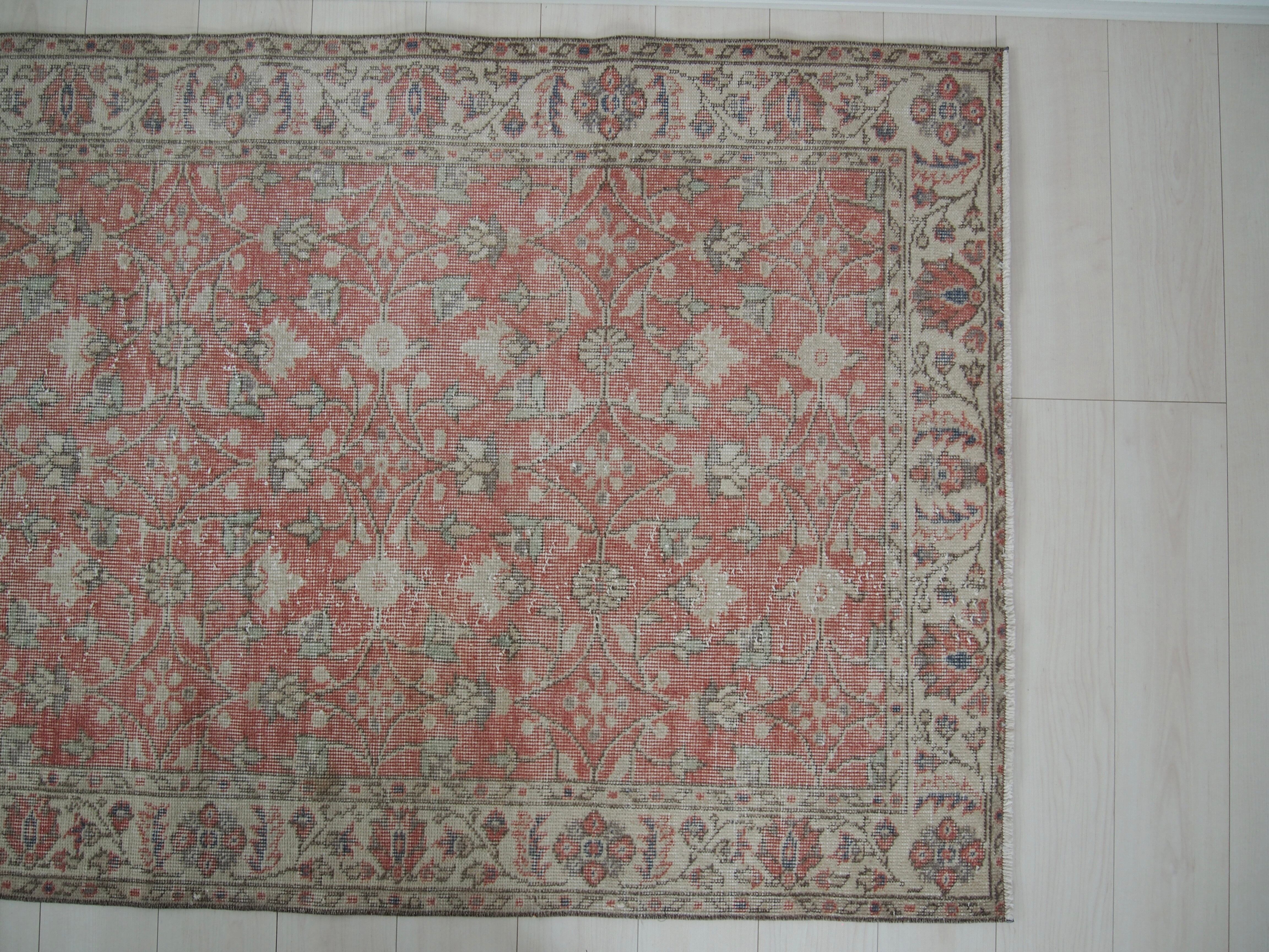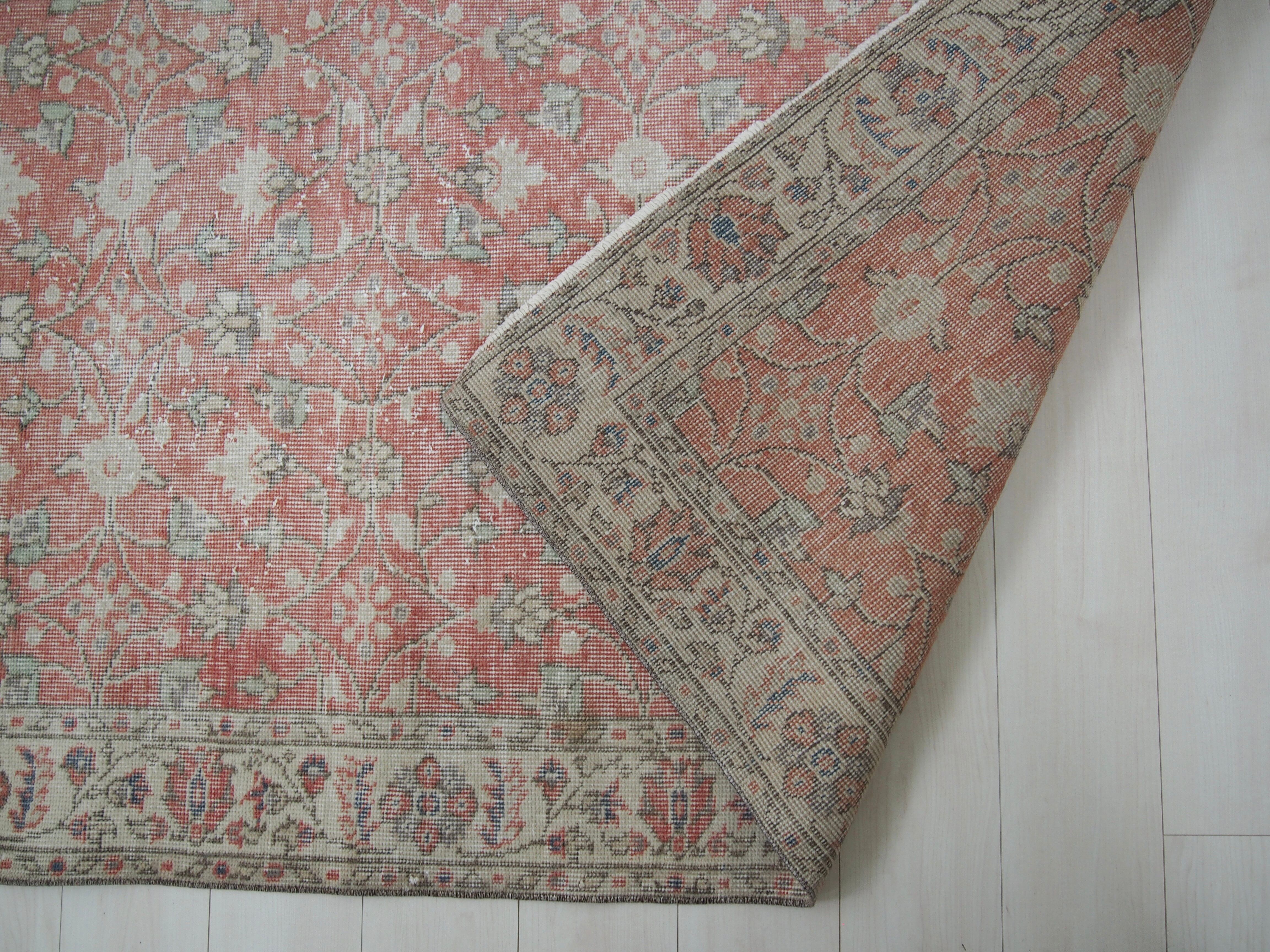 70's vintage rug -salmon floral-