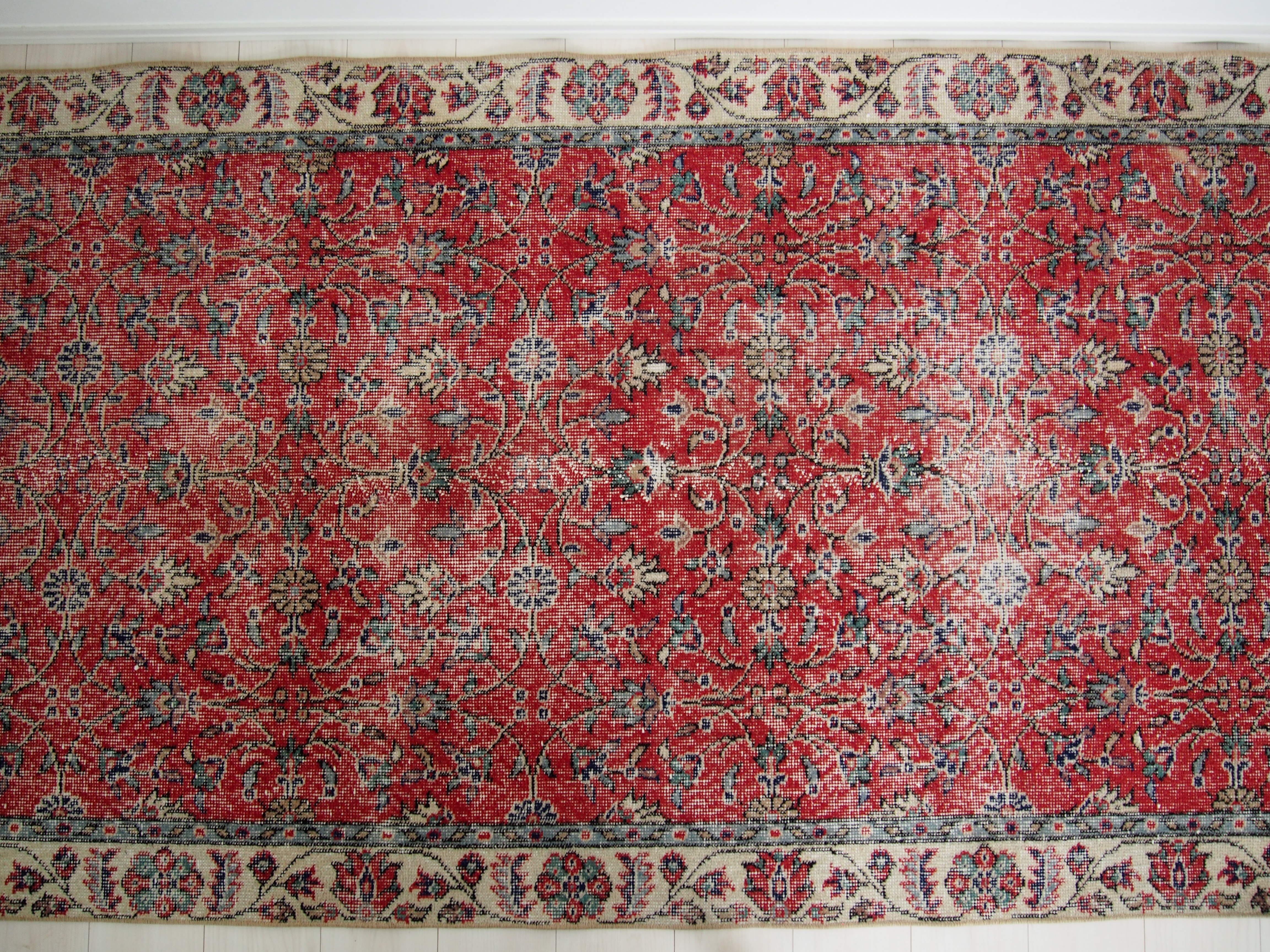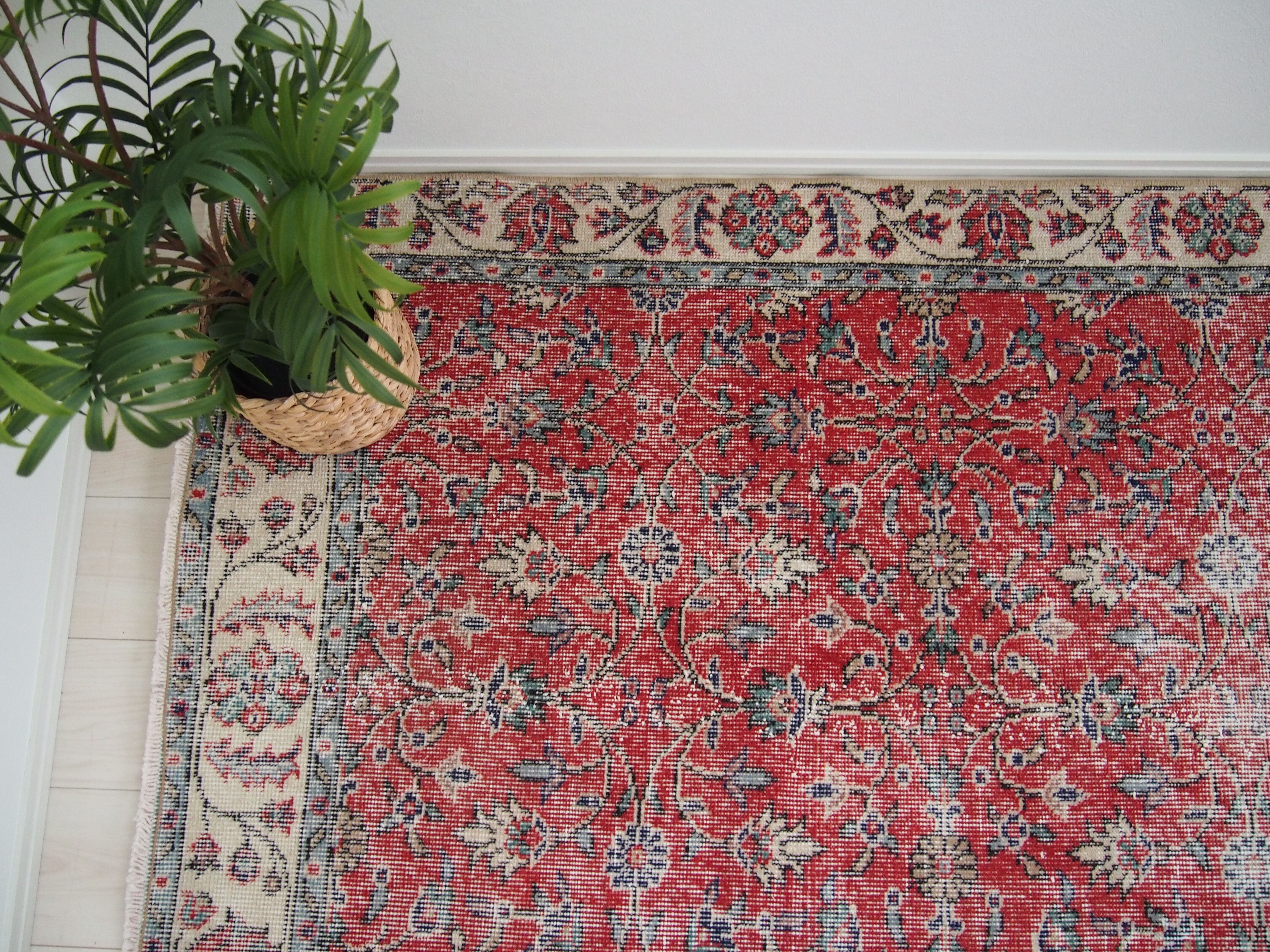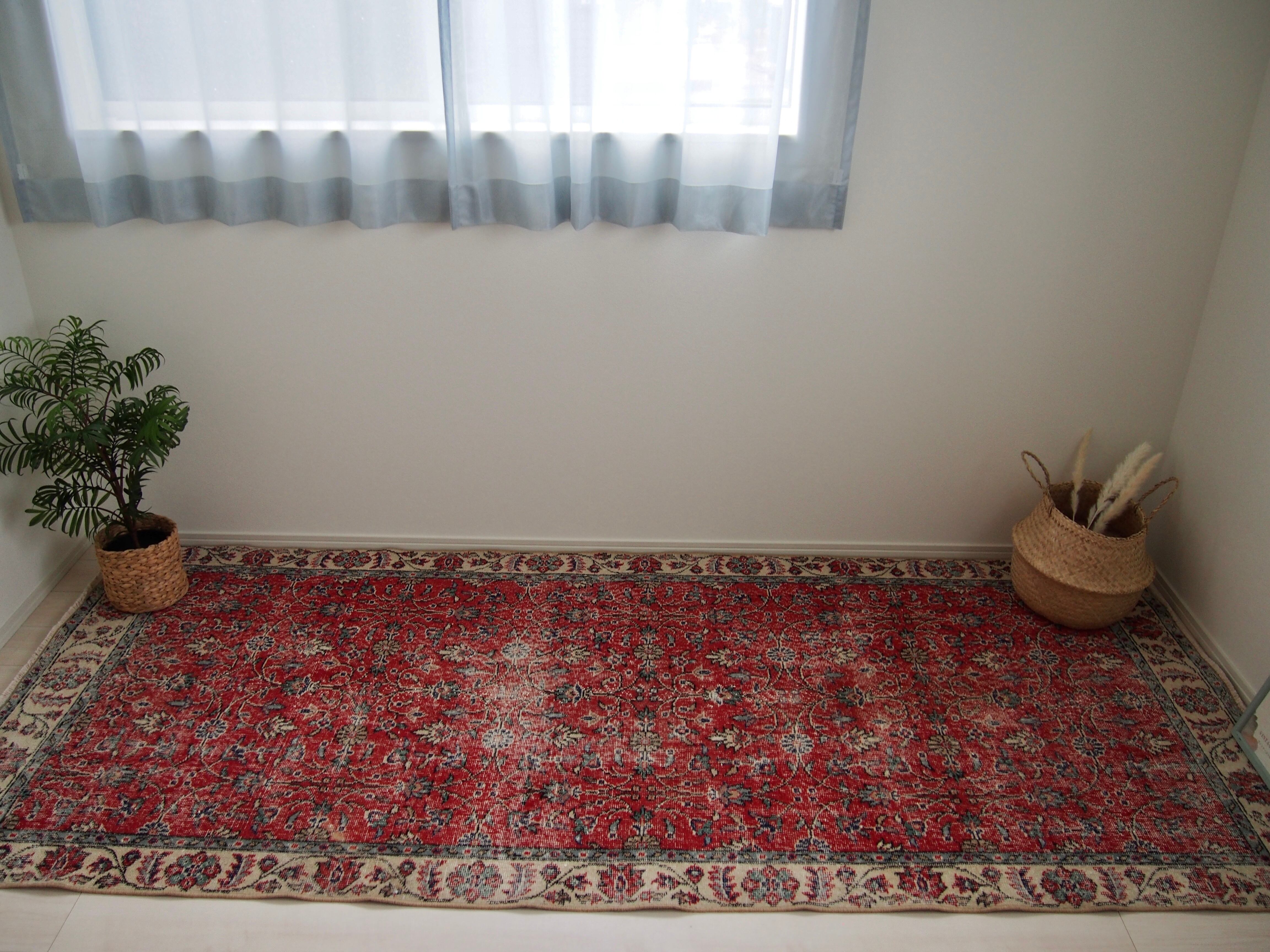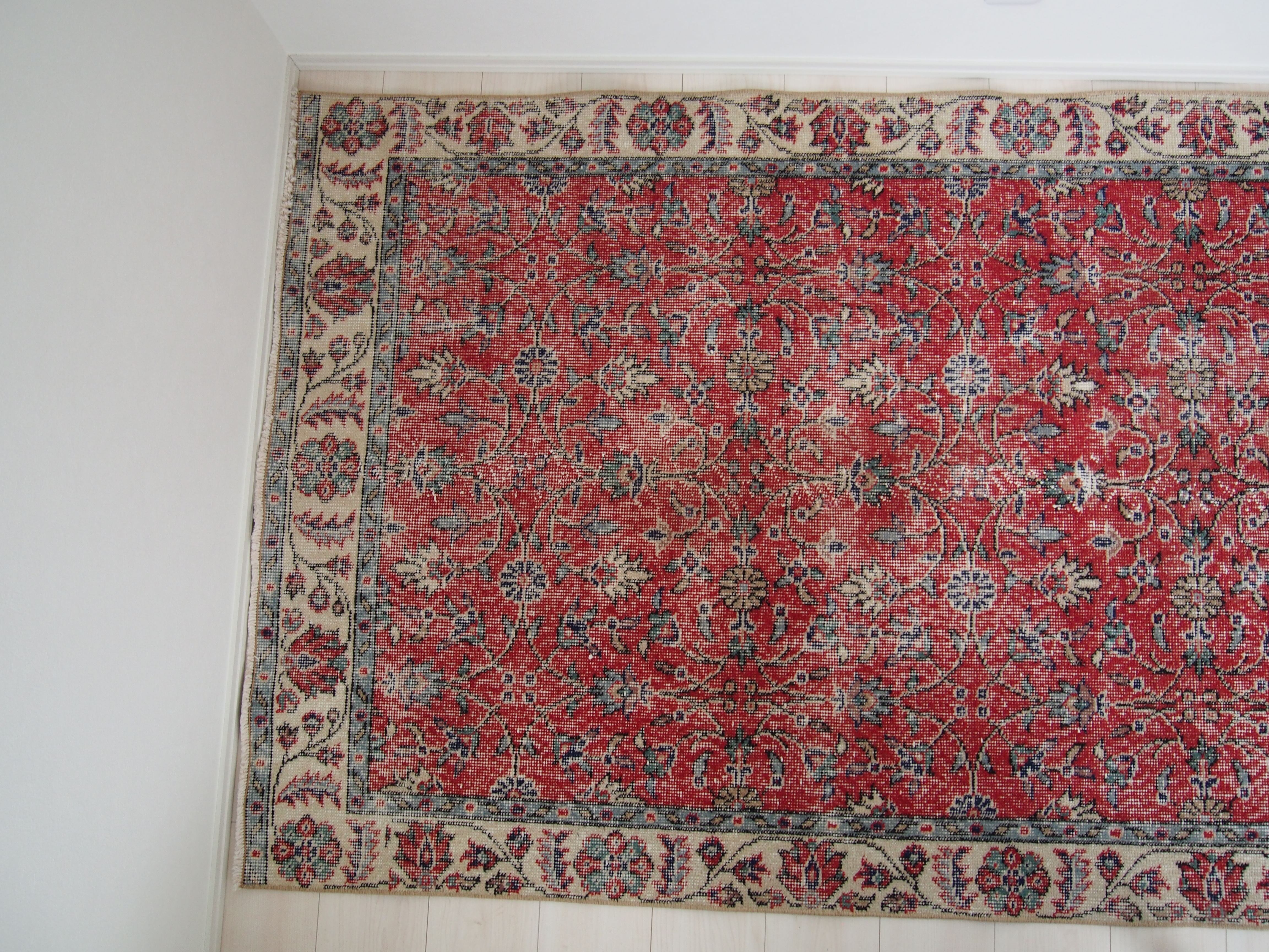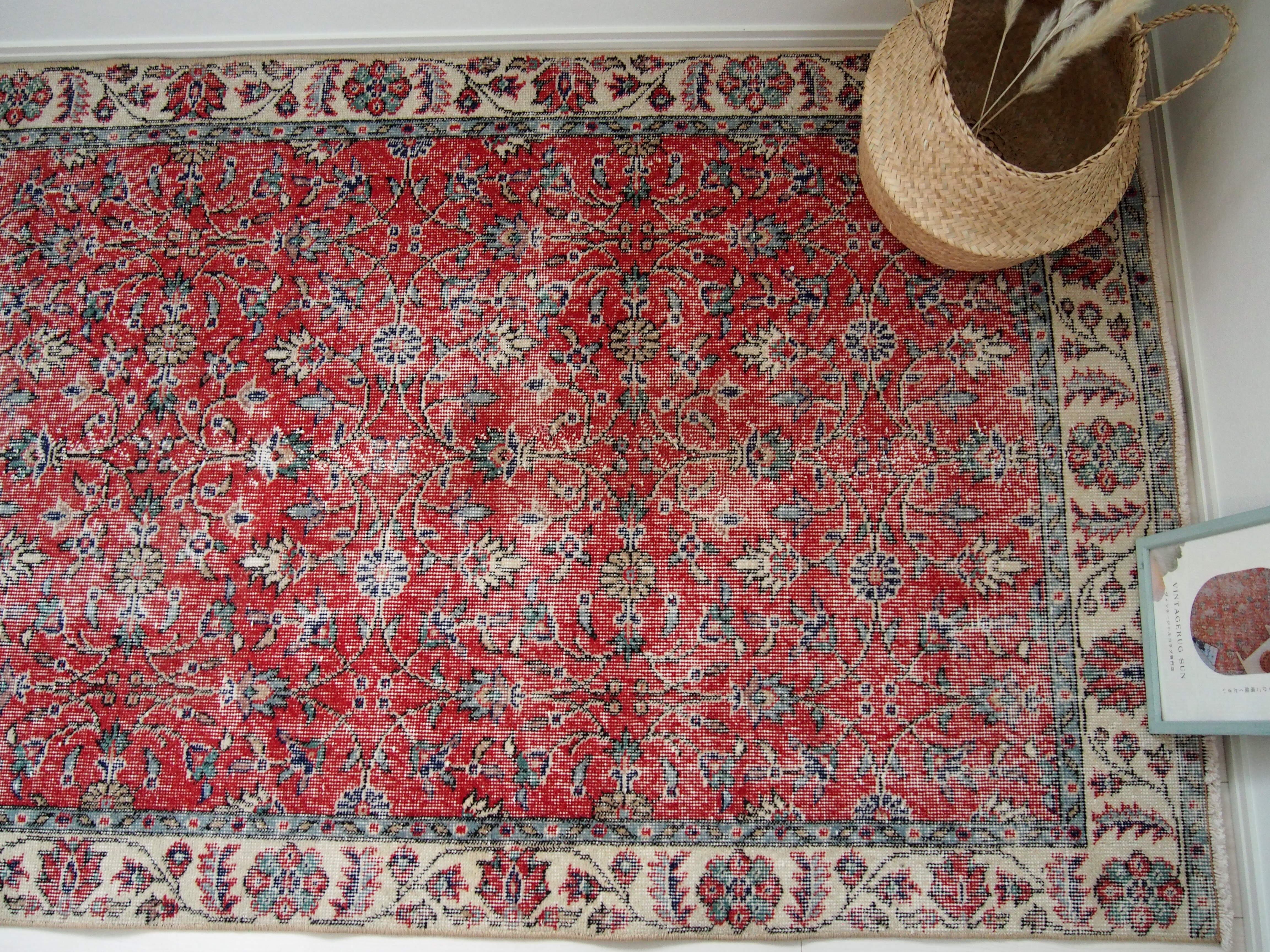 70's vintage rug -red floral-