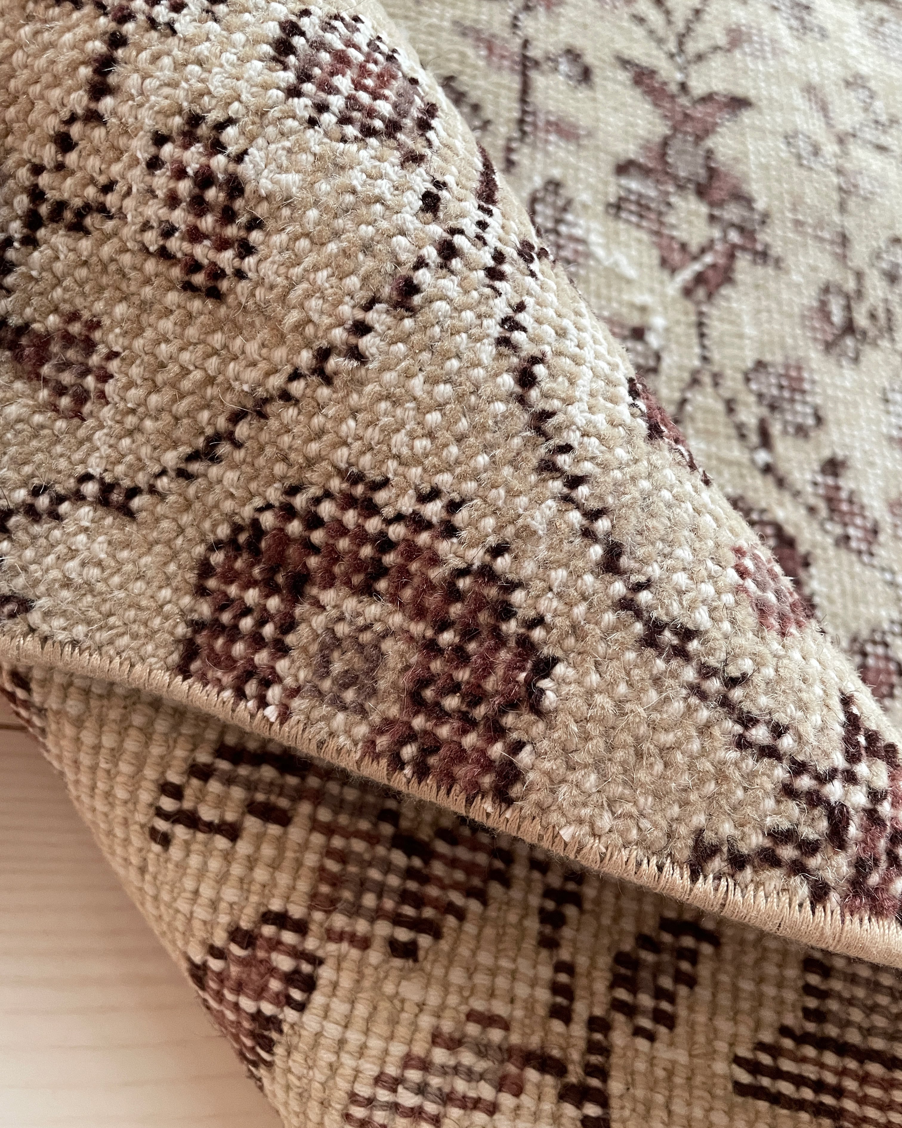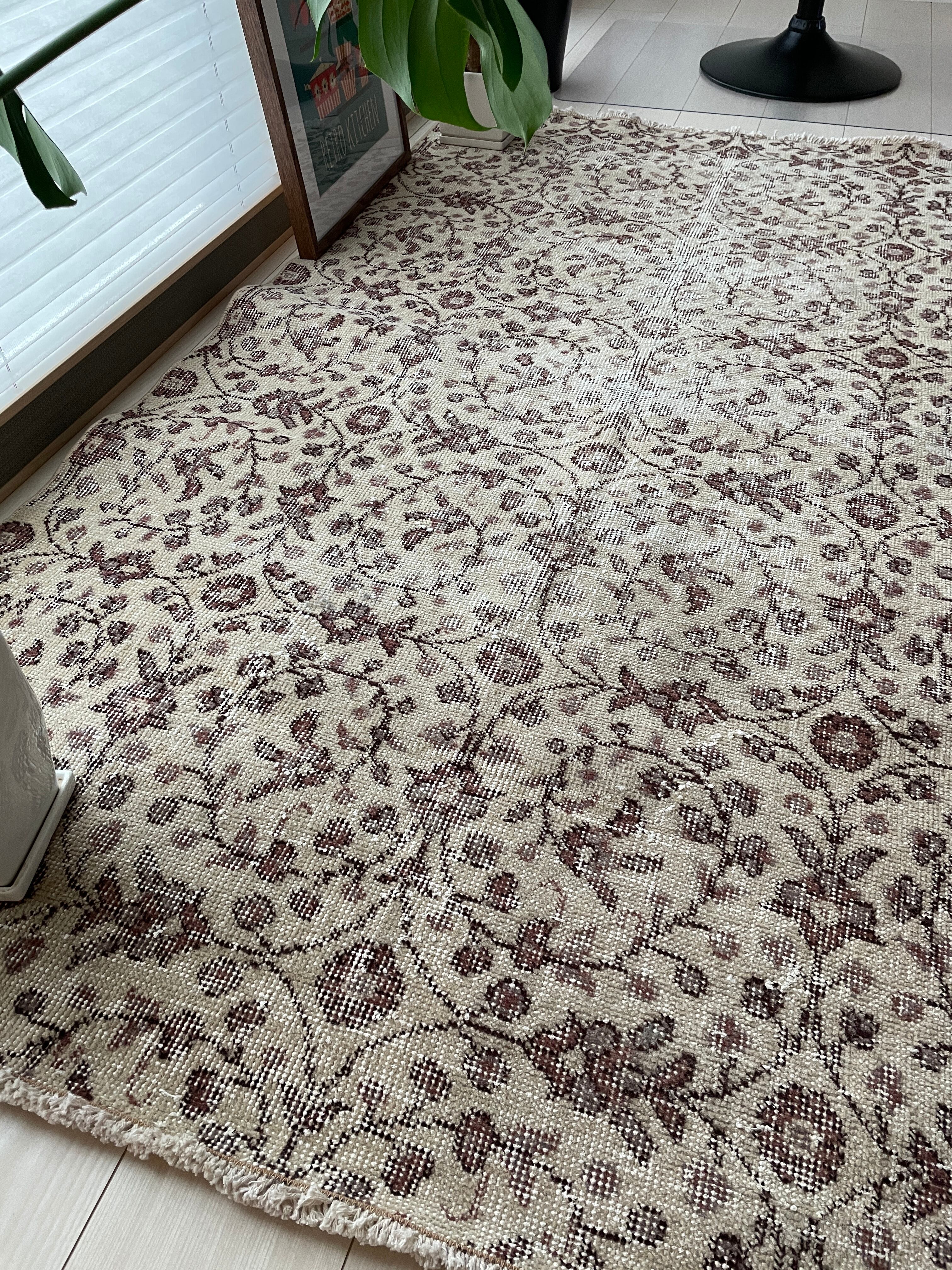 70' vintagerug -beige circle floral-